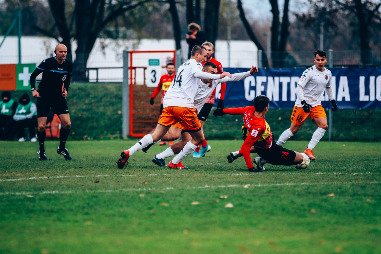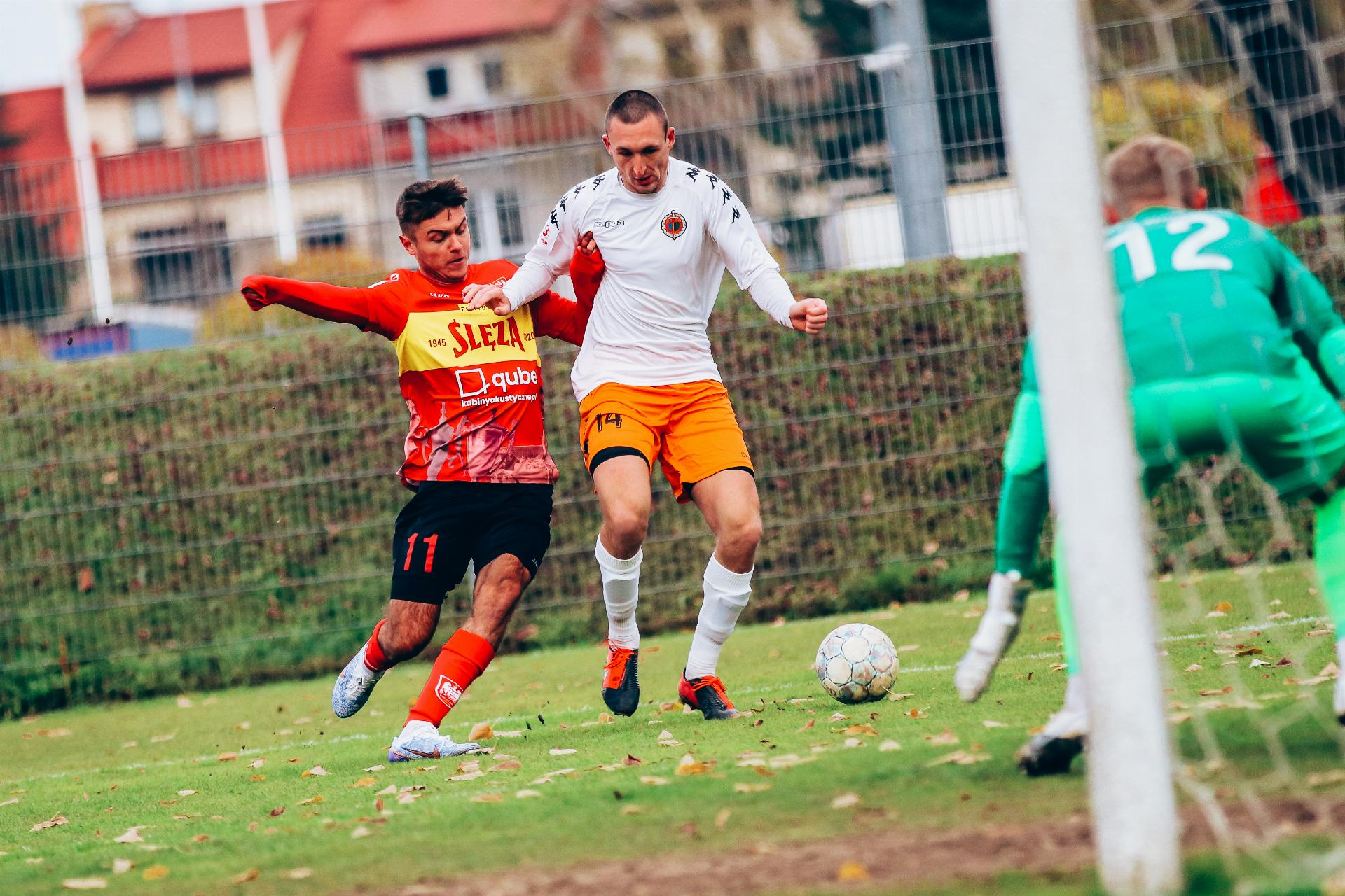 3 Liga: na koniec porażka, ale i optymizm Chrobry – Ślęza 1:2 w ostatniej jesiennej kolejce. Ciąg dalszy w przyszłym roku. 19-11-2022 04:15 autor: ŁJ Chrobry II kończy zmagania w rundzie jesiennej 3 Ligi i choć w ostatnim występie musiał uznać wyższość rywali, to był dla niego dobry okres. Głogowianie do rundy wiosennej debiutanckiego sezonu będą na bezpiecznej 14 pozycji. Pierwsza połowa meczu ze Ślęzą była widowiskowa. Już po 20 minutach wrocławianie prowadzili 2:0. W 16 minucie Bartka Szafera z rzutu karnego pokonał Maciej Tomaszewski, choć głogowski bramkarz był blisko obrony. Cztery minuty później prowadzenie Ślęzy podwyższył „Vinicius Matheus”. Szybko więc sytuacja Chrobrego zrobiła się trudna, ale wtedy sprawy w swoje ręce wziął Tomasz Wojciechowski, który sam w polu karnym minął rywali i mocnym uderzeniem zdobył kontaktowego gola. Niewiele zabrakło, aby jeszcze w tej części zrobiło się 2:2, jednak mimo świetnych okazji Miłosza Jóźwiaka czy Adriana Marciniaka nie udało się pójść w ten sposób za ciosem. Szkoda zwłaszcza szansy Adriana Marciniaka, bo po jego strzale piłka odbijała się od poprzeczki i słupka. Po zmianie stron głogowianie przejęli inicjatywę i wyraźnie szukali swoich szans. Ciężko jednak było o rozmontowanie defensywy Ślęzy, w której nie zabrakło dużego doświadczenia w osobie Adama Samca. Tak naprawdę mimo dużo większej przewagi Pomarańczowo-Czarni mieli mniej okazji, niż w pierwszej połowie. Jakub Cieślicki przymierzył niecelnie, a w doliczonym czasie wychodzący sam na sam Michał Fryzowicz nie zdołał opanować piłki. Skończyło się więc na wygranej Ślęzy. Chrobry przerwę zimową spędzi na 14 pozycji, co – biorąc pod uwagę pierwszy na tym poziomie sezon – jest dobrym osiągnięciem. Głogowianie pomimo trudnego startu i czterech porażek w czterech pierwszych kolejkach z każdym kolejnym miesiącem prezentowali się coraz lepiej, opuścili strefę spadkową, potrafili urywać punkty nawet czołówce, więc przed nimi optymistyczne przygotowania do dalszej części sezonu. CHROBRY II GŁOGÓW – ŚLĘZA WROCŁAW 1:2 (1:2) 0:1 Tomaszewski 16 (k) 0:2 Vinicius Matheus 20 1:2 Wojciechowski 22 CHROBRY II: Szafer – Iwanowicz (46 Fryzowicz), Malczuk, Wawrzyniak, Jandziak, Pieczarka, Marciniak (84 Matysiak), Wojciechowski, Bartlewicz (63 Zygmunt), Cieślicki, Jóźwiak (84 Inoue). ŚLĘZA: Gasztyk – Stempin, Marcjan (82 Wroński), Wawrzyniak, Olek, Maciołek, Vinicius Matheus (82 Krukowski), Samiec, Tomaszewski, Fediuk, Kluzek. ŻÓŁTE KARTKI: Wawrzyniak, Jandziak, Krawiec – Tomaszewski, Maciołek, Krukowski. ZOBACZ TABELĘ 3 LIGI