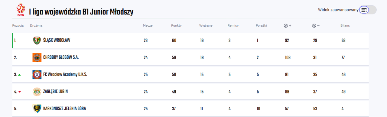 Chrobry U-17 awansował do baraży o CLJ! Chrobry U-17 ze zwycięstwem w Polkowicach i awansem do baraży o Centralną Ligę Juniorów! 31-05-2025 05:21 autor: ŁJ Pomarańczowo-Czarni potrzebowali punktu, aby na dwie kolejki przed końcem I Wojewódzkiej Ligi Juniorów Młodszych przypieczętować awans. Na tym remisie jednak nie poprzestali i pokonali na wyjeździe Górnika Polkowice aż 8:1. Taki rezultat oznacza, że rozgrywek nie zakończą niżej niż na drugiej pozycji i mogą już nastawiać się na udział w barażach. W dwumeczu barażowym rywalem Chrobrego będzie przedstawiciel województwa śląskiego. Tam jednak rywalizacja jest bardziej zacięta i w grze pozostają dwie ekipy: GKS Katowice oraz Ruch Chorzów. Pierwsza w tabeli jest GieKS-a, ale ma tylko dwa punkty więcej od Niebieskich. Zanim dojdzie do pojedynków w barażach o dołączenie do elitarnej grupy w tym roczniku, Pomarańczowo-Czarnym przyjdzie dokończyć zmagania w swojej lidze. W przedostatniej kolejce (7 czerwca) Chrobry podejmie Parasol Wrocław, a w ostatniej (14 czerwca) zagra na wyjeździe ze Ślezą Wrocław. Całej drużynie Chrobrego, w tym trenerom Jakubowi Wolnemu i Andrzejowi Kwaśnikowi, serdecznie gratulujemy!