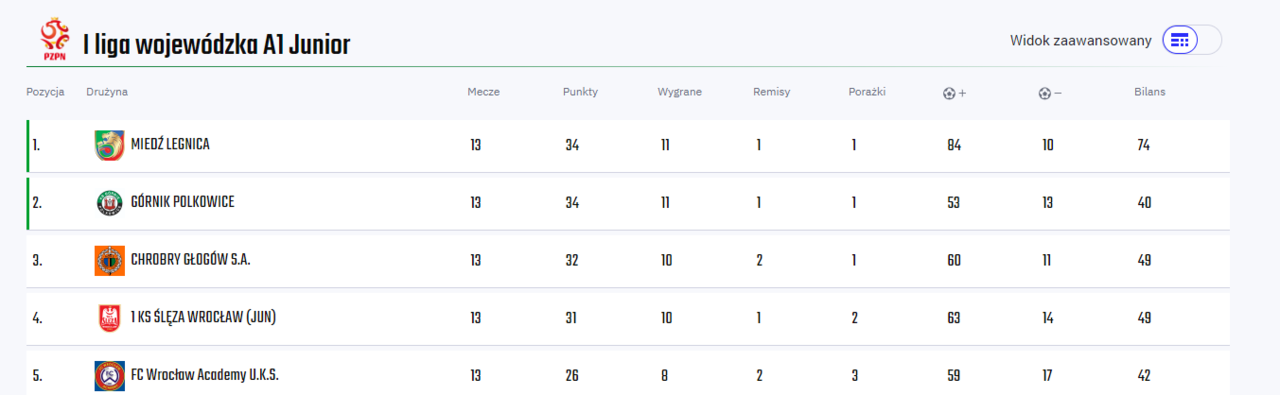 Chrobry U-19 walczy o awans Bardzo ważny mecz rozegra w niedzielę Chrobry U-19 Głogów, który ma szansę awansować do Makroregionalnej Ligi Juniorów U-19. 15-11-2024 05:01 autor: ŁJ Wojewódzka Liga Juniorów z udziałem Pomarańczowo-Czarnych ma się ku końcowi. Na dwie kolejki przed końcem Chrobry jest trzeci w tabeli ze stratą dwóch punktów do lidera – Miedzi Legnica. I tak się składa, że w niedzielę czeka go pojedynek z derbowym rywalem z Legnicy. Nie jest on o bezpośrednim o awans, ale może mieć na to bardzo duży wpływ. Głogowianie muszą wygrać, a wtedy na kolejkę przed końcem zajmą jedno z dwóch dających awans miejsc. Później pozostanie je obronić w Jeleniej Górze, ale… najpierw Miedź i to na niej trzeba się skupić. Prowadzony przez trenera Przemysława Skarpińskiego Chrobry U-19 w trzynastu meczach zdobył 32 punkty, ponosząc tylko jedną porażkę. Przed tygodniem wygrał po raz dziesiąty – pokonując po golach Mateusza Żmudzińskiego, Kacpra Szostaka, Szymona Kopernickiego i Krystiana Tworzydło Polonię-Stal Świdnica 4:0. Niedzielny mecz Chrobry U-19 – Miedź U-19 rozegrany zostanie na boisku na os. Piastów Śląskich i rozpocznie się o godz. 12.00. Chrobry, trzymamy kciuki!