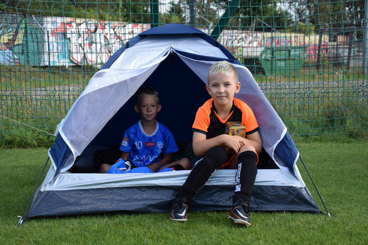 Pod namiotami na... murawie Tego jeszcze nie było! Najmłodsi zawodnicy Akademii Piłki Nożnej ciepłą, sierpniową noc spędzili pod namiotami rozłożonymi na boisku, na którym normalnie odbywają się treningi piłkarskie. 19-08-2024 05:16 autor: ŁJ - Młodzi adepci Akademii mieli okazję przeżyć niezapomniane wydarzenie, które na pewno długo zapamiętają. Dzieci wzmacniały swoją więź z drużyną oraz klubem, do tego nie sposób zapomnieć o budowaniu pewności siebie, odwagi i wychodzenia ze strefy komfortu - powiedział organizujący wyjątkową nocowankę na zakończenie wakacji trener najmłodszych grup Akademii Piotr Szymański. Działo się dużo, bo były: treningi piłkarskie, gry i zabawy ruchowe, wspólne posiłki pod gołym niebem, wieczorne oglądanie gwiazd oraz rakiety Falcon 9, wieczorne kino, poranna gimnastyka, a do tego nagrody i wyróżnienia. Sami zobaczcie to na zdjęciach.