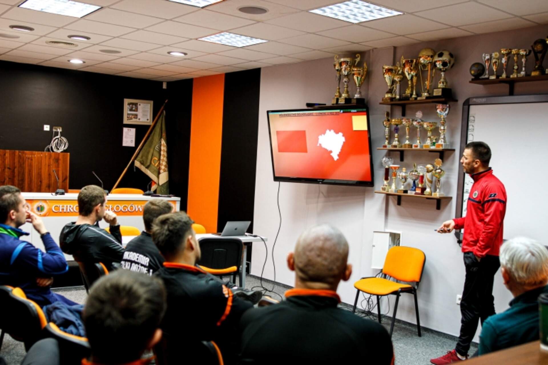 Spotkanie trenera Djurdjevicia z APN Dziś kadra trenerska Akademii Piłki Nożnej spotkała się z Ivanem Djurdjeviciem - szkoleniowcem pierwszej drużyny Chrobrego. - Spotkanie to zostało zorganizowane, ponieważ chcieliśmy wymienić swoje spostrzeżenia z trenerem… 02-10-2019 11:30 autor: JK Dziś kadra trenerska Akademii Piłki Nożnej spotkała się z Ivanem Djurdjeviciem - szkoleniowcem pierwszej drużyny Chrobrego. - Spotkanie to zostało zorganizowane, ponieważ chcieliśmy wymienić swoje spostrzeżenia z trenerem pierwszego zespołu, w którym znajduje się coraz większa ilość naszych zawodników - mówi Grzegorz Nowak, koordynator APN. W kwestii teoretycznej omówionych zostało sporo zagadnień związanych z funkcjonowaniem Akademii w przyszłości. Natomiast w praktyce trenerzy mogli zobaczyć metodologię gry w obronie, którą przedstawił im Ivan Djurdjević mający do dyspozycji zawodników z rocznika 2003.
