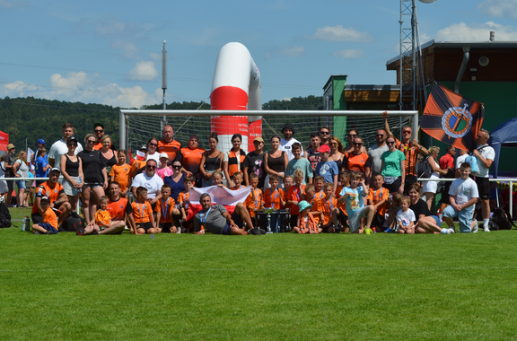 U-9: z pucharem zza granicy W niedzielę, 29 czerwca, chłopcy z rocznika 2016 zakończyli zmagania w międzynarodowym turnieju Budweis Cup w Czeskich Budziejowicach. 04-07-2025 08:24 autor: ŁJ Udział w zagranicznym turnieju relacjonuje nam trener Tomasz Mucha: Po sobotnich rozgrywkach grupowych, w których nasz zespół zajął 1. miejsce, wygrywając wszystkie mecze (10 strzelonych bramek, 0 straconych), w niedzielę rozpoczęliśmy fazę pucharową. W ćwierćfinale pokonaliśmy drużynę z Czech 3:0, a następnie w półfinale wygraliśmy 4:1 z kolejnym czeskim zespołem - była to jedyna bramka stracona przez nasz zespół w całym turnieju. Wielki finał rozegraliśmy z drużyną z Niemiec. Mimo wielu stworzonych sytuacji i wyraźnej przewagi, mecz zakończył się wynikiem 1:0 po skutecznie wykorzystanym rzucie karnym. Emocji nie brakowało do samego końca! 14-osobowy zespół spisał się znakomicie. Turniej ten był podsumowaniem całorocznej pracy i treningów - prawdziwą nagrodą dla chłopców. Mimo upalnej pogody, bardziej odpowiedniej do plażowania niż grania, chłopcy walczyli jak profesjonaliści. Mecze trwały po 25 minut i odbywały się na świetnie przygotowanych boiskach. W tych wymagających warunkach poradzili sobie doskonale - zasłużenie sięgając po złoty medal. Szczególne podziękowania kierujemy do rodziców - za wzorowe zachowanie i gorący, pozytywny doping, który dodawał chłopcom skrzydeł przez cały turniej. 👤 Skład drużyny: Antoni Szpilewicz (bramkarz), Antoni Sochacki, Iwo Bożek, Alan Kamiński, Mateusz Dobrychłop, Maksymilian Lebedyński, Tymoteusz Szymczak, Hubert Mordarski, Jan Kierkiewicz, Szymon Szarzec, Borys Sawicki, Wojciech Paczkowski, Makar Goruk, Adam Czyczyk. 👤 Trener: Tomasz Mucha. Fot. Łukasz Paczkowski