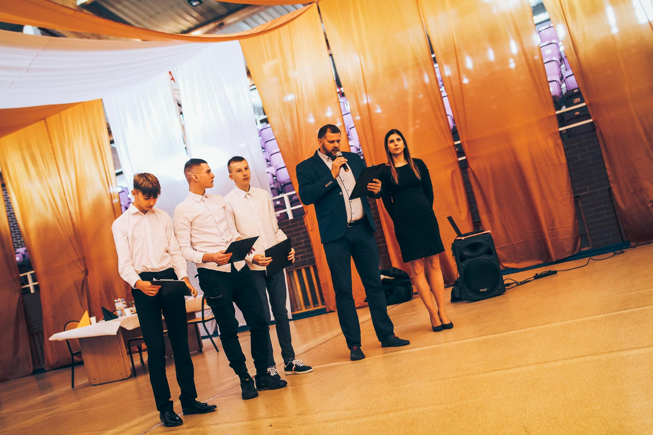 Wigilia SMS Chrobry Głogów Kończący rok uczniowie i nauczycieli Szkoły Mistrzostwa Sportowego Chrobry Głogów spotkali się podczas Wigilii. 12-12-2022 12:15 autor: ŁJ Spotkanie wigilijne odbyło się tym razem w hali, żeby móc pomieścić wszystkich kilkuset uczniów i nauczycieli Szkoły Mistrzostwa Sportowego Chrobry Głogów. Przebiegło zgodnie z tradycją, z przemowami, dzieleniem się opłatkiem, życzeniami, charakterystycznym dla świąt poczęstunkiem i nawet prezentami. Na spotkanie zostali zaproszeni piłkarze pierwszoligowego Chrobrego i mimo urlopów uczestniczyli w nim Mateusz Machaj, Michał Ilków-Gołąb oraz Michał Michalec.