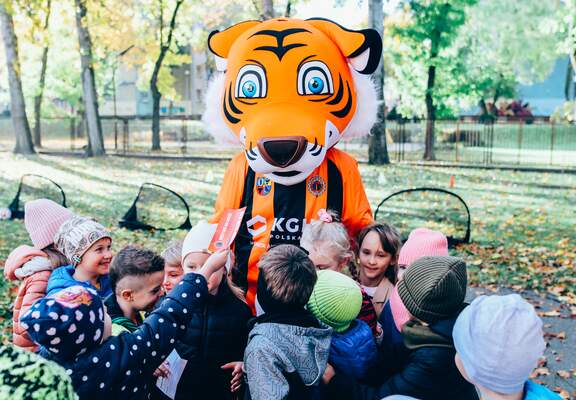 Z trenerem Pawłem, klubową maskotką i sprzętem sportowym do zajęć odwiedziliśmy przedszkolak...