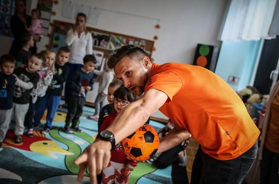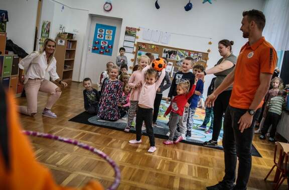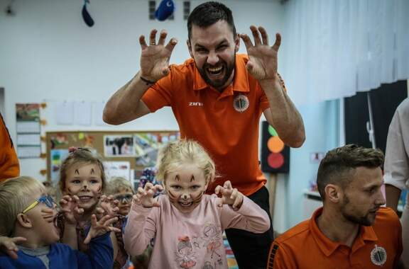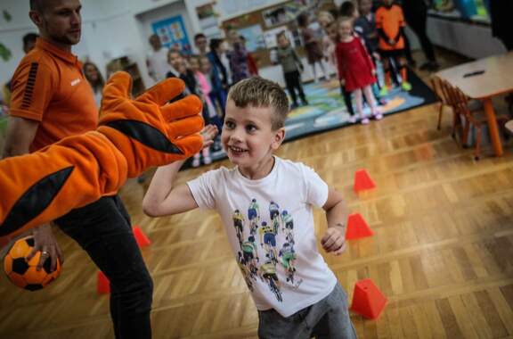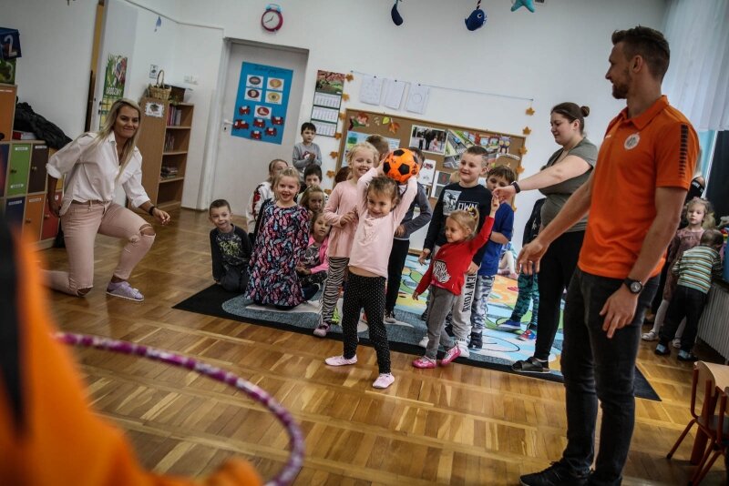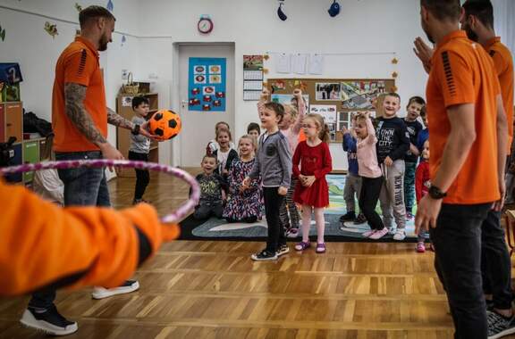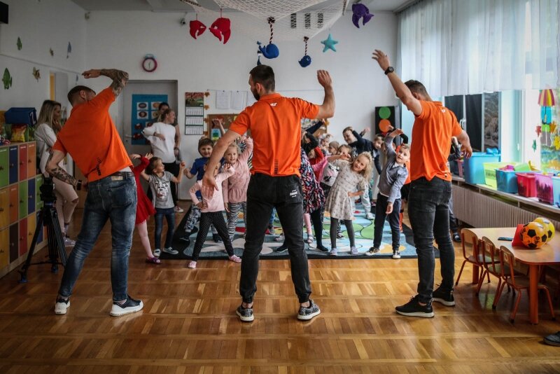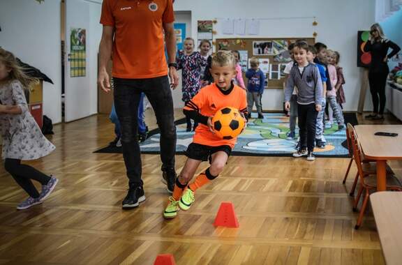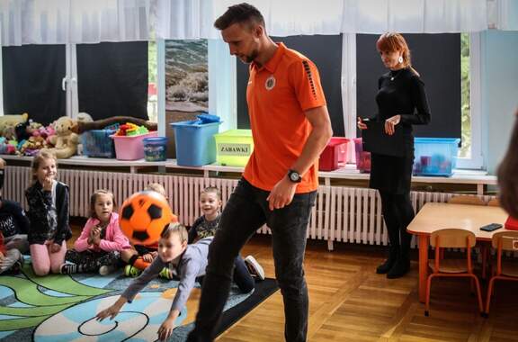 19.09.2019: trzech piłkarzy ChG w przedszkolu Jarzębinka
