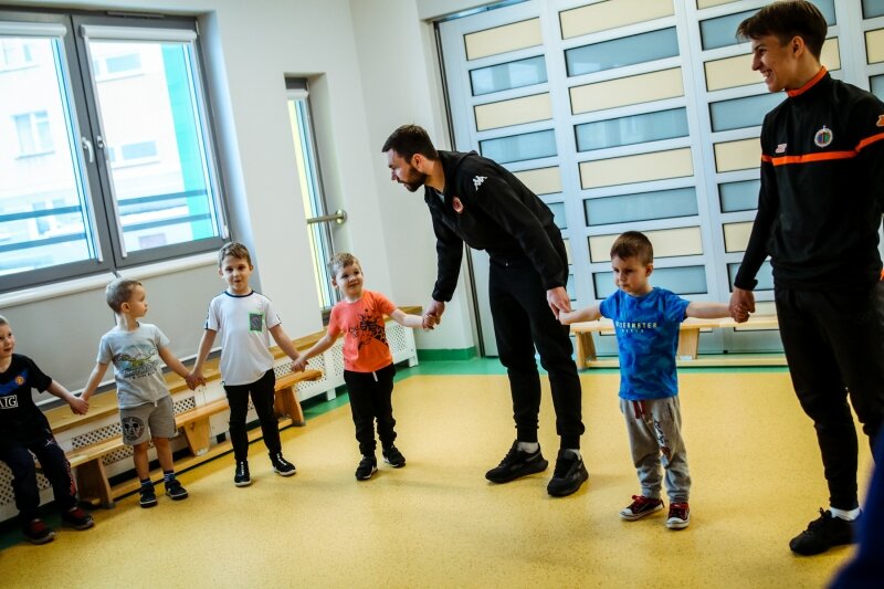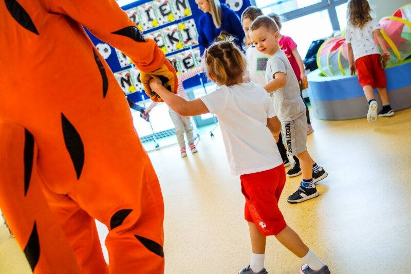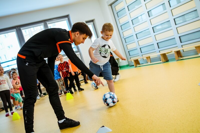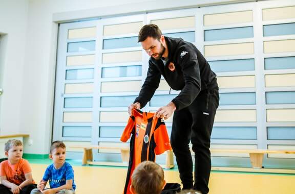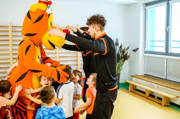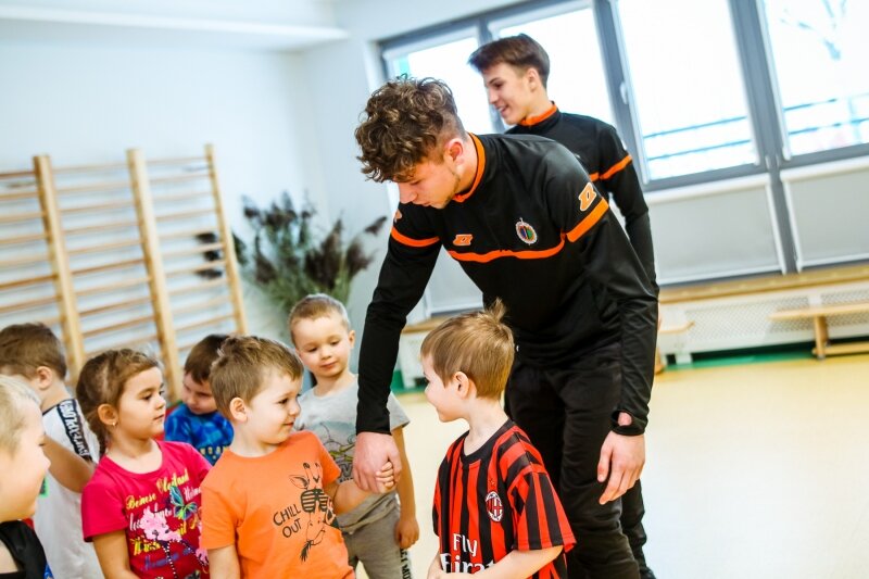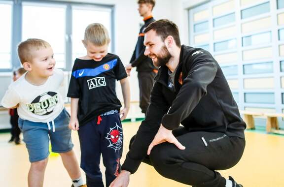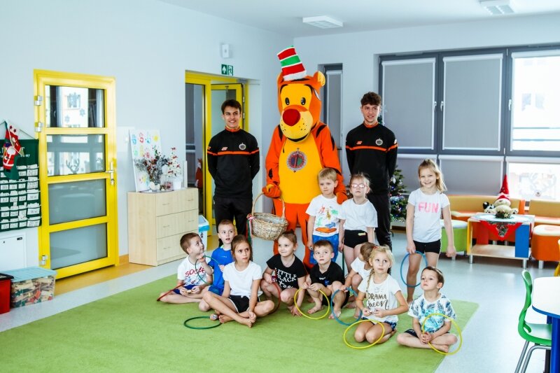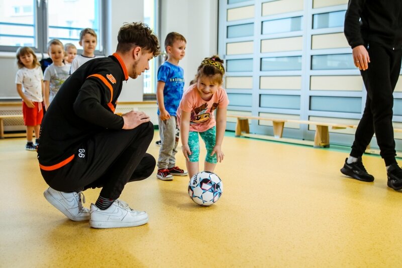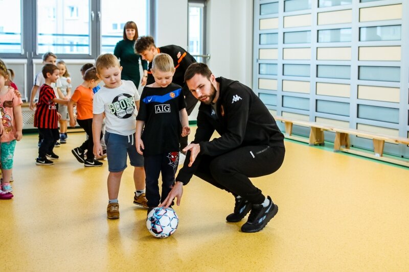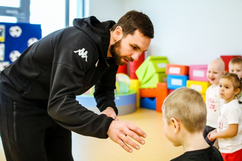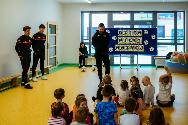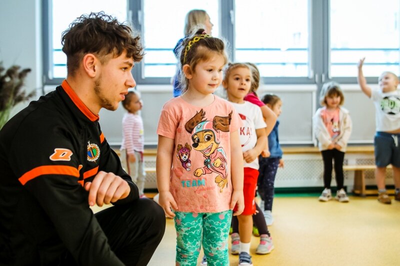 Mikołaj Lebedyński z juniorami w przedszkolu