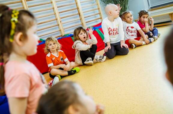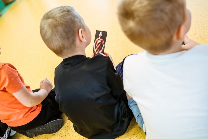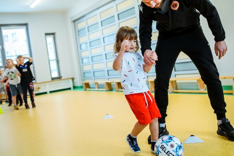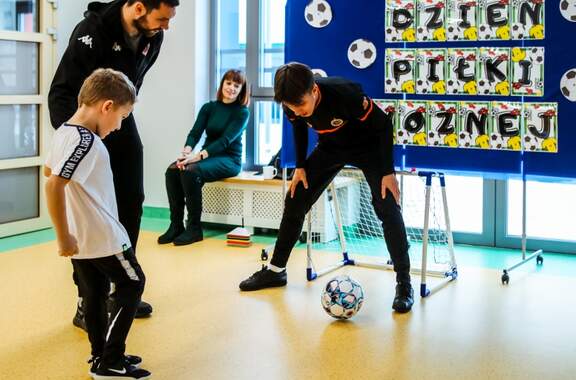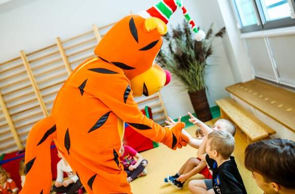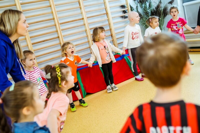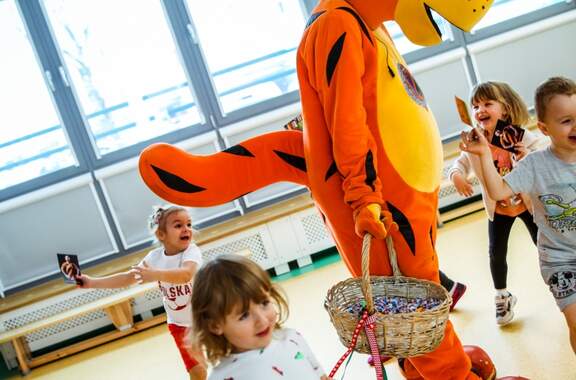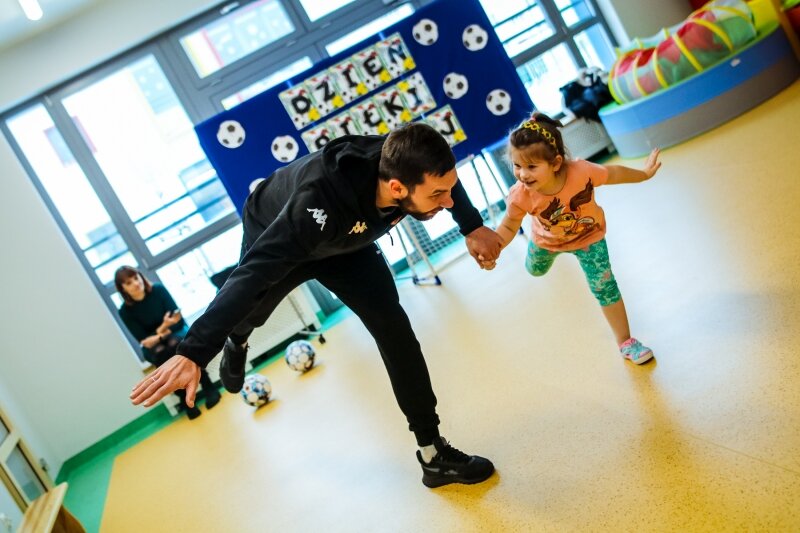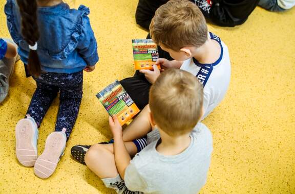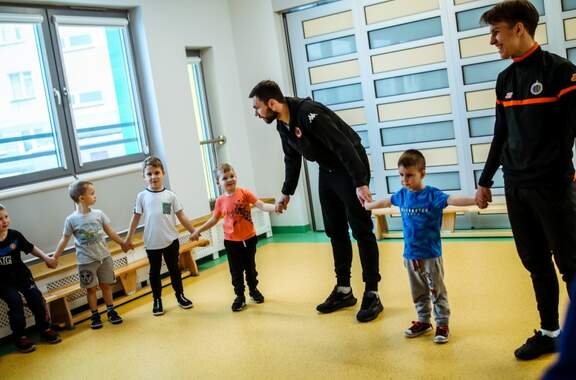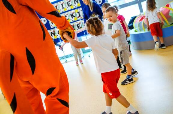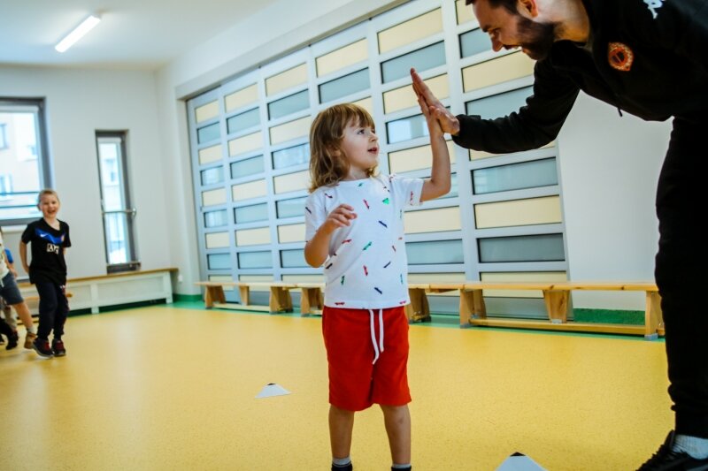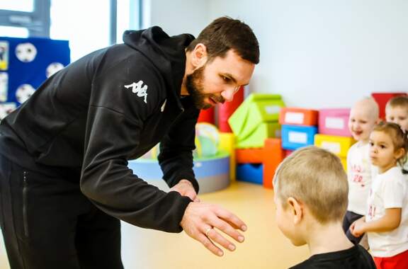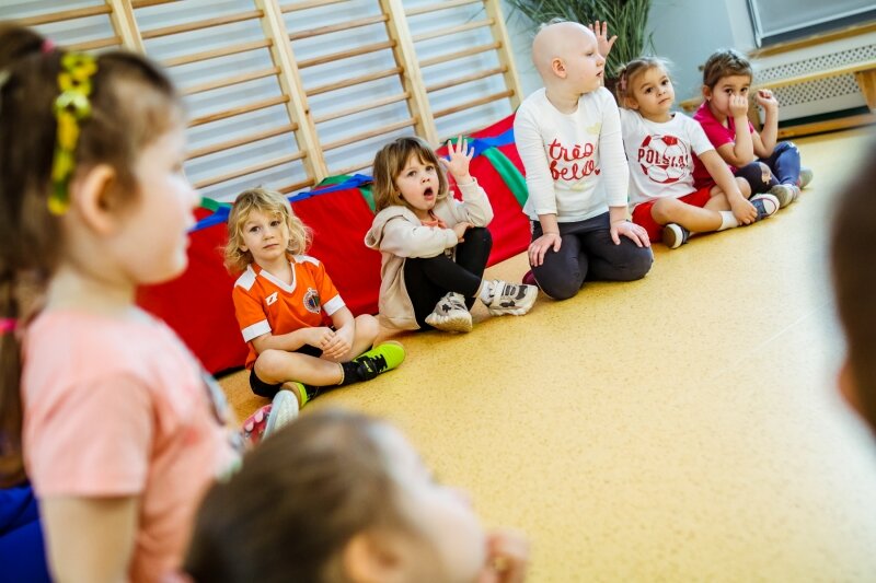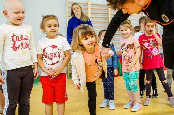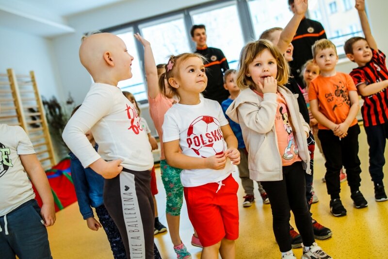 Mikołaj Lebedyński z juniorami w przedszkolu