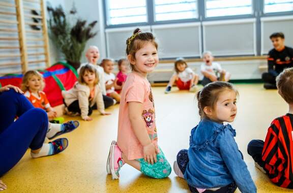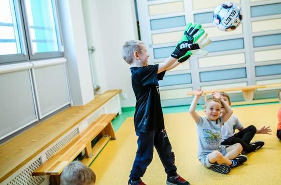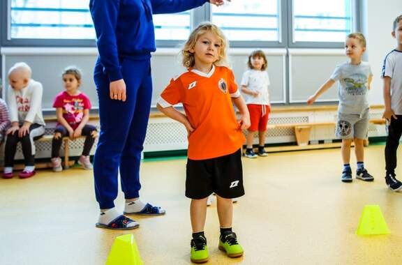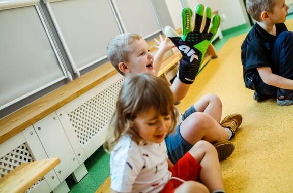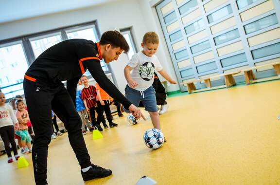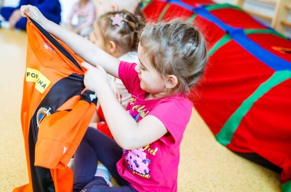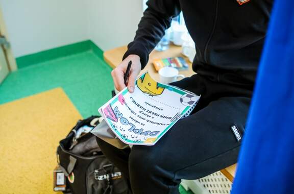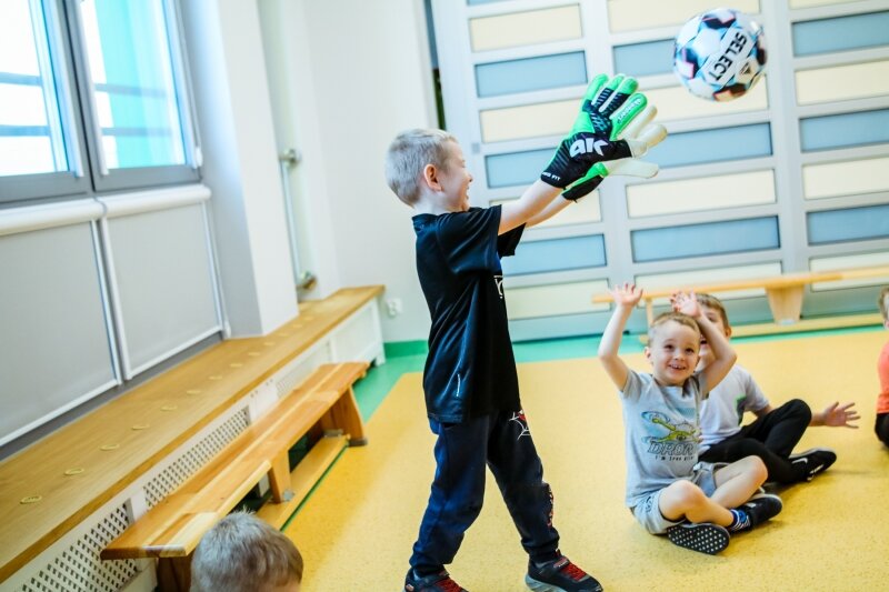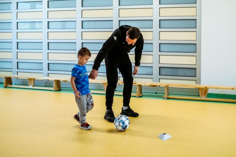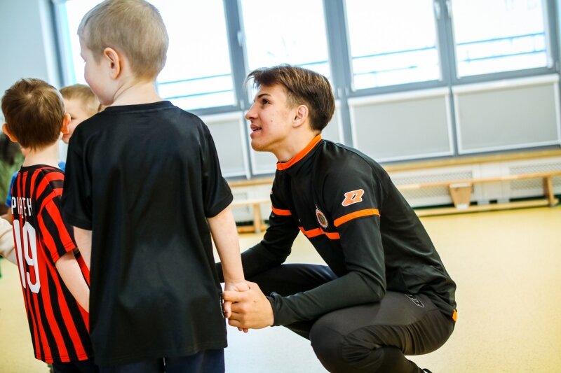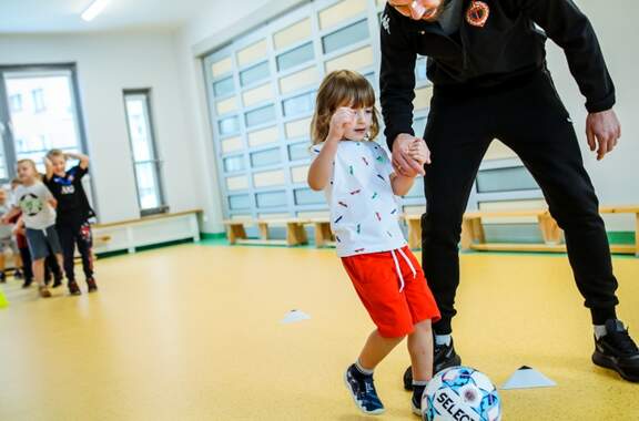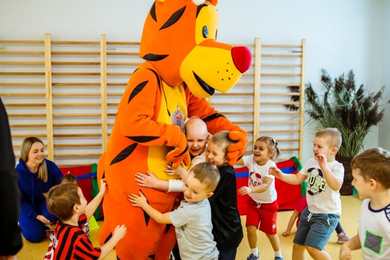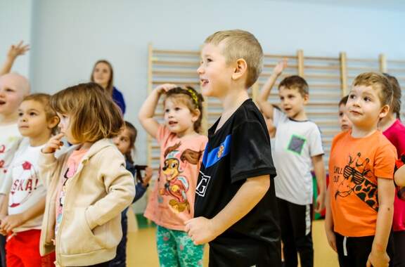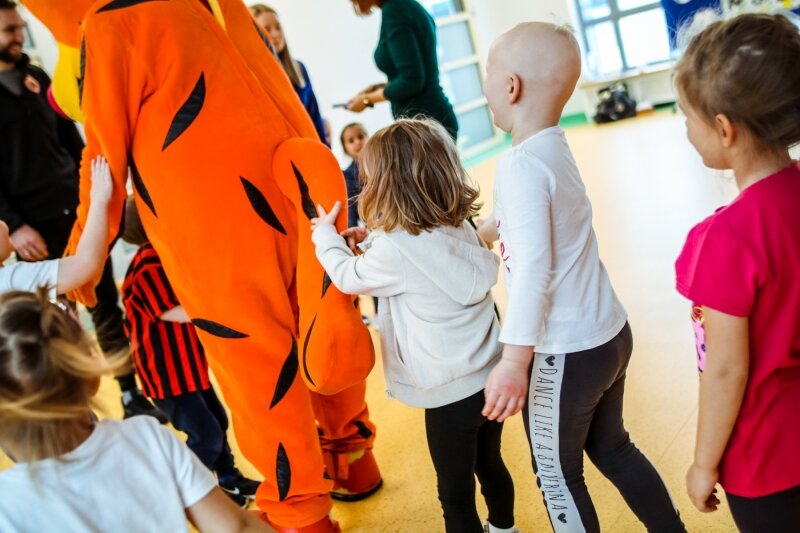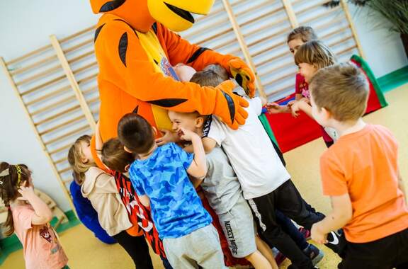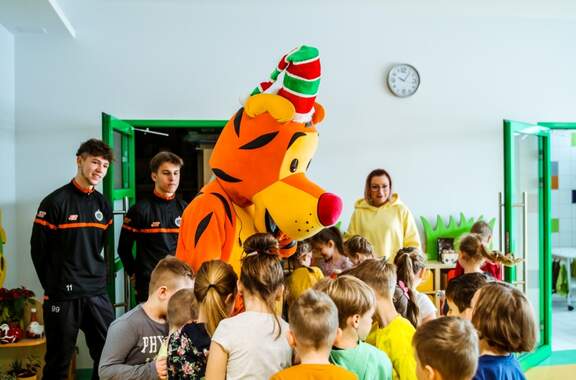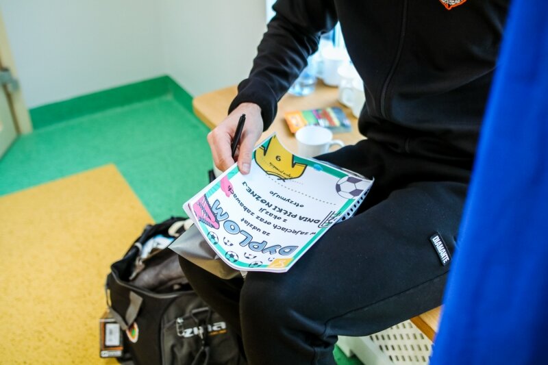 Mikołaj Lebedyński z juniorami w przedszkolu