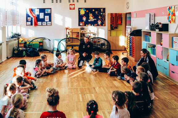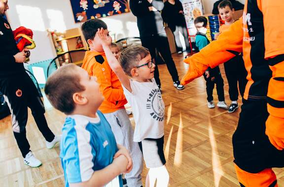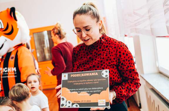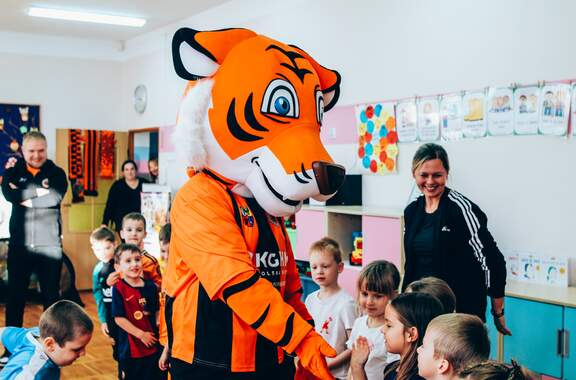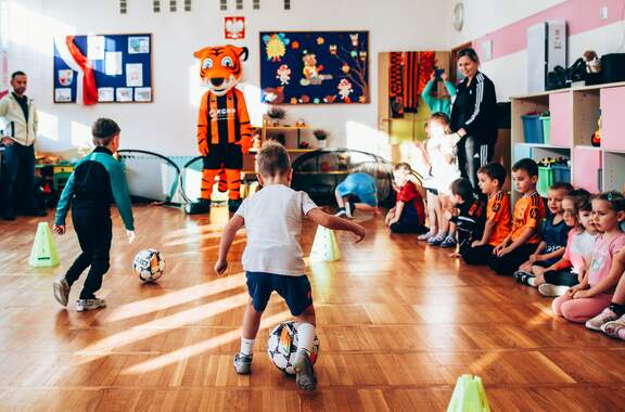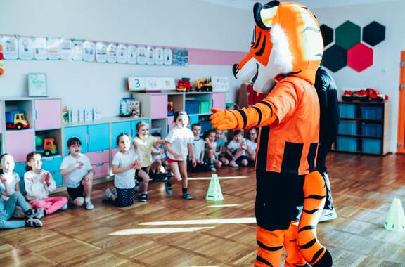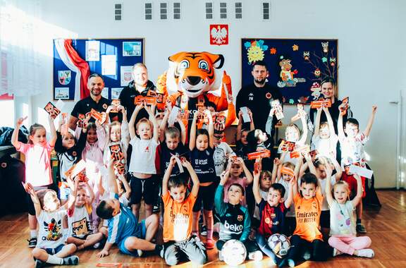 Nasz trener i Tygrysek w przedszkolu nr 10
