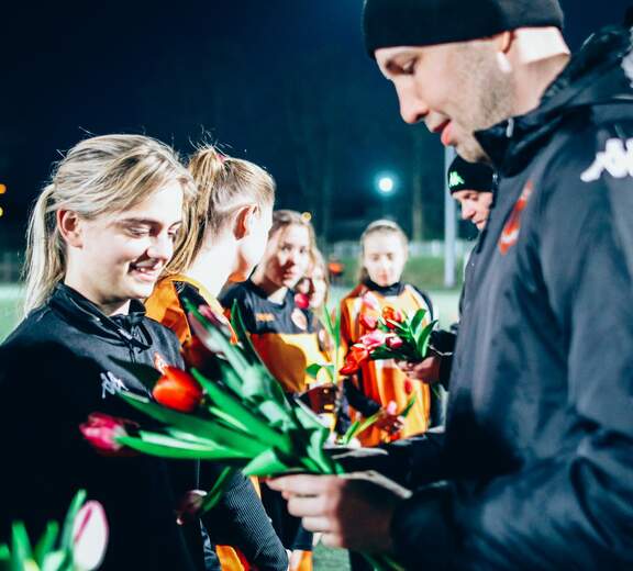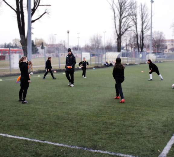 09.03.2022: trening piłkarek z trenerami pierwszej drużyny