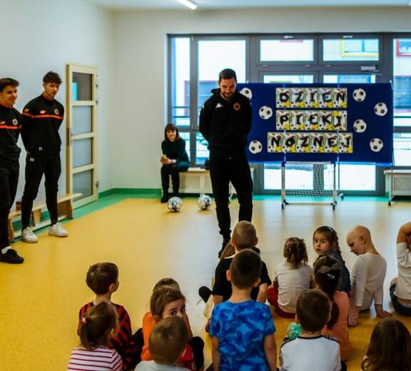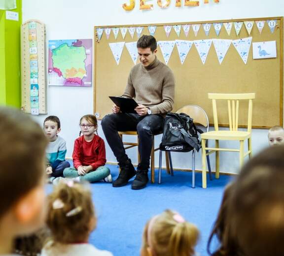 Mikołaj Lebedyński z juniorami w przedszkolu