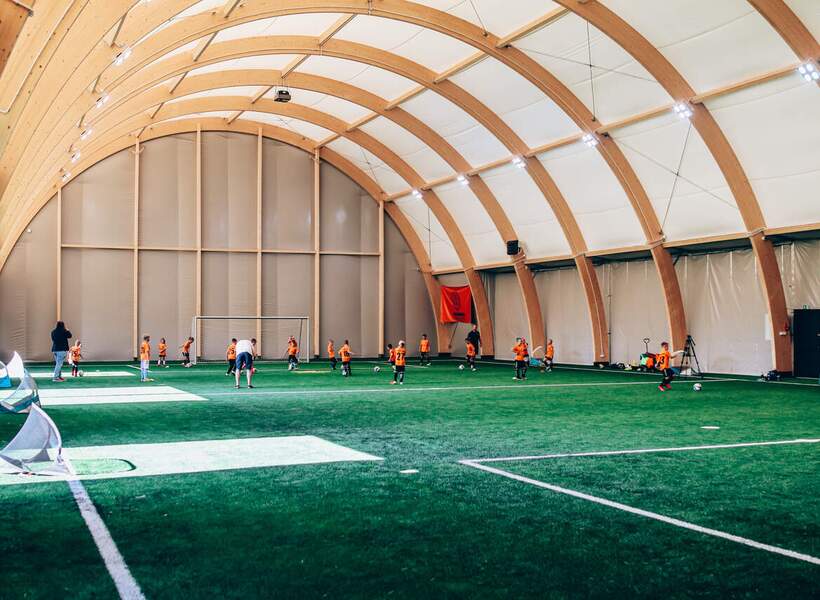 Przy stadionie są dwie płyty treningowe, boisko kryte oraz budynek zaplecza piłkarskiego. Znajdują się tam trzy szatnie, magazyn, pomieszczenia biurowe oraz dobrze wyposażona siłownia.