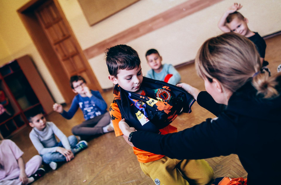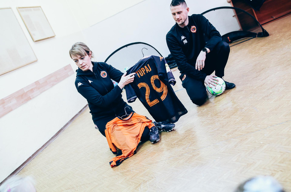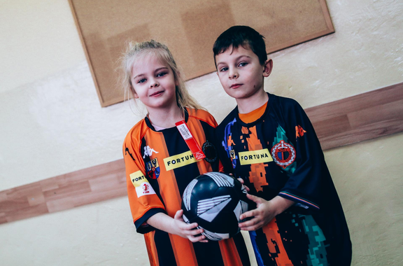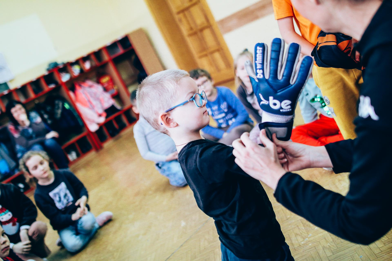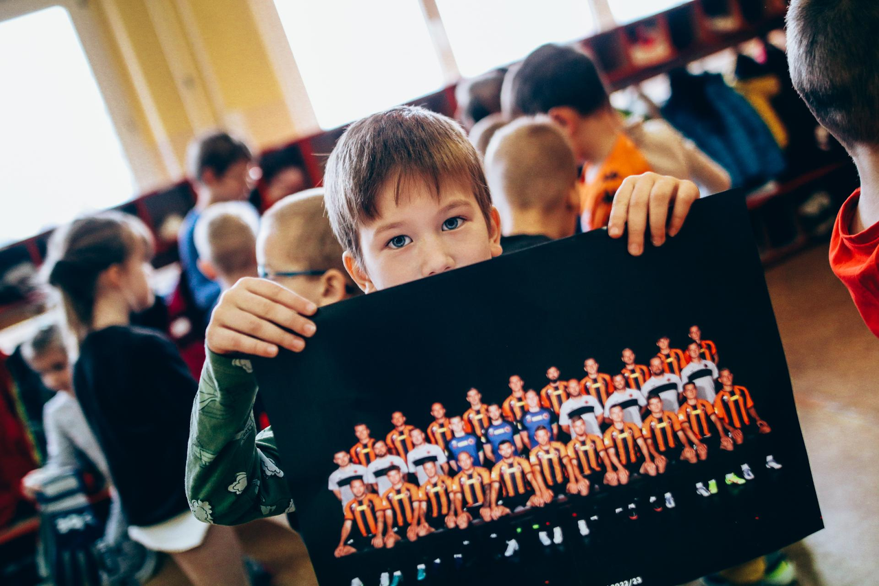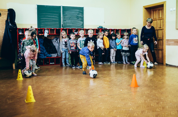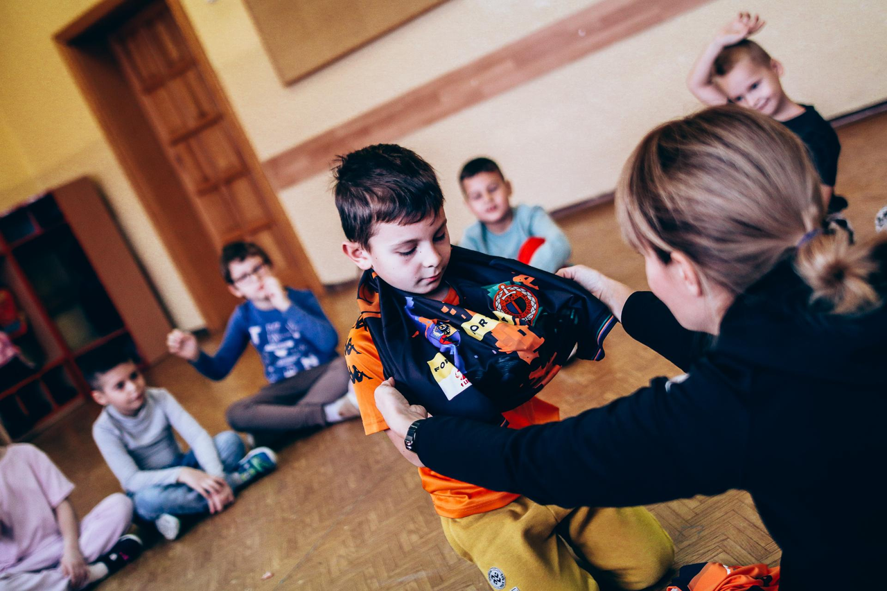 Trening Akademii z przedszkolakami z "piątki" Wraz z trenerem Chrobrego U-7 Pawłem Marszałkiem i klubową maskotką odwiedziliśmy dziś dzieci z Przedszkola Publicznego nr 5. 29-11-2022 11:25 autor: ŁJ Podzieliliśmy się wiedzą o piłce nożnej, bo wielu przedszkolaków wiedziało nawet z jakim numerem występuje Robert Lewandowski, pokazaliśmy stroje meczowe, specjalne buty z korkami i potrenowaliśmy z piłką, pokazując w ten sposób, jak wyglądają treningi w Akademii Piłki Nożnej Chrobrego dla najmłodszych. Zapraszamy do obejrzenia zdjęć z wizyty Akademii Piłki Nożnej u przedszkolaków.