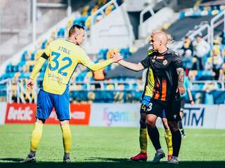 Dwa gole Czubaka po 80 minucie. Punkty dla Arki Chrobry bez punktów w Gdyni. Bramki wchodzącego w drugiej połowie Karola Czubaka w 81 i 86 minucie zapewniły pełną pulę Arce. 29-09-2024 02:02 autor: ŁJ Zaczęło się od próby Arki, bo już w 4 minucie dogranie z boku polu karnego od Szymona Sobczaka zamykał z bliska Joao Oliveira, ale nie trafił w światło bramki. Chrobry odpowiedział w 8 minucie, gdy strzelał Robert Mandrysz, a bronił Damian Węglarz. I tak ta połowa wyglądała. Gospodarze przeważali i częściej zbliżali się do szesnastki, jednak skupiony na obronie Chrobry znajdował swoje momenty i również zagrażał. Tak było w 29 minucie. Futbolówkę efektownie wycofał do Roberta Mandrysza Mateusz Lewandowski. Pomocnik Pomarańczowo-Czarnych od razu przymierzył, a piłka po rykoszecie mogła zaskoczyć bramkarza gdynian, lecz na jego szczęście przeszła obok słupka. Gdy sędzia kończył pierwszą odsłonę, nadal utrzymywał się bezbramkowy remis. Arka może i utrzymała swoją przewagę, ale na bardzo dobrze zorganizowanym w defensywie Chrobrym nie robiło to wrażenia. fot. 400mm.pl fot. 400mm.pl Na początku drugiej połowy Arka złapała dobry moment, a Chrobremu we znaki dał się głównie Hide Vitalucci, który niebezpiecznie strzelał w 48 i 52 minucie. Za pierwszym razem - trzeba przyznać, że po ładnej akcji, spudłował - w drugiej bardzo dobrze bronił Dawid Arndt. Po drugiej stronie, w 62 minucie, znów to Robert Mandrysz próbował coś wskórać uderzeniem z dystansu. Niestety - niecelnym. Chwilę wcześniej, w 60 minucie, na boisko wszedł najlepszy obok Szymona Sobczaka strzelec Arki Karol Czubak i to on okazał się pogromcą głogowian. Wykorzystał dwa dogrania w pole karne. Najpierw w 80 minucie, a następnie w 86 minucie. W tej drugiej sytuacji było trochę przypadku, bo odbita po drodze futbolówka nabiła napastnika miejscowych, jednak fakt był taki, że Chrobry przegrywał już 0:2. Trudno wtedy było myśleć o entuzjastycznym zrywie i ostatecznie rezultat już do końcowego gwizdka nie uległ zmianie. W następnym meczu Chrobry zagra u siebie z kolejnym zespołem z czołówki - Górnikiem Łęczna. To spotkanie w niedzielę 6 października o godz. 12.00. fot. 400mm.pl