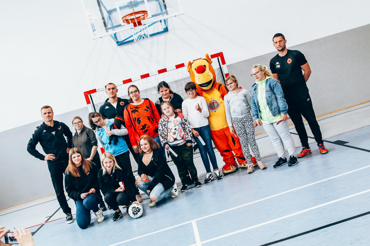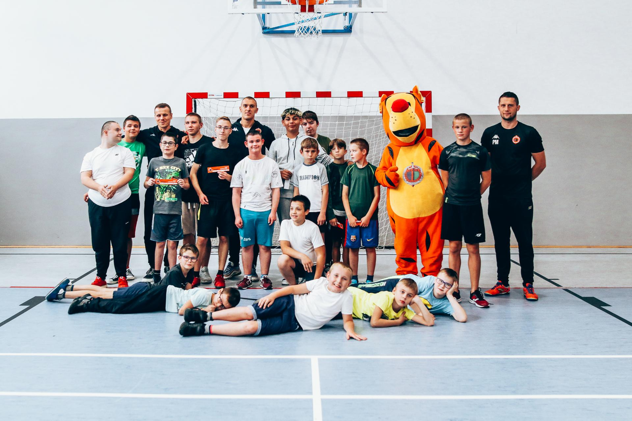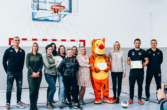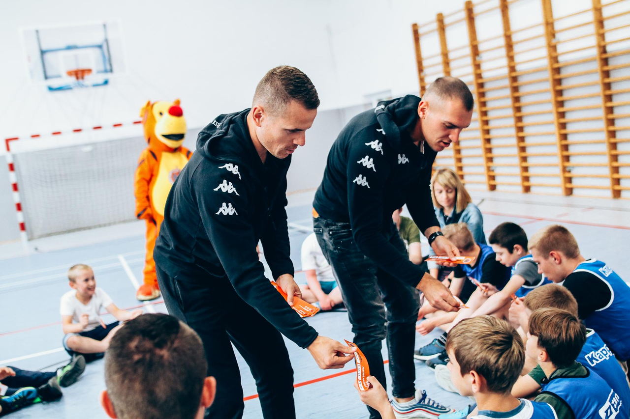 Trening w Zespole Placówek Szkolno-Wychowawczych Kamil Wojtyra, Michał Ilków-Gołąb i trener Chrobrego U-7 Paweł Marszałek w Zespole Placówek Szkolno-Wychowawczych w Głogowie. 28-09-2022 10:35 autor: ŁJ We wtorek mieliśmy przyjemność zorganizować piłkarski trening w Zespole Placówek Szkolno-Wychowawczych w Głogowie. W sąsiadującej z klubową bazą placówką pojawili się Michał Ilków-Gołąb, Kamil Wojtyra, trener jednej z najmłodszych grup w Akademii Piłki Nożnej Paweł Marszałek oraz klubowa maskotka. Miło było oglądać pełne zaangażowanie podopiecznych placówki i jeszcze milej będzie zobaczyć ich na stadionie podczas meczu, na który zostali zaproszeni.