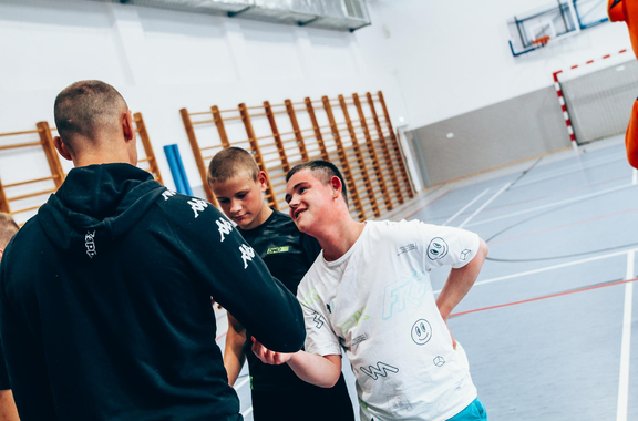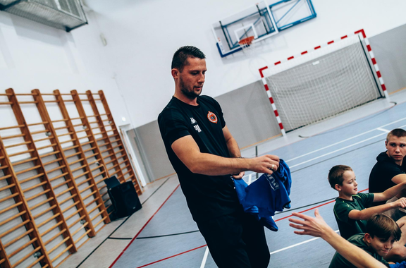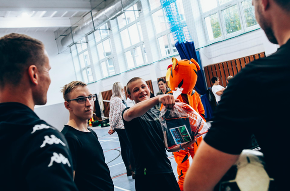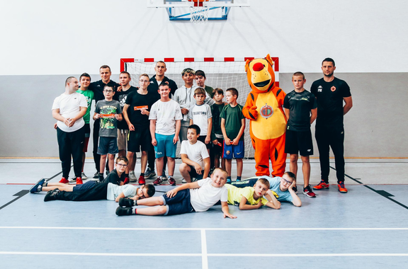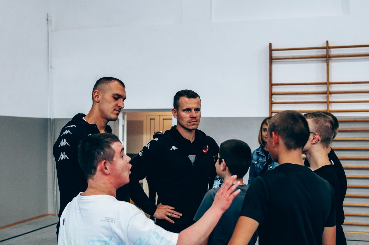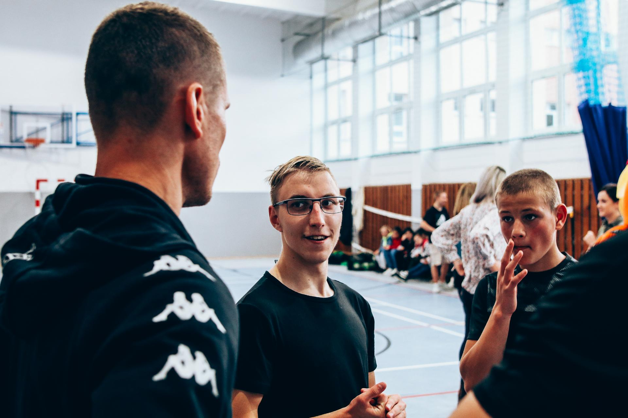 Trening w Zespole Placówek Szkolno-Wychowawczych Kamil Wojtyra, Michał Ilków-Gołąb i trener Chrobrego U-7 Paweł Marszałek w Zespole Placówek Szkolno-Wychowawczych w Głogowie. 28-09-2022 10:35 autor: ŁJ We wtorek mieliśmy przyjemność zorganizować piłkarski trening w Zespole Placówek Szkolno-Wychowawczych w Głogowie. W sąsiadującej z klubową bazą placówką pojawili się Michał Ilków-Gołąb, Kamil Wojtyra, trener jednej z najmłodszych grup w Akademii Piłki Nożnej Paweł Marszałek oraz klubowa maskotka. Miło było oglądać pełne zaangażowanie podopiecznych placówki i jeszcze milej będzie zobaczyć ich na stadionie podczas meczu, na który zostali zaproszeni.