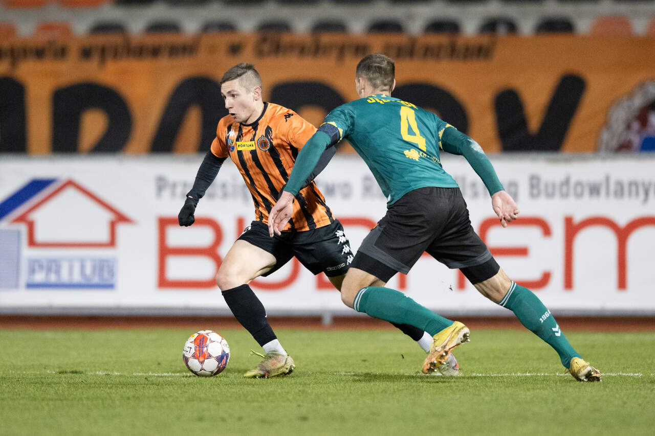 Porażka z GKS-em Nie wyszedł Chrobremu ostatni domowy mecz tego roku. Mimo kilku bardzo dobrych szans, to GKS Katowice wygrywa to spotkanie. Na cztery gole katowiczan Pomarańczowo-Czarni zdobyli jednego. 16-12-2023 04:08 autor: ŁJ Jako pierwszy sprawdzony został Damian Węglarz, który w 6 minucie obronił strzał z dystansu w wykonaniu Antoniego Kozubala. Chrobry odpowiedział na to jeszcze bardziej konkretnie, a w przeciągu 120 sekund dwie bardzo dobre okazje miał Szymon Bartlewicz. W 10 minucie uderzał z rzutu wolnego, lecz górą był interweniujący Dawid Kudła. Natomiast w 12 minucie jego wolej po wrzutce z prawej strony Bartosza Biela okazał się nieznacznie niecelny. Goście wyszli na prowadzenie w 15 minucie. Piłkę na połowie głogowian przechwycił Antoni Kozubal. Najpierw trafił w słupek, ale będącym w dobrym miejscu poprawił strzał i dał swojej drużynie prowadzenie. W 18 minucie kolejną szansę miał Szymon Bartlewicz - niecelnie główkujący po ładnej akcji Pomarańczowo-Czarnych. Chwilę później działo się po drugiej stronie, gdzie Damian Węglarz przerzucił futbolówkę po próbie zza pola karnego Sebastiana Bergiera. Głogowianie zdołali wrócić do gry w samej końcówce. Zza szesnastki przymierzył Patryk Mucha, co zostało zablokowane przez rywala ręką i już w polu karnym. Sędzia jednak nie od razu wskazał na jedenasty metr. Zdecydował się skorzystać z analizy VAR i przy pomocy systemu nabrał co do tego pewności. Pewnym egzekutorem tego stałego fragmentu był niezawodny Mikołaj Lebedyński i to jego dziewiąty gol w tym sezonie. Niestety, tym razem nie dał prowadzenia na dłużej. Jeszcze w 45 minucie katowiczanie ponownie objęli prowadzenie, a Damiana Węglarza skuteczną główką pokonał były zawodnik Chrobrego Oskar Repka. Być może to przez ten gol do szatni, ale w drugiej połowie się posypało. W 49 minucie trzecią bramkę dla GKS-u zdobył Arkadiusz Jędrych, a w 53 minucie czwartą - a swoją drugą - Antoni Kozubal. Przy takim rezultacie już po ośmiu minutach drugiej połowy ciężko o jakikolwiek zryw. Co prawda bramkową sytuację miał jeszcze Bartosz Biel, a już do 63 minuty trener Piotr Plewnia dokonał pięciu zmian, ale do końca pojedynku niż złego dla gości się nie wydarzyło i to oni mieli lepsze okazje na kolejne trafienia, czemu zapobiegał Damian Węglarz. W tym roku Chrobry jeszcze raz stanie przed szansą na trzy punkty i przekroczenie bariery 20 po całej jesieni. We wtorek rozegrany zostanie zaległy, wyjazdowy mecz z Zagłębiem Sosnowiec. Fot. 400mm.pl