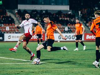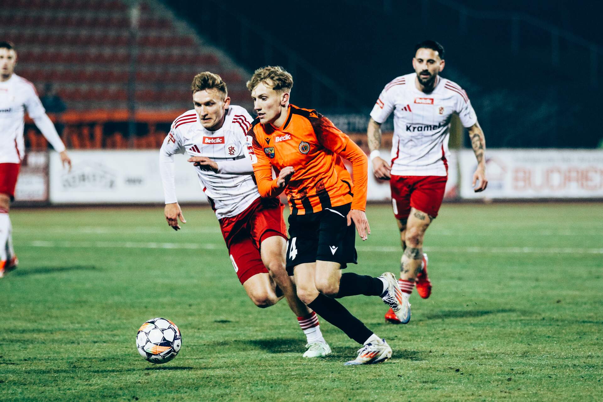 ŁKS lepszy o jedną bramkę Po pierwszych 45 minutach Chrobry prowadził z ŁKS-em 1:0, ale ostatecznie lepsi o jednego gola łodzianie. 14-03-2025 10:20 autor: ŁJ W pierwszej połowie emocje przeniosły się na ostatni kwadrans. W 31 minucie spróbował ŁKS. Bramkarza Chrobrego zaskoczyć starał się Pirulo, ale piłka nieznacznie przeleciała obok bramki. Potem groźny był Chrobry. Blisko pokonania bramkarza łodzian Aleksandra Bobka był Robert Mandrysz, jednak z tego pojedynku "1 na 1" obronną ręką wyszedł ten pierwszy. Chwilę później musiał skapitulować. W 36 minucie Pomarańczowo-Czarni wywalczyli rzut rożny, a po wrzutce Patryka Szwedzika z narożnika głową Bobka pokonał Jakub Gric. To pierwsze trafienie tego zawodnika w Chrobrym, który po przejściu do Głogowa zimą od razu wywalczył sobie miejsce w podstawowym składzie, a teraz tę dobrą dyspozycję przypieczętował golem. Po nim Chrobry prowadził 1:0 i z takim wynikiem schodził na przerwę. Jednak po tej przerwie do ataku przystąpili przyjezdni. W 51 minucie groźnie było za sprawą Sebastiana Rudola - w tej sytuacji nie wyszło, ale to było trochę jak ostrzeżenie, bo już 180 sekund później był remis. Głogowianom już prawie udało się przerwać akcję rywali, którą wjazdem w pole karne rozkręcał Koki Hinokio, lecz po wybiciu piłki do boku przez Przemysława Szarka we właściwym miejscu był Pirulo i błyskawicznym strzałem pokonał Pawła Lenarcika. Chrobry z małą pomocą mógł odpowiedzieć w 77 minucie, gdy po wrzutce w szesnastkę swojego bramkarza niemal pokonał Levent Gulen, ale Bobek zareagował w porę. W 83 minucie było 1:2. Po dograniu z lewej strony, z takiego podania skorzystał Maksymilian Sitek i skutecznie zamykając akcję dał swojej drużynie prowadzenie. Tego goście już do samego końca nie oddali, mając jeszcze dobrą okazję w doliczonym czasie gry - po próbie Antoniego Młynarczyka zmierzającą do bramki piłkę sparował Lenarcik. Po tej kolejce w Betclic 1 Lidze nastąpi przerwa reprezentacyjna. Chrobry kolejny mecz rozegra 29 marca w Warszawie z Polonią.