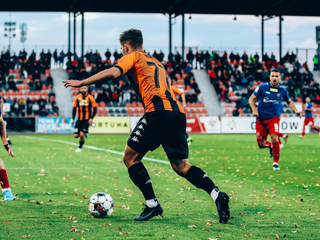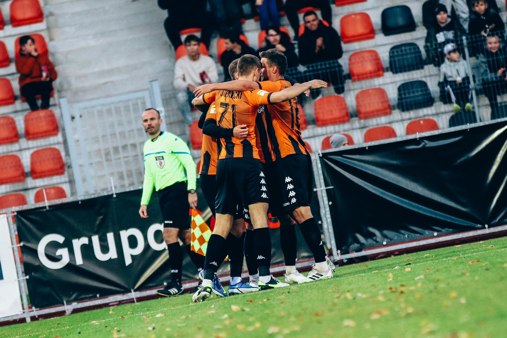 Chrobry znów skuteczny w odrabianiu strat W tym sezonie Chrobry zdecydowanie jest bardzo emocjonującym zespołem i takim, który się nie poddaje. Mimo dwukrotnego prowadzenia Odry Opole, głogowianie kończą mecz na remisie 2:2. To siódme spotkanie z rzędu bez porażki. 03-10-2022 08:00 autor: ŁJ Już w 4 minucie goście objęli prowadzenie. Pierwszą groźniejszą akcję opolan wykorzystał Maciej Makuszewski. Chrobry szybko wziął się w garść i odpowiedział bardzo sprawnie, bo po 9 minutach ponownie mieliśmy remis. Po strzale Sebastiana Stebleckiego w odpowiednim miejscu bliżej bramki znalazł się Mateusz Bochnak i dopełnił formalności. Było to następstwo dążeń głogowian do wyrównania, bo moment gola poprzedziły uderzenia Jaki Kolenca czy Rafała Wolsztyńskiego. Tyle że po wyrównaniu Pomarańczowo-Czarni nie mieli łatwo. W 16 minucie sędzia po analizie VAR podyktował jedenastkę. Jeszcze wtedy strzał Tomasa Mikinica obronił Karol Dybowski. Skapitulował pięć minut później, gdy po kolejnym dograniu z prawej strony z woleja wstrzelił się Mateusz Marzec. Chrobry miał jeszcze w tej odsłonie bardzo dobre okazje, ale ani Sebastianowi Stebleckiemu ani Mateuszowi Machajowi nie udało się pokonać dobrze broniącego Dominika Kalinowskiego. Po zmianie stron Chrobry bardzo zdecydowanie przycisnął Odrę, która znalazła się w wyraźnej defensywie. Od samego startu głogowianie mieli kilka uderzeń na bramkę gości i kilka rzutów rożnych, a po jednym z nich golkiper opolan instynktownie odbił zmierzającą do środka futbolówkę. W ten sposób Patryk Mucha został pozbawiony gola. Co się odwlecze… W 62 minucie sprawę załatwił Sebastian Steblecki, który w swoim stylu pokręcił rywalami i z kilkunastu metrów doprowadził do wyrównania. Na tym Chrobry nie poprzestał i było widać, że walczy o pełną pulę do samego końca. Było też widać, że dobrze czuje się w takiej roli nękającej drużyny. W doliczonym czasie gry było jednak groźnie za sprawą obu stron, a skoro obie miały bardzo dobre okazje na przechylenie szali na swoją stronę, remis trzeba docenić. Tym bardziej, że Chrobry kontynuuje serię meczów bez porażki – włącznie z pojedynkiem Pucharu Polski ma ich już siedem. Teraz tylko kilka dni przerwy, bo już w sobotę kolejny mecz, tym razem wyjazdowy. O godz. 15.00 głogowianie zmierzą się z GKS-em Katowice.