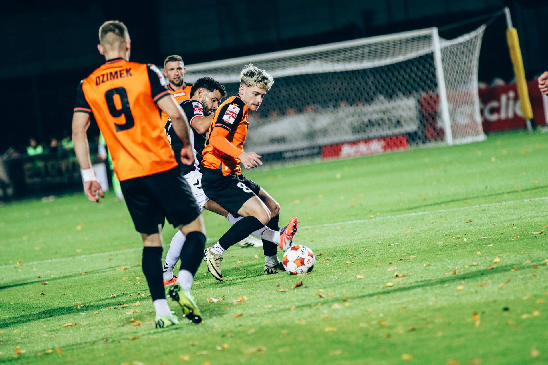 Piorunujący finisz Chrobrego Jeszcze w 85. minucie utrzymywał się bezbramkowy remis, ale Chrobry rozstrzygnął ten mecz na swoją korzyść za sprawą piorunującej końcówki i dwóch zdobytych wtedy bramek. 18-10-2025 09:49 autor: ŁJ Jako pierwszy na bramkę rywali strzelał Chrobry, ale pierwsze poważne zagrożenie stworzyła Polonia. W 21. minucie uderza Dani Vega i tym zmusił Dawida Arndta do interwencji. Głogowianie odpowiedzieli nieznacznie niecelną główką Jakuba Gricia po wrzutce Mateusza Ozimka. Od 37. minuty Czarne Koszule musiały sobie radzić w dziesięciu. Odważnie z bramki wyszedł Adrian Sandach i choć wygrał pojedynek poza „szesnastką”, interweniował ręką. Sędzia z pomocą VAR zdecydował się pokazać mu czerwoną kartkę. Przerwa trwała dość długo – arbiter do 45 minut doliczył później aż 12. Nie wytrąciło to jednak z równowagi nierozgrzanego, wchodzącego na murawę Mateusza Kuchtę. Próbowali go pokonać Szymon Bartlewicz, Kacper Laskowski i Robert Mandrysz, ale przy dwóch sytuacjach Kuchta popisał się świetnymi interwencjami. M.in. dzięki temu oba zespoły schodziły na przerwę przy bezbramkowym wyniku. Po zmianie stron, mimo gry w przewadze, Chrobremu długo nie udawało się przełamać rywali. Aż do 85. minuty utrzymywał się bezbramkowy remis, a Polonia potrafiła jeszcze wywołać zagrożenie – na bramkę Dawida Arndta uderzał m.in. Łukasz Zjawiński, ale golkiper Chrobrego nie dał się zaskoczyć. Głogowianie cały czas atakowali, szukając swoich szans i zostali za to nagrodzeni. W 86. minucie prowadzenie dał ten, który na to zasłużył – obchodzący jubileusz 250. meczu w barwach Chrobrego Robert Mandrysz, któremu dograł Szymon Lewkot. To dodało zespołowi luzu, który przełożył się w 89. minucie na trafienie meldującego się na boisku w drugiej połowie Kacpra Nowakowskiego. Asystował mu inny zaczynający ten pojedynek na ławce młodzieżowiec – Kamil Grzelak. Pomarańczowo-Czarni pokonali więc Polonię Warszawa 2:0. To trzecie zwycięstwo z rzędu Chrobrego. O czwarte zespół powalczy w niedzielę, 26 października, w Tychach (godz. 12.00).