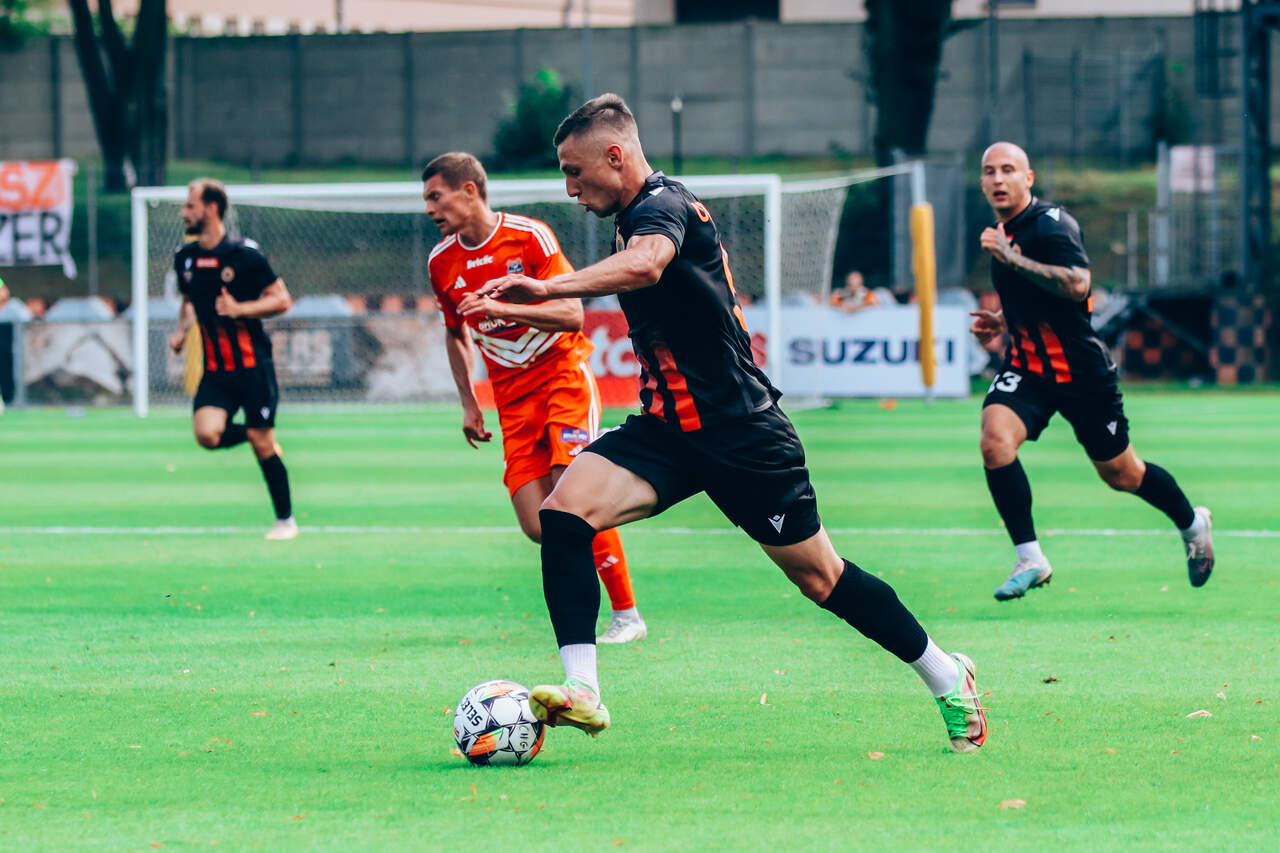 Rywal nie do przejścia Potwierdziło się, że Termalica wybitnie nie leży Chrobremu. Goście z Niecieczy wygrywają na Wita Stwosza 4:0. 27-07-2024 04:14 autor: ŁJ Chrobry od początku był aktywny i miał z czego strzelić. W pierwszej połowie przed świetnymi szansami stawał Patryk Mucha, któremu dogrywano z prawej strony. Próbował z woleja i było naprawdę blisko, zwłaszcza w tym drugim przypadku. O ile w pierwszym piłka przeszła obok słupka, o tyle w kolejnym, po podaniu od Sebastiana Boneckiego, tym razem wybito ją z samej linii bramkowej. Przeszkodą okazał się interweniujący w ten sposób Lukas Spendlhofer. A była dopiero 21 minuta. Chrobry sprawiał więc dobre wrażenie i mogło się wydawać, że w tych trudnych, domowych bojach z Termaliką nastąpi wyczekiwane przełamanie. Nawet pomimo bezbramkowego remisu po pierwszej połowie. W 50 minucie u rywali strzelał Maciej Ambrosiewicz, ale posłał futbolówkę nad poprzeczką. Pięć minut później było 0:1, a Krzysztofa Wróblewskiego po akcji z szybkim przedostaniem się na połowę głogowian pokonał Wojciech Jakubik. Po tym z Chrobrego jakby uchodziło systematycznie coraz więcej powietrza. Choć mógł jeszcze odpowiedzieć, konkretnie - Szymon Bartlewicz, tyle że po raz kolejny goście ratowali sytuację wybiciem zmierzającej do bramki piłki. Dwukrotnie w jednej akcji zrobił to golkiper przyjezdnych Adrian Chovan. Pomarańczowo-Czarnym nie wpadało, za to Termalica mocno się rozpędzała. W 70 minucie sędzia podyktował rzut karny po zagraniu ręką Mavroudisa Bougaidisa, a jedenastkę na gola zamienił Kacper Karasek. W 79 minucie wynik podwyższył Wojciech Jakubik, po raz drugi wpisując się na listę strzelców, tym razem ładnym uderzeniem sprzed szesnastki. Ofensywną wyższość niecieczan w tej części spotkania (bo w drugich 45 minutach mieli jeszcze szanse poza tymi bramkowymi) potwierdził już w doliczonym czasie gry Maciej Ambrosiewicz. Chrobry 0, Termalica 4.