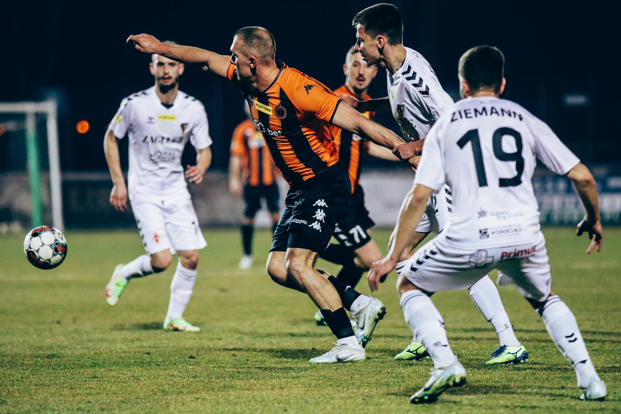 Podział punktów Nie ma zwycięstwa, ale jest wyczekiwane przełamanie. Chrobry zostawia za sobą serię trzech porażek z rzędu i remisuje z Zagłębiem Sosnowiec 0:0. 19-03-2023 08:15 autor: ŁJ Chrobry mecz z Zagłębiem rozpoczął z czwórką młodzieżowców, nie tylko Albertem Zarównym, ale też Dawidem Hancem, Miłoszem Jóźwiakiem i Jakubem Górskim. Ponadto do bramki powrócił Damian Węglarz grając po raz pierwszy od października. Częściowo były to wymuszone zmiany, bo do kontuzjowanych graczy doszedł pauzujący za kartki Artur Bogusz, ale było też widać, że trener próbował coś zrobić, żeby przełamać się po trzech porażkach. Pierwsza część nie obfitowała w sytuacje. Mecz był wyrównany, choć jeśli na kogoś nieznacznie wskazać, to może trochę na Zagłębie, które miało groźniejsze uderzenia. W 13 minucie piłkę po strzale Adriana Trocia odbił Damian Węglarz. Niebezpieczniej mogło być w 45 minucie. Goście mieli wtedy rzut wolny na linii pole karnego, lecz strzał Sebastiana Boneckiego, który przecież potrafi przymierzyć z dalszych odległości, co udowadniał też jako zawodnik Chrobrego, nie był celny. To byłoby na tyle. Oddającego przebieg rywalizacji 0:0 po pierwszych 45 minutach i wszystko musiało rozstrzygnąć się w drugich. Wydawało się, że kluczowy moment nastąpił w 58 minucie. To wtedy sędzia po analizie VAR pokazał czerwoną kartkę. Za uderzenie łokciem Sebastiana Stebleckiego w walce o piłkę otrzymał ją Oleksii Bykov. Zagłębie grało więc w dziesięciu, ale mimo tego to ono zaczęła wyraźniej przeważać. W 67 minucie niecelny strzał oddał Szymon Sobczak, a w 76 minucie Dean Guezen, choć trzeba przyznać, że to było groźne i mogło coś z tego być. Gorąco było też w doliczonym czasie gry, kiedy Szymon Sobczak wychodził na dobrą pozycję i przegrał rywalizację z Albertem Zarównym. Przy tym upadł, na szczęście sędziowie pozostali niewzruszeni na protesty sosnowiczan. Chrobry po tej czerwonej kartce nie ruszył odważniej do przodu i ma punkt. Trzeba go docenić tym bardziej, że przełamuje serię trzech porażek z rzędu. Mecz z Zagłębiem był ostatnim w marcu. W przyszłym tygodniu liga nie gra w związku z przerwą reprezentacyjną, a kolejne mecze o punkty za dwa tygodnie. W sobotę 1 kwietnia Chrobry zagra na wyjeździe z Wisłą Kraków, więc ma kilkanaście dni na odpowiednie przygotowanie się do starcia z niepokonaną w tym roku drużyną.