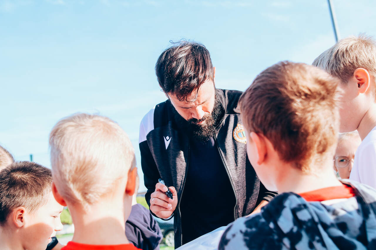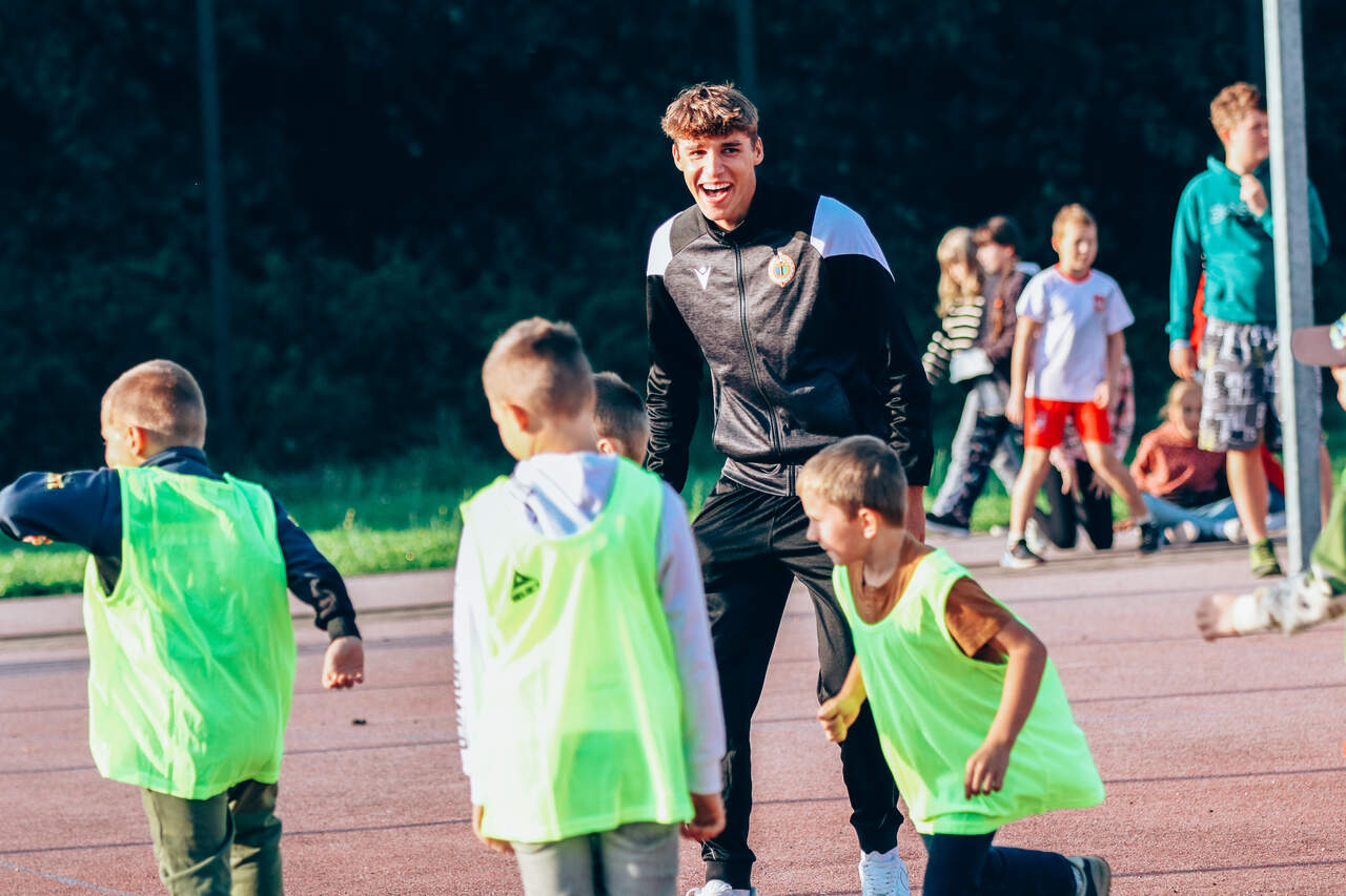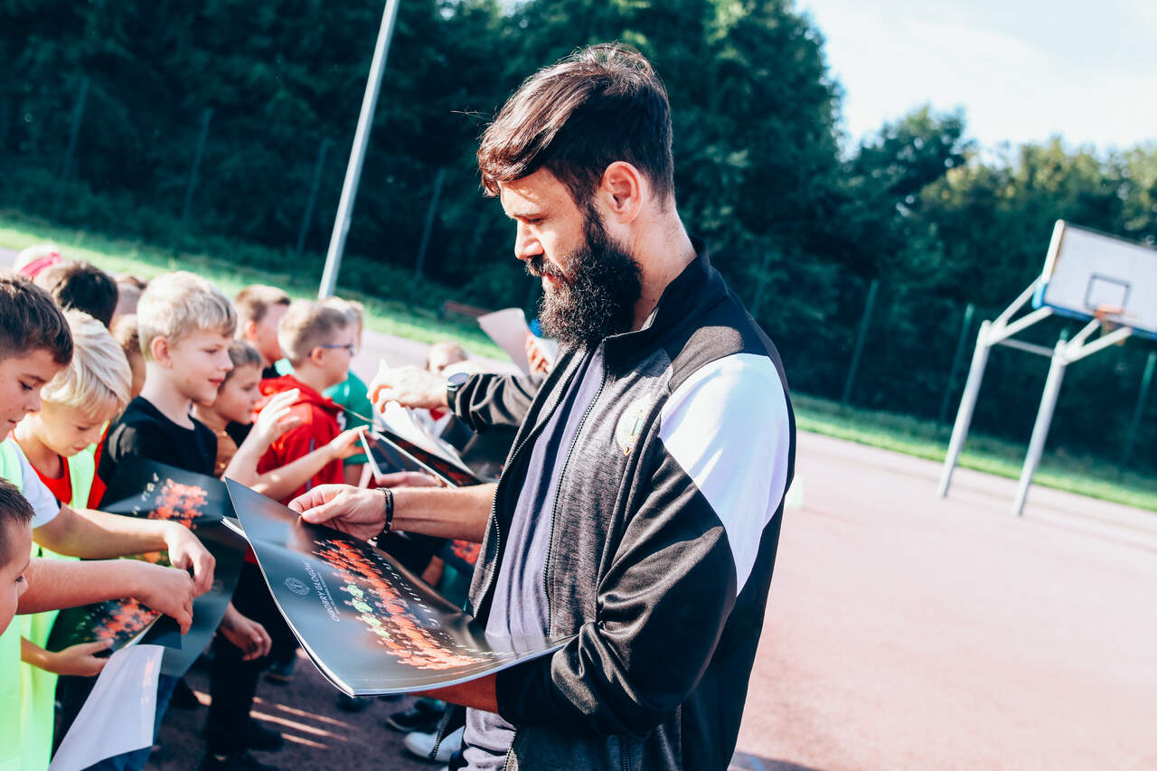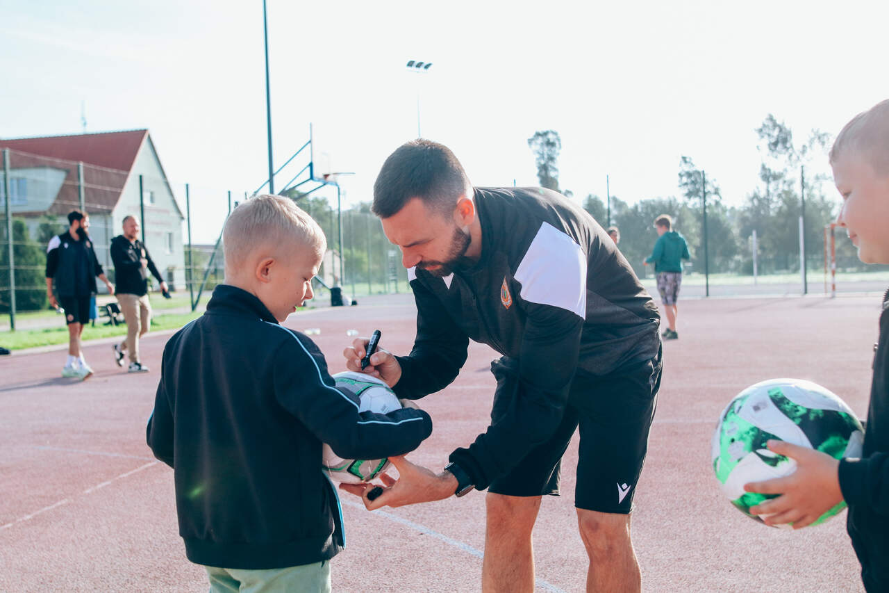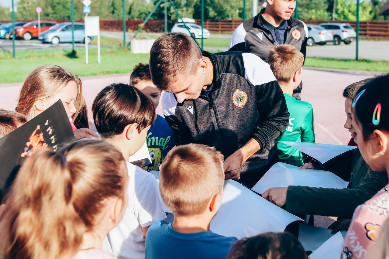 Chrobry z wizytą w Buczynie Chrobry Głogów z gościnną wizytą u najmłodszych klas Szkoły Podstawowej im. Marii Konopnickiej w Buczynie. 24-09-2024 03:03 autor: ŁJ W oddalonej od Głogowa o ponad 20 kilometrów miejscowości pojawiła się silna delegacja pierwszej drużyny, bo z Mavroudisem Bougaidisem, Mikołajem Lebedyńskim, Natanem Malczukiem, Szymonem Bartlewiczem i Marcelem Gawłowskim. Nasi zawodnicy zostali wsparci klubową maskotką i trenerem Akademii Piłki Nożnej Pawłem Marszałkiem, który najpierw poprowadził rozgrzewkę, a następnie sędziował pokazowy mecz reprezentacji szkoły z Chrobrym. Bardzo miłe spotkanie zostało zakończone rozdaniem plakatów, zdjęciami i autografami. Dziękujemy za przyjęcie i do zobaczenia!