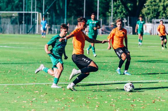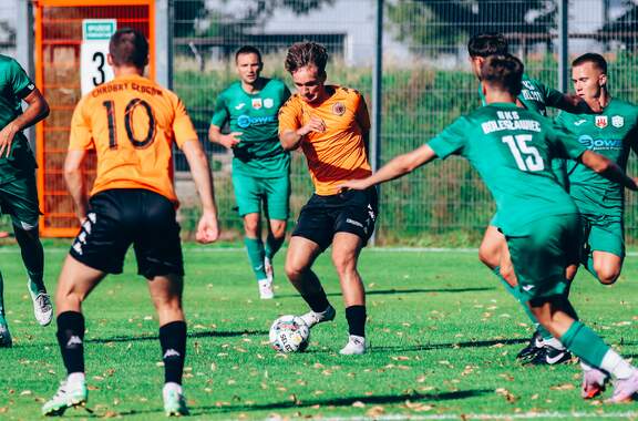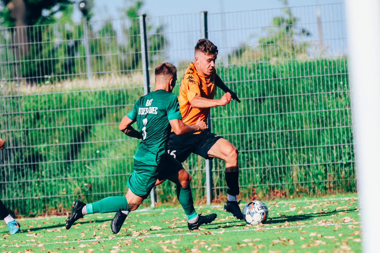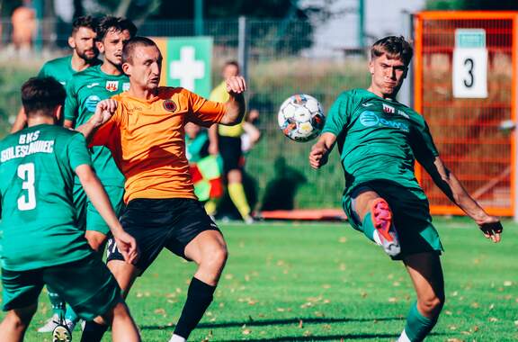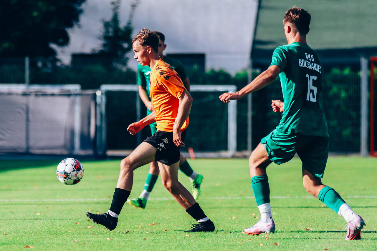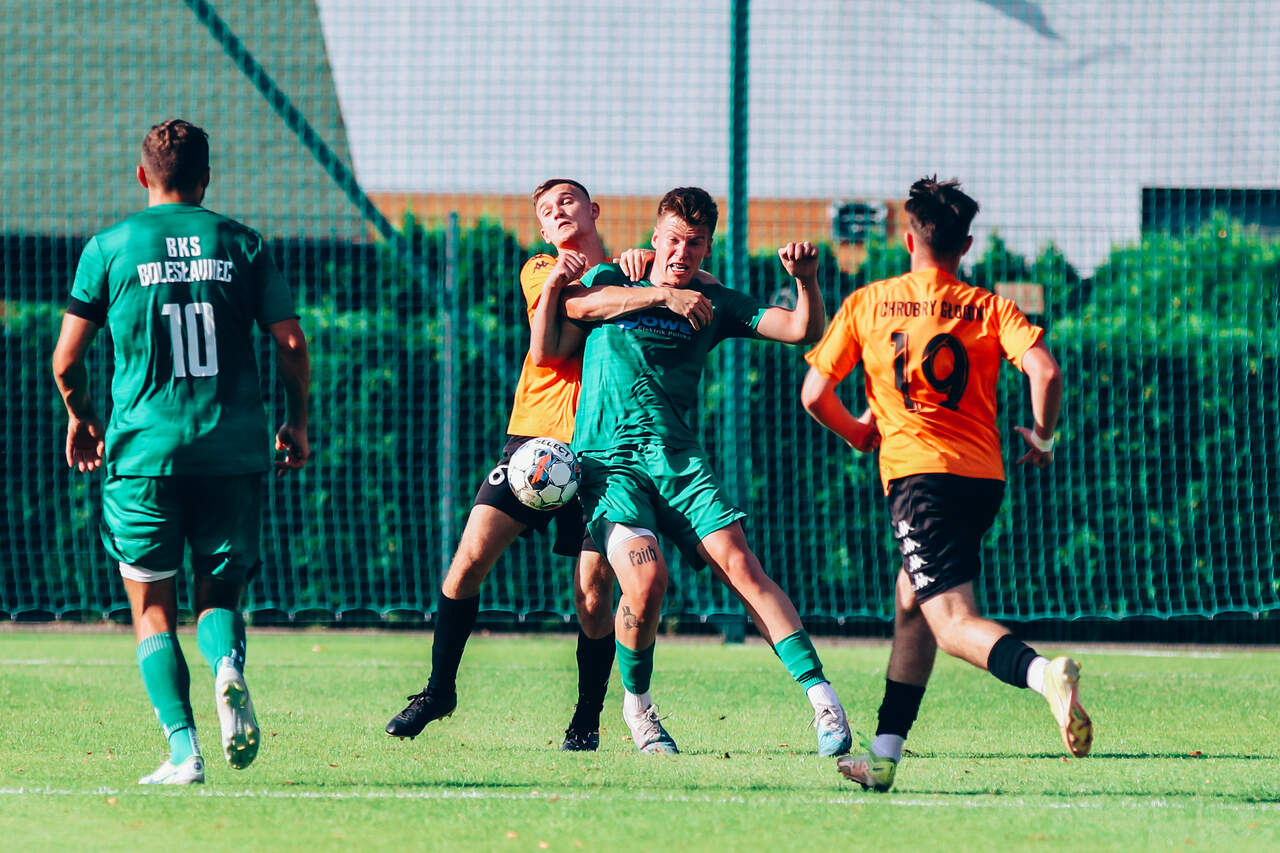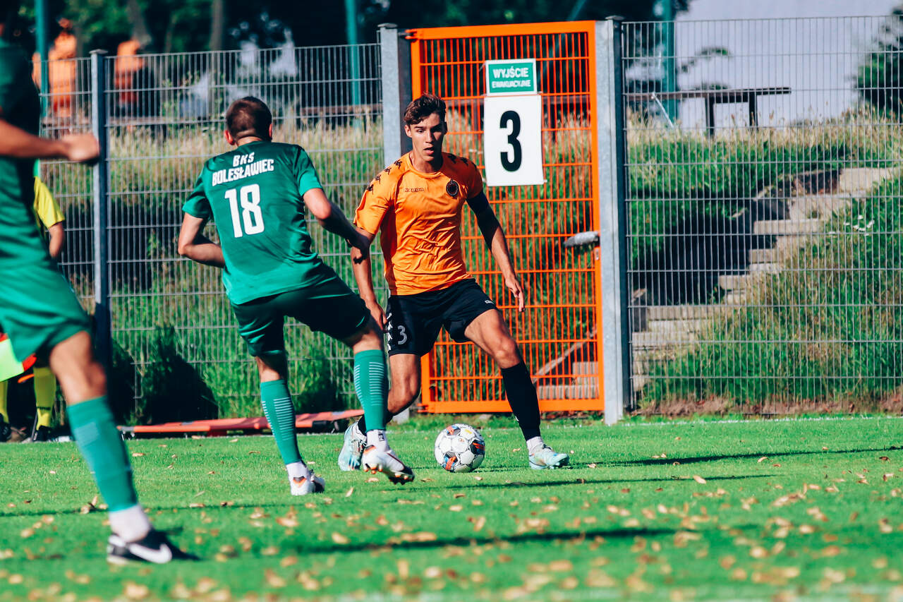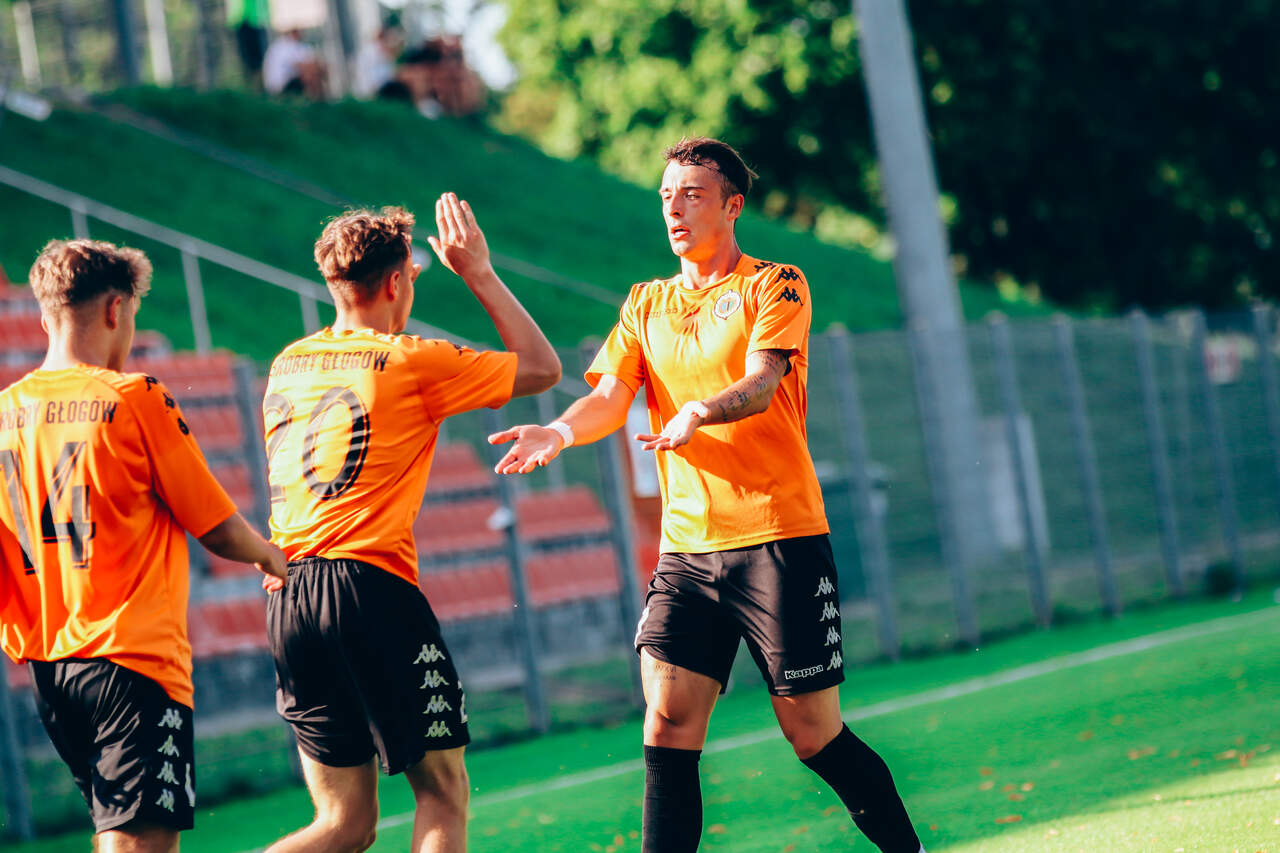 Od 0:1 do 2:1. Chrobry II pokonuje BKS Bolesławiec W 2 kolejce Koleje Dolnośląskie 4 Ligi drugi Chrobry z pierwszym kompletem punktów. 15-08-2023 06:55 autor: ŁJ Mimo dobrego, ofensywnego początku prowadzenie objęli rywale. W 12 minucie wstrzelił się Oliwer Janczak, ale Chrobry zdołał sprawnie odpowiedzieć i już w 17 minucie Ziemowit Witczak doprowadził do wyrównania. Od tego momentu napór głogowian nie ustawał, choć trzeba było wykazać się cierpliwością. Akcję na wagę zwycięstwa przeprowadzono w 77 minucie. Na czystą pozycję wyszedł przebywający na boisku od 46 minuty Olaf Zygmunt i pewnie umieścił piłkę w bramce. W końcówce Chrobry dla odmiany skupił się na obronie korzystnego wyniku. Kilka razy zrobiło się gorąco w polu karnym, ale koniec końców trzy punkty zasłużenie pozostały w Głogowie. W 3 kolejce w sobotę 19 sierpnia Chrobrego II czeka wyjazd do Żmigrodu na mecz z Piastem. CHROBRY II GŁOGÓW - BKS BOLESŁAWIEC 2:1 (1:1) 0:1 Janczak 12 1:1 Witczak 17 2:1 Zygmunt 77 CHROBRY II: Turkiewicz - Malczuk, Jandziak, Maćkowiak, Pieczarka (90 Janiszewski), Wojciechowski (77 Bartecki), Antkowiak (46 Zygmunt), Tworzydło (83 Fryzowicz), Hanc, Jurgo (55 Antosik), Witczak (90 Wysoczański). ŻÓŁTE KARTKI (CHROBRY II): Zygmunt, Malczuk.