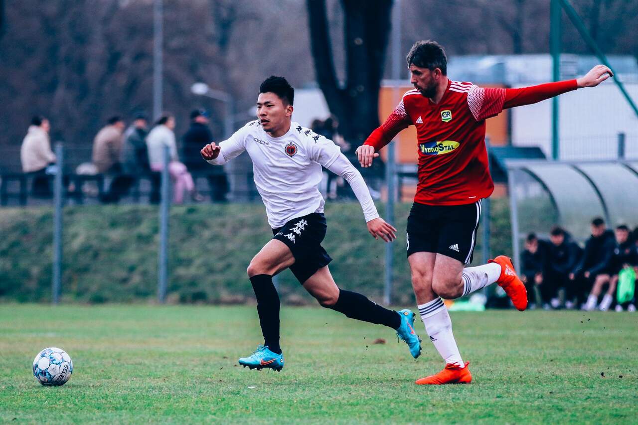 TRZY PUNKTY CHROBREGO II Chrobry II po golu Miłosza Jóźwiaka wygrał z Granitem Roztoka 1:0 i obronił pozycję lidera 4 Ligi. 26-03-2022 04:45 autor: ŁJ Chrobry II po golu Miłosza Jóźwiaka wygrał z Granitem Roztoka 1:0 i obronił pozycję lidera 4 Ligi. Chrobry już w pierwszej akcji kończonej przez Miłosza Jóźwiaka stworzył duże zagrożenie pod bramką rywala. Później jeszcze golkiper gości dobrze interweniował przy główce Miłosza Jandziaka, ale sumując tę część gry, w sytuacjach było po równo. Dwa bardzo niebezpieczne ataki przeprowadzili też przyjezdni, a po jednym z nich świetnie w głogowskiej bramce spisał się Bartek Szafer. W pierwszej połowie był więc remis i jeśli chodzi o sytuacje, i stan bramkowy. Po zmianie stron głogowianie przycisnęli. Najpierw bardzo dobrej okazji po podaniu Gracjana Antkowiaka nie wykorzystał Miłosz Jóźwiak. Nie trafił czysto w piłkę, ale na tym nie poprzestał i w 62 minucie po faulu na nim sędzia podyktował rzut karny. Sam poszkodowany podszedł do piłki i strzelił na 1:0, potwierdzając bardzo dobrą w tej rundzie dyspozycję, bo to jego piąte trafienie w trzecim spotkaniu rundy wiosennej. Korzystny wynik utrzymał się do końca i Chrobry pozostał z kompletem punktów oraz pierwszym miejscem w tabeli 4 Ligi. CHROBRY II GŁOGÓW - GRANIT ROZTOKA 1:0 (0:0) 1:0 Jóźwiak 62 (k) CHROBRY II: Szafer - Malczuk, Wawrzyniak, Jandziak, Inoue, Zygmunt (46 Antkowiak), Marciniak (90 Draczyński), Galas (46 Bartlewicz), Krawiec, Fryzowicz (75 Bartecki), Jóźwiak (85 Jurgo). GRANIT: Kretkowski - Jędryka, Bałut (75 Mieliwodzki), Grosiak, Donaj, Smutek (87 Tutka), Strzyżewski (83 Grzęda), Kulasa, Orda, Wirchniański, Pospiszyl. ŻÓŁTE KARTKI: Szafer, Bartecki, Antkowiak - Strzyżewski. ZOBACZ TABELĘ 4 LIGI