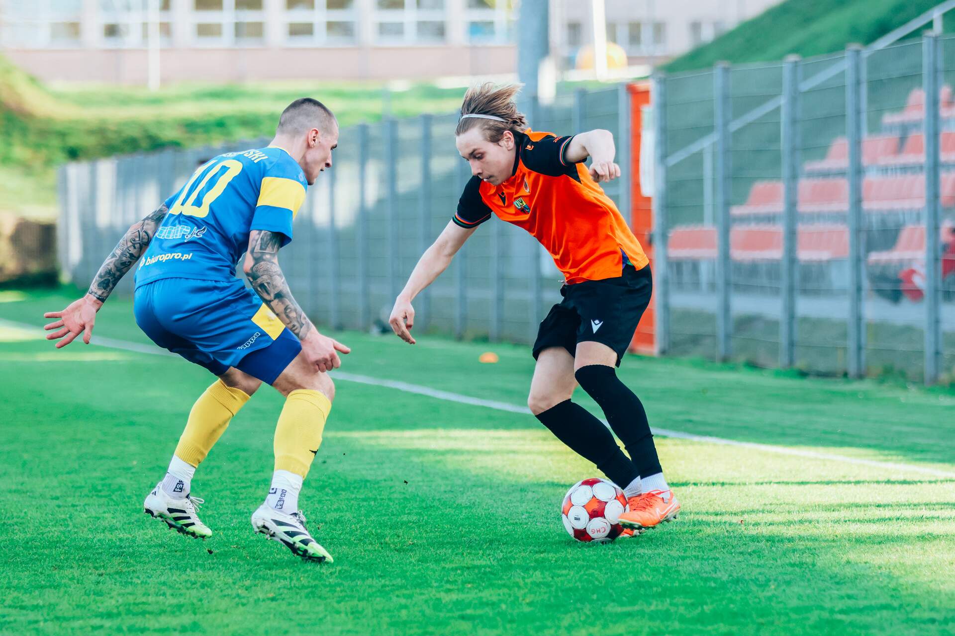 ChG II: punkt po meczu pełnym emocji Zwycięstwo wydarte w ostatnich sekundach. W 26. kolejce Koleje Dolnośląskie 4 Ligi Chrobry II tracąc gola w doliczonym czasie gry z rzutu karnego remisuje z Lechią Dzierżoniów 2:2. 15-04-2026 06:33 autor: ŁJ Pomarańczowo-Czarni już w 13. minucie wyszli na prowadzenie, a składną akcję zespołu wykończył Tymofii Simkov. W 21. minucie było już 2:0 – podstawą tej bramki było rozegranie rzutu rożnego, który sprytną zmianą toru lotu piłki zamknął Damian Rosa. Głogowianie mieli nawet szansę na kolejne trafienie, ale sam mecz był żywy z obu stron. Lechia również stworzyła swoje okazje, jednak duże zaangażowanie MZKS-u oraz dobre interwencje Marcela Gawłowskiego w bramce pozwoliły zachować czyste konto. Niestety, ostatni kwadrans całkowicie zmienił nastroje. W 78. minucie kontaktowego gola dla Lechii zdobył Szymon Tragarz. Goście przycisnęli i zrobiło się bardzo nerwowo. Po jednym z ataków, już w doliczonym czasie gry, doszło do zamieszania w polu karnym, a sędzia podjął budzącą spore dyskusje decyzję o podyktowaniu rzutu karnego. Po jego wykonaniu na 2:2 trafił Oskar Trzepacz. Na tym spotkanie dobiegło końca – bardzo emocjonujące ze względu na przebieg, ale również na kartki. W końcówce oba zespoły grały w dziesięciu (po stronie Chrobrego czerwoną otrzymał Fabian Wojtal). Chrobry było blisko, aby odbić sobie ostatnią porażkę z innym zespołem z czołówki – Piastem Żmigród, gdzie o wyniku również decydował gol w doliczonym czasie gry. Trzeba zadowolić się punktem i myśleć o kolejnym występie, bo na tym seria najbardziej wymagających meczów się nie kończy. W sobotę o godz. 16:00 głogowianie zmierzą się na wyjeździe z Orłem Ząbkowice Śląskie. CHROBRY II GŁOGÓW - LECHIA DZIERŻONIÓW 2:2 (2:0) 1:0 Simkov 13 2:0 Rosa 21 2:1 Tragarz 78 2:2 Trzepacz 90 (k) CHROBRY II: Gawłowski - Łaszyński, Francus, Cichy (76 Wojtal), Manijak (88 Żmudziński), Maniewski, Rosa, Bartecki, Kozłowski (72 Szulc), Malczuk, Simkov (86 Janik). ŻÓŁTE KARTKI (CHROBRY II): Malczuk, Łaszyński. CZERWONE KARTKI: Wojtal 90 (Chrobry) - Wasilewski 90 (Lechia - za drugą żółtą).