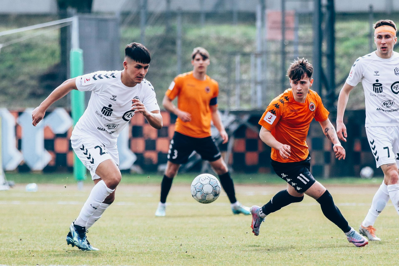 Chrobry II Głogów - Lechia Zielona Góra 0:2 Chrobry II przegrał z Lechią Zielona Góra 0:2 w 20 kolejce 3 Ligi. Obie bramki padły po przerwie. 19-03-2023 01:00 autor: ŁJ W pierwszej połowie Chrobry miał dwie świetne okazje na objęcie prowadzenia, ale wynik ani drgnął. Najpierw blisko szczęścia był Gracjan Antkowiak, a już w 45 minucie Adrian Marciniak, po którego strzale większość pewnie widziała piłkę w bramce. Ta przeszła tuż obok. W międzyczasie odpowiedzieli goście – Mykyta Loboda trafił jednak w boczną siatkę. Po zmianie stron więcej z przodu mieli zielonogórzanie. Początkowo stworzyli zagrożenie po wrzutkach z bocznych sektorów boiska i tym dali sygnał, że powalczą o komplet. W 58 minucie wywalczyli rzut karny. W szesnastce faulował Miłosz Jandziak, a z jedenastego metra Bartka Szafera pokonał Mateusz Surożyński. Chrobry próbował odpowiedzieć, ale już nie miał tak dobrych szans, jak przy stanie remisowym. Ataki wychodziły za to gościom, którym dodatkowo dopisywało szczęście. W 77 minucie po wrzutce z lewej strony niefortunnie główkował Miłosz Jandziak i po jego pechowym trafieniu zrobiło się 0:2. Taki rezultat utrzymał się do końca. W następnym tygodniu Chrobrego czeka wyprawa do lidera. W tej kolejce została nim Polonia Bytom, z którą głogowianie zagrają w niedzielę 26 marca o godz. 16.00. CHROBRY II GŁOGÓW – LECHIA ZIELONA GÓRA 0:2 (0:0) 0:1 Surożyński 58 (k) 0:2 Jandziak 77 (sam.) CHROBRY II: Szafer – Iwanowicz (79 Fryzowicz), Malczuk, Wawrzyniak (20 Maćkowiak), Jandziak, Zygmunt (60 Matysiak), Marciniak, Antkowiak, Inoue (60 Pieczarka), Wysiński, Jaszczyk (46 Cieślicki). LECHIA: Fabisiak – Lechowicz, Kurowski, Zając (46 Athenstadt), Loboda, Shved, Surożyński, Mycan (81 Staśkiewicz), Zientarski, Kołodenny (67 Mwinyi), Sitko. ŻÓŁTE KARTKI: Jandziak, Iwanowicz – Lechowicz, Loboda, Kołodenny. ZOBACZ TABELĘ 3 LIGI