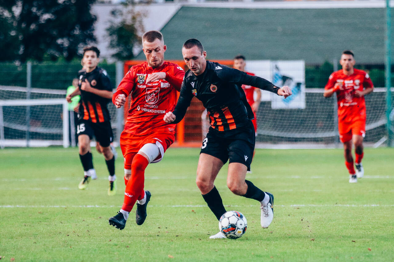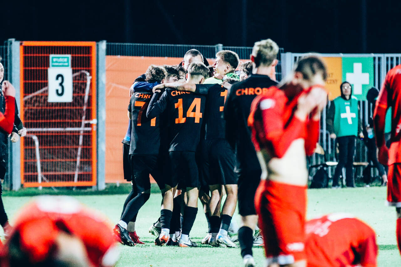 ChG II: Hat-trick Mateusza Machaja i wolny w 90 minucie na wagę punktu! Co to był za mecz! W 12 kolejce Kolei Dolnośląskich 4 Ligi Chrobry II przegrywał z Piastem Żmigród 0:2 i 1:3, a i tak zremisował 3:3. 12-10-2024 07:03 autor: ŁJ ⏱️ 90 minuta, Twój zespół przegrywa 2:3, a Ty masz rzut wolny. Mati Machaj w Chrobrym II wciąż ma to COŚ! 💥 pic.twitter.com/EvV81Rc1qL— Chrobry Głogów (@ChrobryGlogowSA) October 12, 2024 Pierwsza połowa należała do rywali, którzy dwukrotnie pokonali Marcela Gawłowskiego. 0:2 było już w 19 minucie, choć Chrobry miał z czego odpowiedzieć. Najbardziej szkoda strzału Bartosza Biela, po którym piłka odbiła się od słupka. Po zmianie stron działo się bardzo dużo, a wydarzeniami z tej części gry można obdzielić kilka spotkań. W pierwszych minutach sporo zagrożenia było ze strony gości, ale kontaktowego gola w 60 minucie zdobył Chrobry. Na listę strzelców wpisał się wtedy Mateusz Machaj, który dosłownie po chwili miał szansę na 2:2. Remisu jeszcze wtedy nie było, za to po kolejnych kilku minutach było 1:3, a mogło być nawet 1:4. W 68 minucie trzeciego gola dla Piasta zdobył Vladyslav Shvets, a w 73 minucie faulujący w szesnastce Marcel Gawłowski obronił podyktowany rzut karny, więc głogowianie mimo wszystko pozostawali w grze. W końcówce prawdziwy popis dał Mateusz Machaj. W 89 minucie trafił po raz drugi, a po tym Pomarańczowo-Czarni mocno nacierali. Jeden z ataków przyniósł im rzut wolny. Był już doliczony czas gry, jednak Mateusz Machaj wytrzymał tę presję i pięknym strzałem nie dał szans bramkarzowi Piasta i swojej drużynie wartościowy, bo zdobyty po tak emocjonującym pojedynku punkt. CHROBRY II GŁOGÓW - PIAST ŻMIGRÓD 3:3 (0:2) 0:1 Ograbek 11 0:2 Kotyla 19 1:2 Machaj 60 1:3 Shvets 68 2:3 Machaj 89 3:3 Machaj 90 CHROBRY II: Gawłowski - Marcinkowski, Diduszko (86 Francus), Skowronek (58 Bartecki), Wojtal (74 Witczak), Janik, Grzelak, Biel (74 Antkowiak), Rosa (58 Buszewski), Wojciechowski (74 Marciniak), Machaj. ŻÓŁTE KARTKI (CHROBRY II): Wojtal, Machaj, Gawłowski, Francus, Janik.