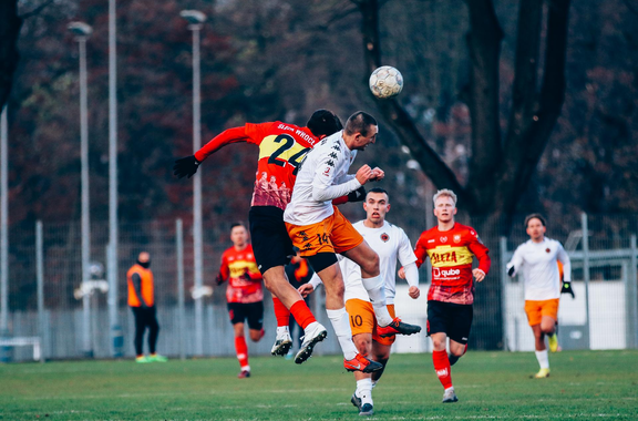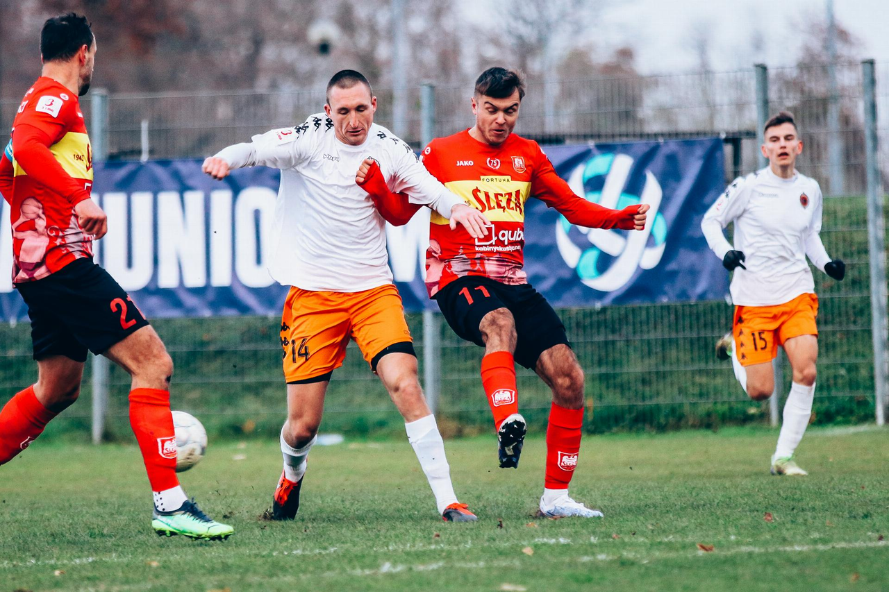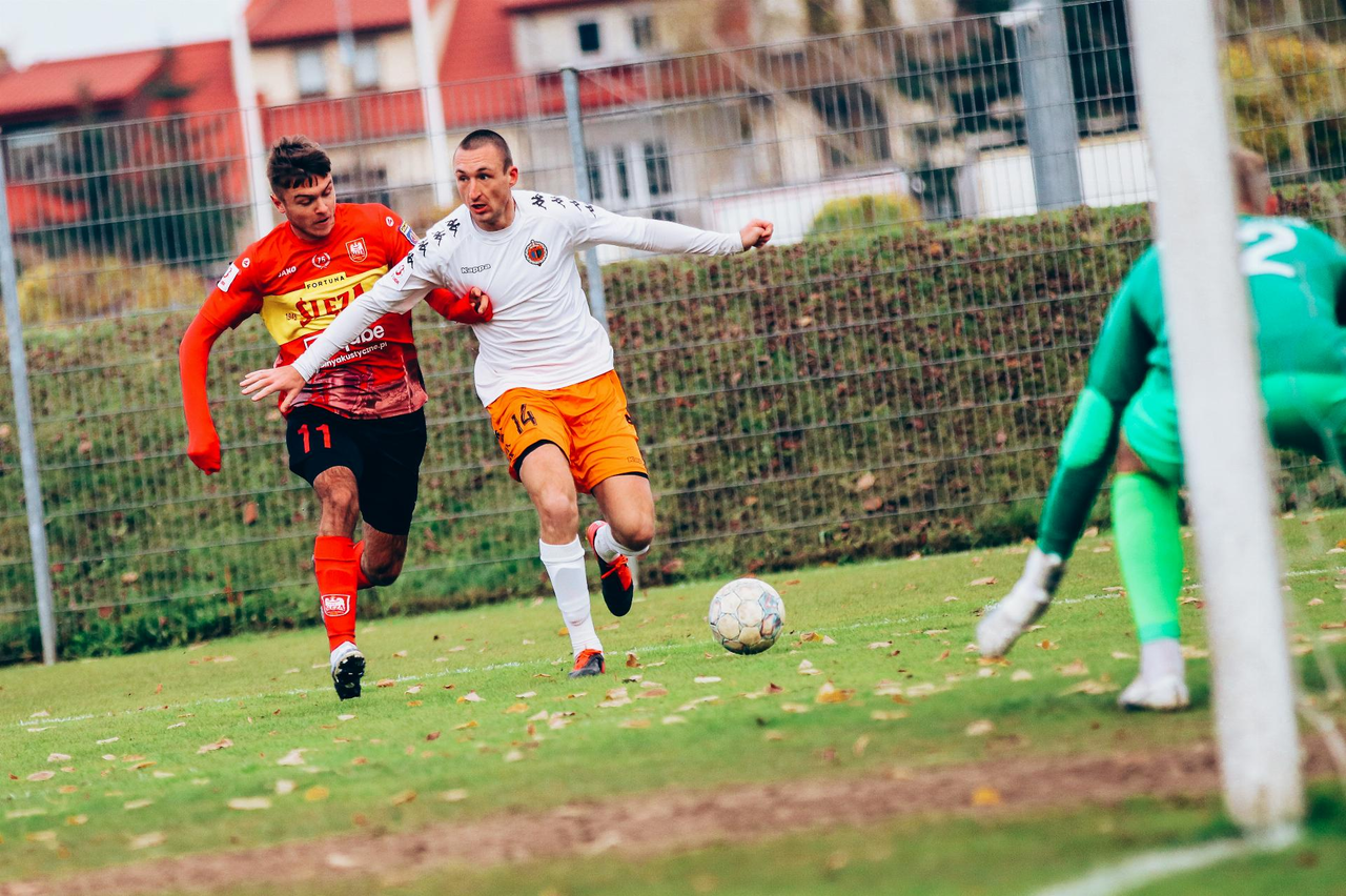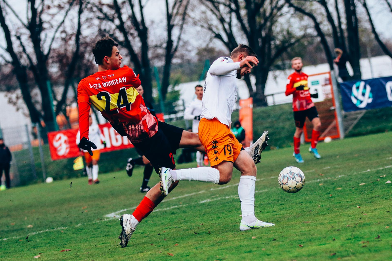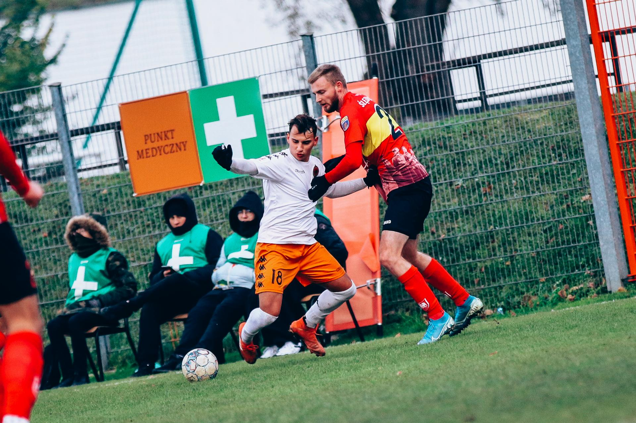 3 Liga: na finiszu porażka, ale i optymizm Chrobry – Ślęza 1:2 w ostatniej jesiennej kolejce. Ciąg dalszy w przyszłym roku. 19-11-2022 04:15 autor: ŁJ Chrobry II kończy zmagania w rundzie jesiennej 3 Ligi i choć w ostatnim występie musiał uznać wyższość rywali, to był dla niego dobry okres. Głogowianie do rundy wiosennej debiutanckiego sezonu będą na bezpiecznej 14 pozycji. Pierwsza połowa meczu ze Ślęzą była widowiskowa. Już po 20 minutach wrocławianie prowadzili 2:0. W 16 minucie Bartka Szafera z rzutu karnego pokonał Maciej Tomaszewski, choć głogowski bramkarz był blisko obrony. Cztery minuty później prowadzenie Ślęzy podwyższył „Vinicius Matheus”. Szybko więc sytuacja Chrobrego zrobiła się trudna, ale wtedy sprawy w swoje ręce wziął Tomasz Wojciechowski, który sam w polu karnym minął rywali i mocnym uderzeniem zdobył kontaktowego gola. Niewiele zabrakło, aby jeszcze w tej części zrobiło się 2:2, jednak mimo świetnych okazji Miłosza Jóźwiaka czy Adriana Marciniaka nie udało się pójść w ten sposób za ciosem. Szkoda zwłaszcza szansy Adriana Marciniaka, bo po jego strzale piłka odbijała się od poprzeczki i słupka. Po zmianie stron głogowianie przejęli inicjatywę i wyraźnie szukali swoich szans. Ciężko jednak było o rozmontowanie defensywy Ślęzy, w której nie zabrakło dużego doświadczenia w osobie Adama Samca. Tak naprawdę mimo dużo większej przewagi Pomarańczowo-Czarni mieli mniej okazji, niż w pierwszej połowie. Jakub Cieślicki przymierzył niecelnie, a w doliczonym czasie wychodzący sam na sam Michał Fryzowicz nie zdołał opanować piłki. Skończyło się więc na wygranej Ślęzy. Chrobry przerwę zimową spędzi na 14 pozycji, co – biorąc pod uwagę pierwszy na tym poziomie sezon – jest dobrym osiągnięciem. Głogowianie pomimo trudnego startu i czterech porażek w czterech pierwszych kolejkach z każdym kolejnym miesiącem prezentowali się coraz lepiej, opuścili strefę spadkową, potrafili urywać punkty nawet czołówce, więc przed nimi optymistyczne przygotowania do dalszej części sezonu. CHROBRY II GŁOGÓW – ŚLĘZA WROCŁAW 1:2 (1:2) 0:1 Tomaszewski 16 (k) 0:2 Vinicius Matheus 20 1:2 Wojciechowski 22 CHROBRY II: Szafer – Iwanowicz (46 Fryzowicz), Malczuk, Wawrzyniak, Jandziak, Pieczarka, Marciniak (84 Matysiak), Wojciechowski, Bartlewicz (63 Zygmunt), Cieślicki, Jóźwiak (84 Inoue). ŚLĘZA: Gasztyk – Stempin, Marcjan (82 Wroński), Wawrzyniak, Olek, Maciołek, Vinicius Matheus (82 Krukowski), Samiec, Tomaszewski, Fediuk, Kluzek. ŻÓŁTE KARTKI: Wawrzyniak, Jandziak, Krawiec – Tomaszewski, Maciołek, Krukowski. ZOBACZ TABELĘ 3 LIGI