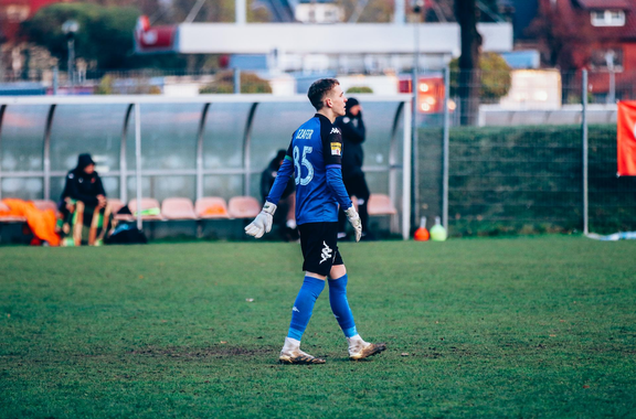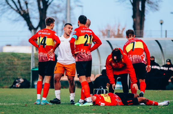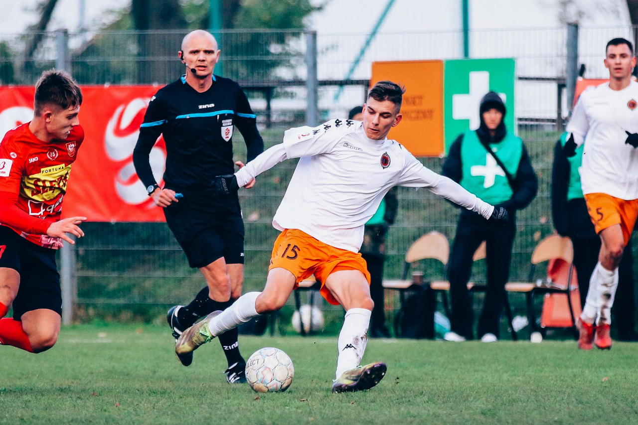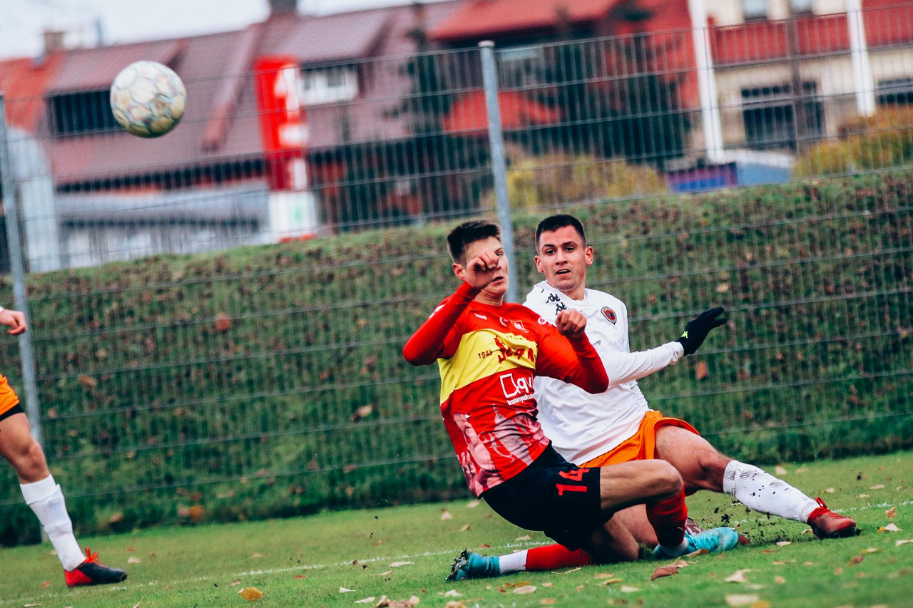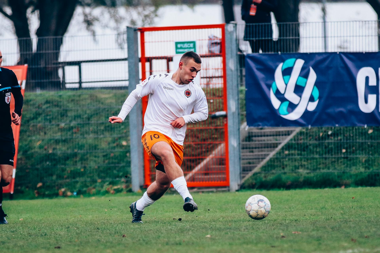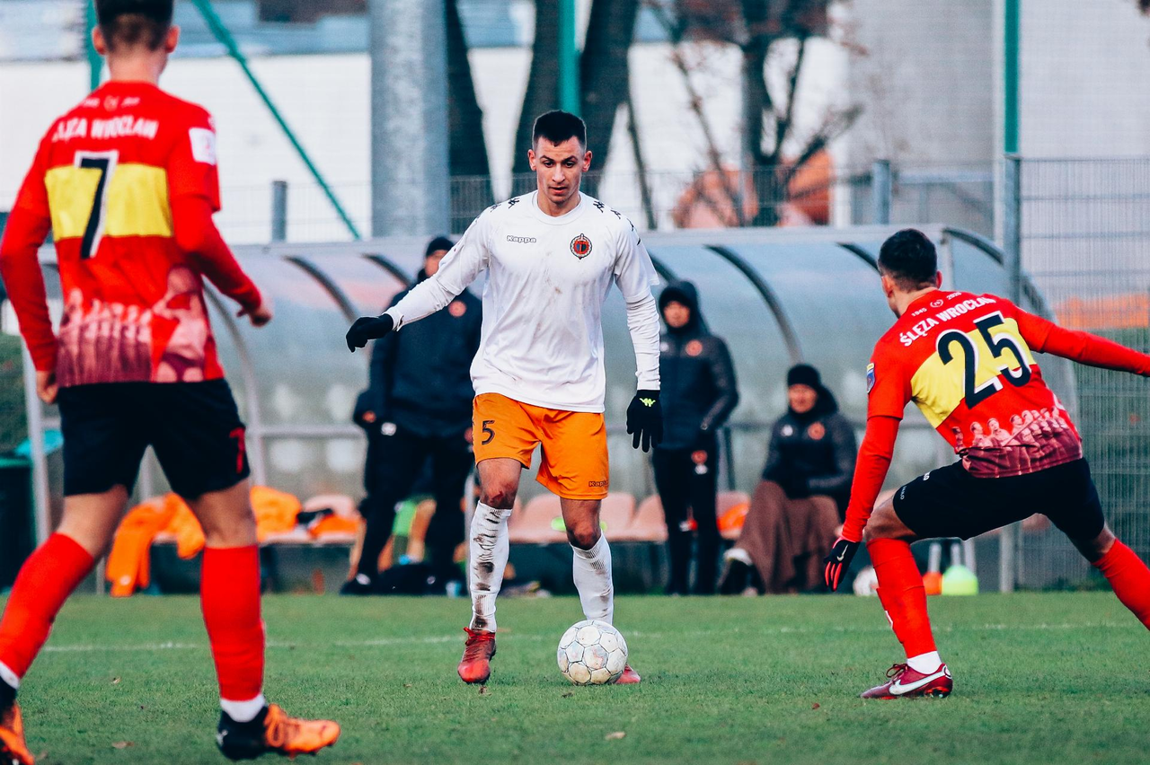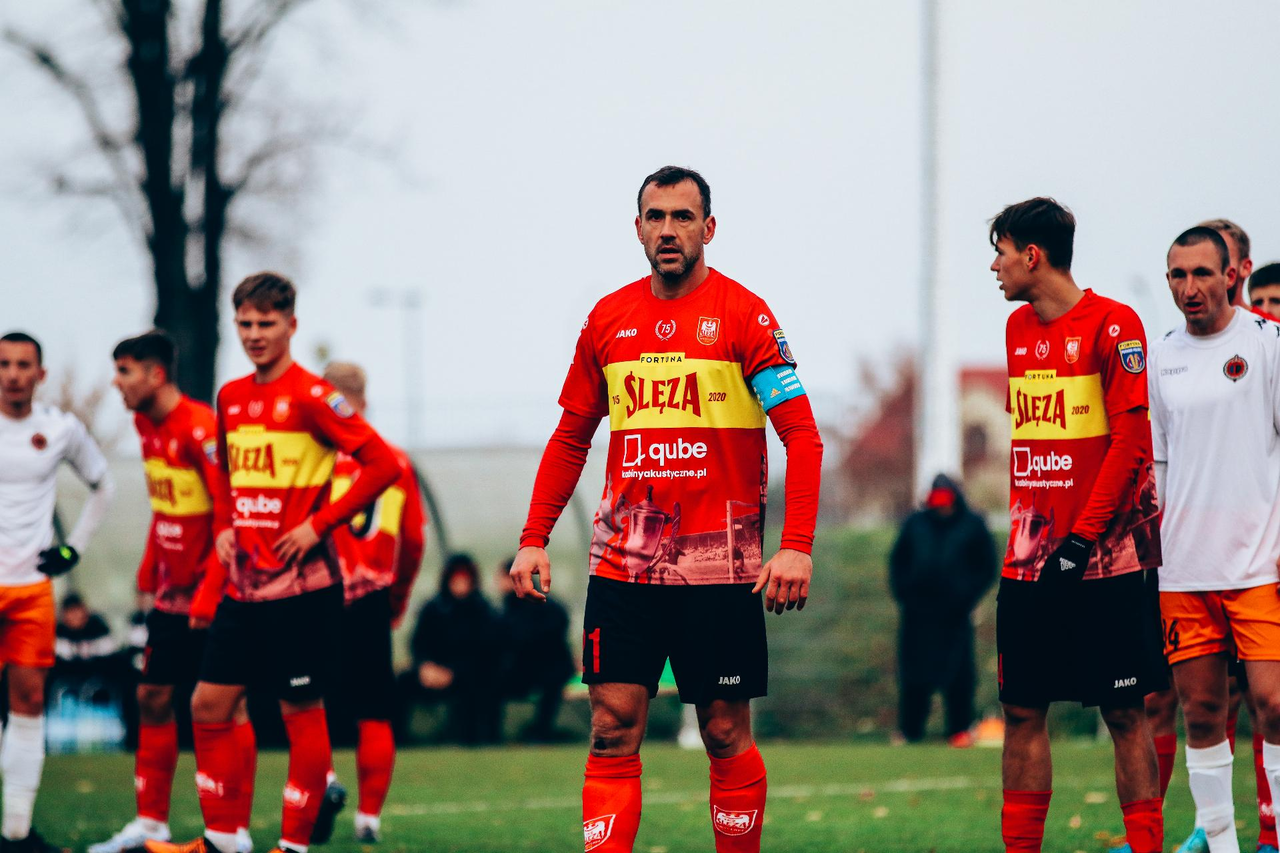 3 Liga: na finiszu porażka, ale i optymizm Chrobry – Ślęza 1:2 w ostatniej jesiennej kolejce. Ciąg dalszy w przyszłym roku. 19-11-2022 04:15 autor: ŁJ Chrobry II kończy zmagania w rundzie jesiennej 3 Ligi i choć w ostatnim występie musiał uznać wyższość rywali, to był dla niego dobry okres. Głogowianie do rundy wiosennej debiutanckiego sezonu będą na bezpiecznej 14 pozycji. Pierwsza połowa meczu ze Ślęzą była widowiskowa. Już po 20 minutach wrocławianie prowadzili 2:0. W 16 minucie Bartka Szafera z rzutu karnego pokonał Maciej Tomaszewski, choć głogowski bramkarz był blisko obrony. Cztery minuty później prowadzenie Ślęzy podwyższył „Vinicius Matheus”. Szybko więc sytuacja Chrobrego zrobiła się trudna, ale wtedy sprawy w swoje ręce wziął Tomasz Wojciechowski, który sam w polu karnym minął rywali i mocnym uderzeniem zdobył kontaktowego gola. Niewiele zabrakło, aby jeszcze w tej części zrobiło się 2:2, jednak mimo świetnych okazji Miłosza Jóźwiaka czy Adriana Marciniaka nie udało się pójść w ten sposób za ciosem. Szkoda zwłaszcza szansy Adriana Marciniaka, bo po jego strzale piłka odbijała się od poprzeczki i słupka. Po zmianie stron głogowianie przejęli inicjatywę i wyraźnie szukali swoich szans. Ciężko jednak było o rozmontowanie defensywy Ślęzy, w której nie zabrakło dużego doświadczenia w osobie Adama Samca. Tak naprawdę mimo dużo większej przewagi Pomarańczowo-Czarni mieli mniej okazji, niż w pierwszej połowie. Jakub Cieślicki przymierzył niecelnie, a w doliczonym czasie wychodzący sam na sam Michał Fryzowicz nie zdołał opanować piłki. Skończyło się więc na wygranej Ślęzy. Chrobry przerwę zimową spędzi na 14 pozycji, co – biorąc pod uwagę pierwszy na tym poziomie sezon – jest dobrym osiągnięciem. Głogowianie pomimo trudnego startu i czterech porażek w czterech pierwszych kolejkach z każdym kolejnym miesiącem prezentowali się coraz lepiej, opuścili strefę spadkową, potrafili urywać punkty nawet czołówce, więc przed nimi optymistyczne przygotowania do dalszej części sezonu. CHROBRY II GŁOGÓW – ŚLĘZA WROCŁAW 1:2 (1:2) 0:1 Tomaszewski 16 (k) 0:2 Vinicius Matheus 20 1:2 Wojciechowski 22 CHROBRY II: Szafer – Iwanowicz (46 Fryzowicz), Malczuk, Wawrzyniak, Jandziak, Pieczarka, Marciniak (84 Matysiak), Wojciechowski, Bartlewicz (63 Zygmunt), Cieślicki, Jóźwiak (84 Inoue). ŚLĘZA: Gasztyk – Stempin, Marcjan (82 Wroński), Wawrzyniak, Olek, Maciołek, Vinicius Matheus (82 Krukowski), Samiec, Tomaszewski, Fediuk, Kluzek. ŻÓŁTE KARTKI: Wawrzyniak, Jandziak, Krawiec – Tomaszewski, Maciołek, Krukowski. ZOBACZ TABELĘ 3 LIGI