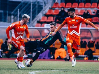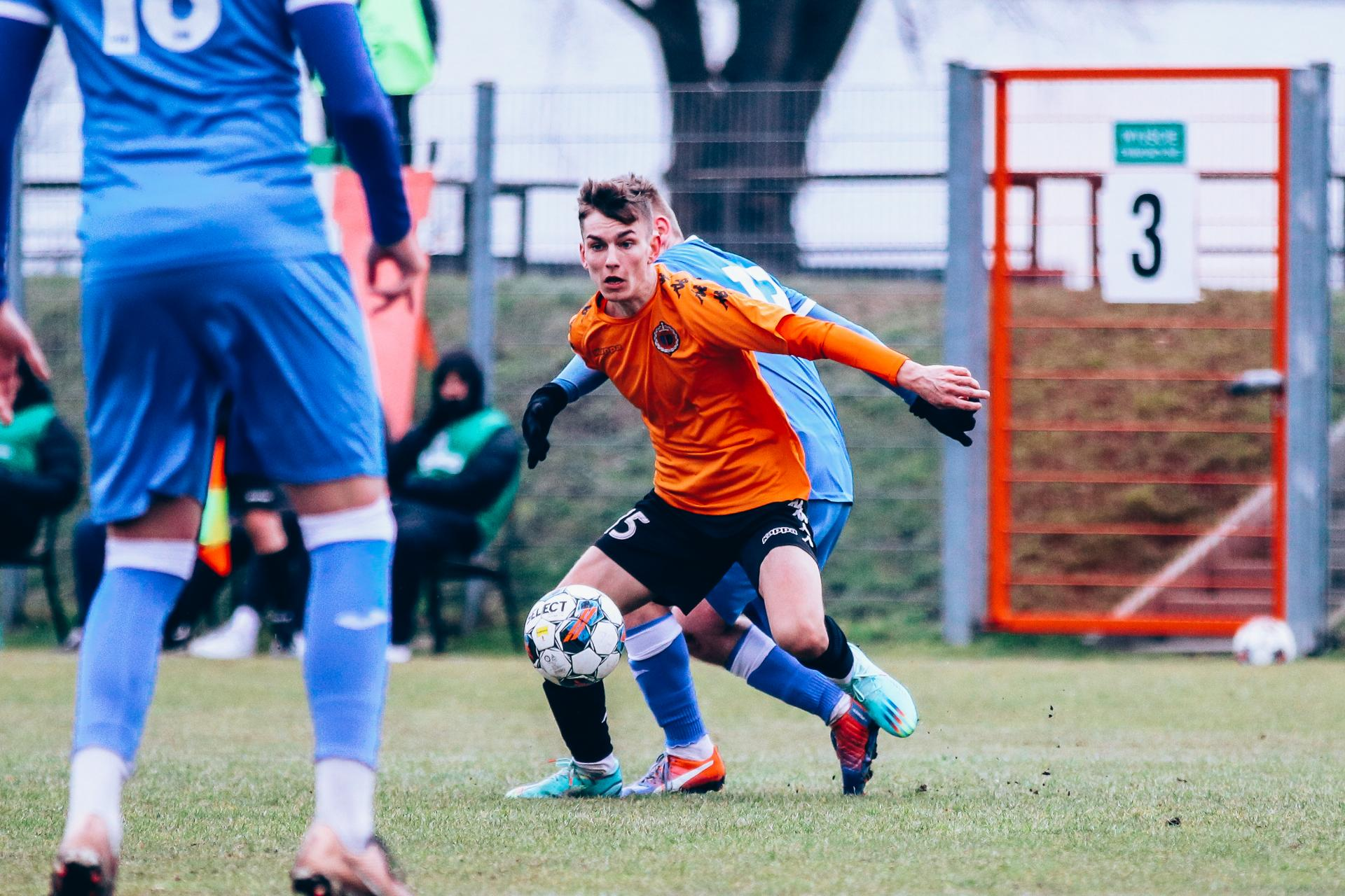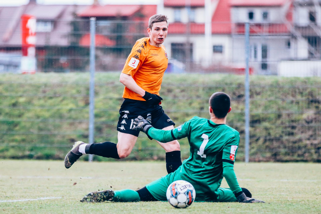 Chrobry II Głogów - Stal Brzeg 4:5 Po bardzo emocjonującym meczu górą goście. Zadecydowały ostatnie minuty, podczas których głogowianie grali w dziesięciu. 05-03-2023 01:48 autor: ŁJ Na inaugurację rundy wiosennej Chrobry II przegrał ze Stalą Brzeg 4:5. Pomarańczowo-Czarni prowadzili jeszcze w 87 minucie, ale końcówce minuty z czerwoną kartką Marcela Jaszczyka i dwoma golami gości okazały się kluczowe. Zespół Chrobrego częściowo wsparto pierwszoligowcami i przy ich udziale po pierwszych 45 minutach był na prowadzeniu. W 7 minucie w polu karnym sfaulowany został Dmytro Bilonoh, a z jedenastego metra wstrzelił się Patryk Mucha. W 20 minucie wynik podwyższył zdecydowanym wejściem w szesnastkę Mateusz Ozimek. Goście też wywalczyli rzut karny i w taki sposób odpowiedzieli w 39 minucie, kiedy to Bartka Szafera pokonał Dominik Bronisławski. Drugą część głogowianie zaczęli tak samo dobrze, jak pierwszą. Przebojowe wejście zaliczył wprowadzony w przerwie Adrian Marciniak, który w 47 minucie wykorzystał wyjście na czystą pozycję. Rywale jednak nie odpuszczali i zrobili użytek z dwóch stałych fragmentów gry. W 58 minucie bezpośrednio z rzutu wolnego bramkę zdobył Jakub Czajkowski, a 66 minucie trzecią w meczu, a drugą dla Stali jedenastkę na wyrównującego gola zamienił raz jeszcze Dominik Bronisławski. Pomarańczowo-Czarni zdołali wyjść z opresji, bo na 10 minut przed końcem skuteczną główką popisał się Adrian Marciniak. Już wtedy, przy wyniku 4:3, w tym spotkaniu działo się bardzo dużo i jego wydarzeniami można obdzielić kilka innych, ale jeszcze więcej wydarzyło na samym finiszu. W 87 minucie drugą żółtą kartką ukarano Marcela Jaszczyka, a grający w dziesięciu Chrobry stracił dwa gole. W 88 minucie wyrównał Marcin Wdowiak, natomiast już w doliczonym czasie wygraną Stali zapewnił Maksymilian Podgórski. Chrobry po raz drugi w tym sezonie przegrywa ze Stalą i po raz drugi w samej końcówce. Jesienią zespół z Brzegu wygrał 1:0 po bramce w 88 minucie, zresztą w wykonaniu tego samego zawodnika – Maksymiliana Podgórskiego. Szykuje się ciężka runda wiosenna i taki też będzie kolejny mecz, w którym 15. obecnie Chrobry zmierzy się na wyjeździe ze 11. Stilonem Gorzów. CHROBRY II GŁOGÓW – STAL BRZEG 4:5 (2:1) 1:0 Mucha 7 (k) 2:0 Ozimek 20 2:1 Bronisławski 39 (k) 3:1 Marciniak 47 3:2 Czajkowski 58 3:3 Bronisławski 66 (k) 4:3 Marciniak 80 4:4 Wdowiak 88 4:5 Podgórski 90 CHROBRY II: Szafer – Malczuk, Górski S. (46 Iwanowicz), Wawrzyniak, Jandziak (74 Wysiński), Bilonoh (46 Hanc), Bartlewicz (65 Ilków-Gołąb), Ozimek, Inoue, Mucha (46 Marciniak), Jaszczyk. STAL: Brzozowski – Wdowiak, Maj, Czajkowski, Sypek (46 Bąk), Amani (70 Celuch), Piontek (70 Podgórski), Ślesicki (46 Szela), Kulejewski, Bronisławski, Ochwat (46 Morys). ŻÓŁTE KARTKI: Bilonoh, Bartlewicz, Inoue, Jaszczyk, Iwanowicz, Wysiński – Czajkowski, Amani. CZERWONE KARTKI: Jaszczyk 87 (Chrobry – za drugą żółtą). ZOBACZ TABELĘ 3 LIGI