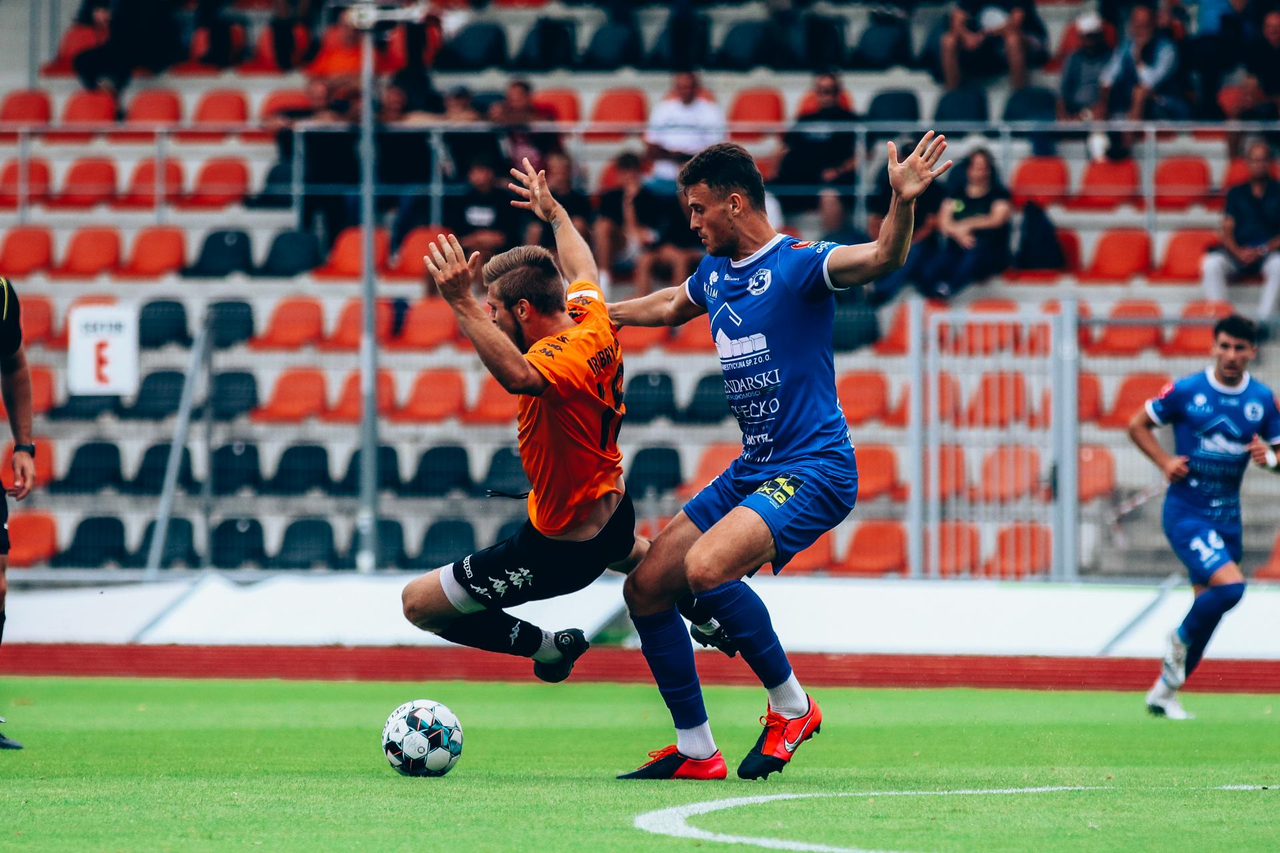 3 LIGA: Chrobry II Głogów - Stilon Gorzów 2:3 W 2 kolejce 3 Ligi Chrobry II Głogów przegrał ze Stilonem Gorzów 2:3. 13-08-2022 02:15 autor: ŁJ Mecz świetnie ułożył się dla Stilonu, który wykorzystał pierwszą groźniejszą okazję. W 3 minucie po wrzutce z lewej strony celnie główkował Emil Drozdowicz. Chrobry nabierał rozpędu, najpierw mając groźne, choć niecelne uderzenie Eryka Pieczarki z rzutu wolnego. Wykorzystał za to kolejną dobrą okazję. W 28 minucie Miłosz Jóźwiak mimo ostrego kąta wpakował piłkę do środka. Pomarańczowo-Czarni poszli za ciosem w ofensywnych zapędach, ale wynik nie uległ zmianie. Nawet wtedy, gdy w samej końcówce, po rzucie rożnym, bardzo dobrą szansę stworzyli dla odmiany goście – przy niej dobrze interweniował Bartek Szafer. Końcowy wynik pozostawał sprawą otwartą, lecz po zmianie stron więcej z przodu mieli rywale i potrafili to wykorzystać. W 52 minucie po raz kolejny nie pomylił się doświadczony Emil Drozdowicz, a w 71 minucie, po zamieszaniu w szesnastce głogowian, futbolówkę do własnej bramki pechowo skierował Miłosz Jandziak. Chrobry powalczył do końca i postarał się przynajmniej o emocje w ostatnich minutach. W 83 minucie z kilkunastu metrów wstrzelił się Bartosz Matysiak i ponownie Pomarańczowo-Czarni byli w grze. W doliczonym czasie przeprowadzili jeszcze jedną akcję, jednak mimo oddania strzału i rykoszetu piłka przeleciała tuż obok słupka, a z punktami wyjechali gorzowianie. Spotkanie skomentował trener Chrobrego II Sebastian Górski. - Przede wszystkich chciałbym podziękować wszystkim ludziom, którzy dziś pojawili się na trybunach, bo stworzyli dobrą atmosferę do gry w piłkę nożną. W takich okolicznościach przyjemnie jest rywalizować. Nasz zespół stworzony jest głównie z młodych wychowanków naszego klubu i dla nich takie wsparcie jest bardzo wartościowe i powoduje poczucie przynależności do klubu. Dziękuję w imieniu zespołu i zapraszam na kolejne spotkania. - Co do naszej gry widać brak doświadczenia. Duże pobudzenie emocjonalne powoduje, że nie bierzemy ciężaru gry na siebie. Dotychczas wyróżniał nas styl, model gry nad którym pracujemy, a w tych pierwszych dwóch spotkaniach więcej było emocji niż gry w piłkę. Wierzę w ten zespół i wiem, że z meczu na mecz emocje będą opadać, a my będziemy realizować założenia w grze. Wyniki bierzemy na klatę - nasi wychowankowie mają się rozwijać. Taki jest cel. Następny mecz w środę w Zielonej Górze. Początek spotkania z miejscową Lechią o godz. 17.00. CHROBRY II GŁOGÓW – STILON GORZÓW 2:3 (1:1) 0:1 Drozdowicz 3 1:1 Jóźwiak 28 1:2 Drozdowicz 52 1:3 Jandziak 71 (sam.) 2:3 Matysiak 83 CHROBRY II: Szafer – Pieczarka, Malczuk (76 Maćkowiak), Zarówny, Wawrzyniak, Jandziak, Inoue, Bartlewicz (68 Matysiak), Iwanowicz (62 Zygmunt), Jóźwiak (46 Wojtyra), Wojciechowski (62 Krawiec). STILON: Łodej – Sadowski, Świerczyński (46 Bohdanov), Kaczor (65 Poniedziałek), Maliszewski (72 Nowak), Trepczyński, Kaniewski (46 Ishizuka), Wiśniewski, Drozdowicz, Łaźniowski (39 Przybylski), Kopeć. ŻÓŁTE KARTKI: Iwanowicz – Kaniewski, Bohdanov. WIDZÓW: 355.