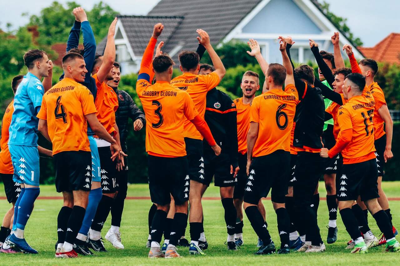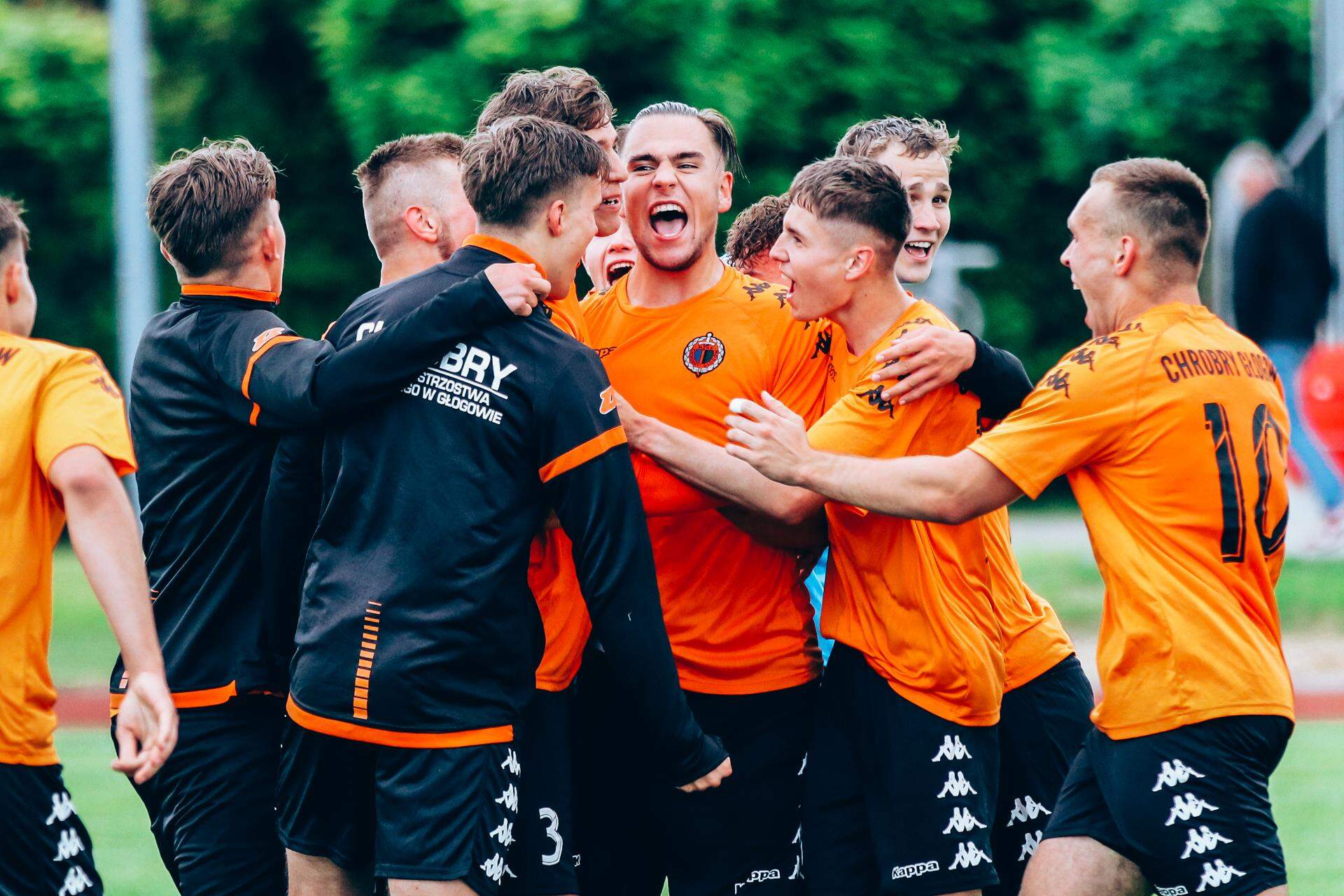 CHROBRY II ZWYCIĘZCĄ 4 LIGI! Chrobry pokonuje Spartę Grębocice, świętuje ligowe mistrzostwo i zaczyna przygotowania do baraży. 28-05-2022 07:08 autor: ŁJ Zwycięstwo ze Spartą Grębocice 1:0 po golu Olafa Zygmunta bezpośrednio z rzutu rożnego powoduje, że na kolejkę przed końcem Chrobry II wywalczył mistrzostwo 4 Ligi dolnośląskiej w grupie zachodniej! To pierwsze takie osiągnięcie w historii klubu i jednej z jego czołowych drużyn. Kwalifikuje ono Pomarańczowo-Czarnych do udziału w dwumeczu barażowym o awans do 3 Ligi. Rywalem Chrobrego będzie Lechia Dzierżoniów, która mając kilkanaście punktów przewagi również szybciej zapewniła sobie zwycięstwo w grupie wschodniej 4 Ligi. Zanim jednak dojdzie do barażowego dwumeczu, Chrobry II trenerów Sebastiana Górskiego i Tomasza Trznadla rozegra ostatnie ligowe spotkanie. W sobotę 4 czerwca o 17.00 domowy mecz z Prochowiczanką Prochowice w Głogowie. SPARTA GRĘBOCICE – CHROBRY II GŁOGÓW 0:1 (0:1) 0:1 Zygmunt 45 CHROBRY II: Szafer – Malczuk, Wawrzyniak, Zarówny, Jandziak, Inoue (17 Draczyński), Zygmunt (64 Antkowiak), Marciniak (90 Pawłowski), Krawiec, Jóźwiak (90 Jurgo), Jaszczyk (75 Galas). ZOBACZ TABELĘ 4 LIGI