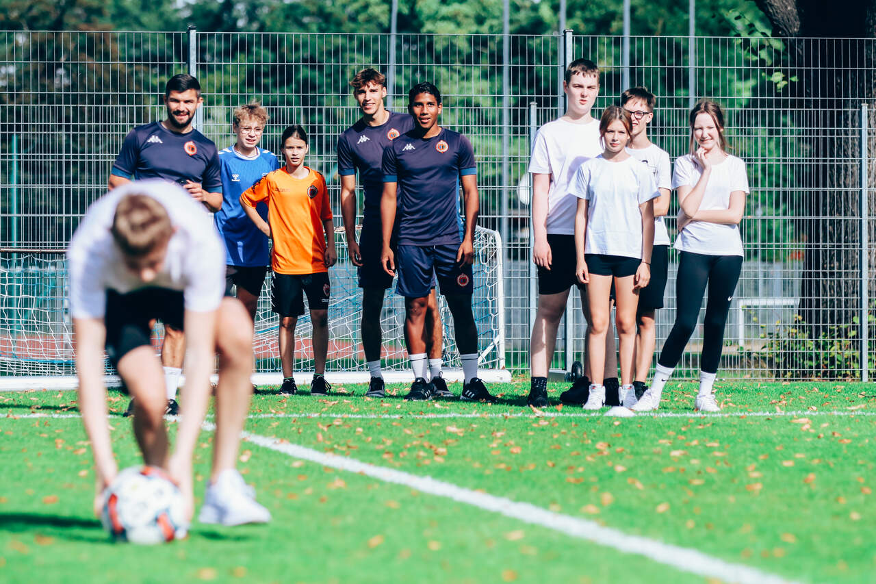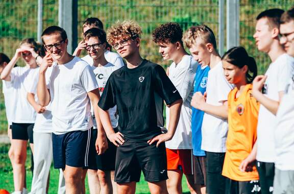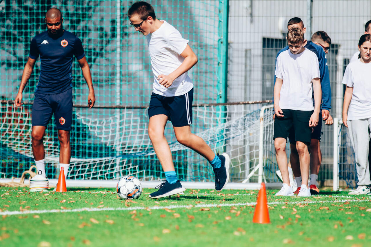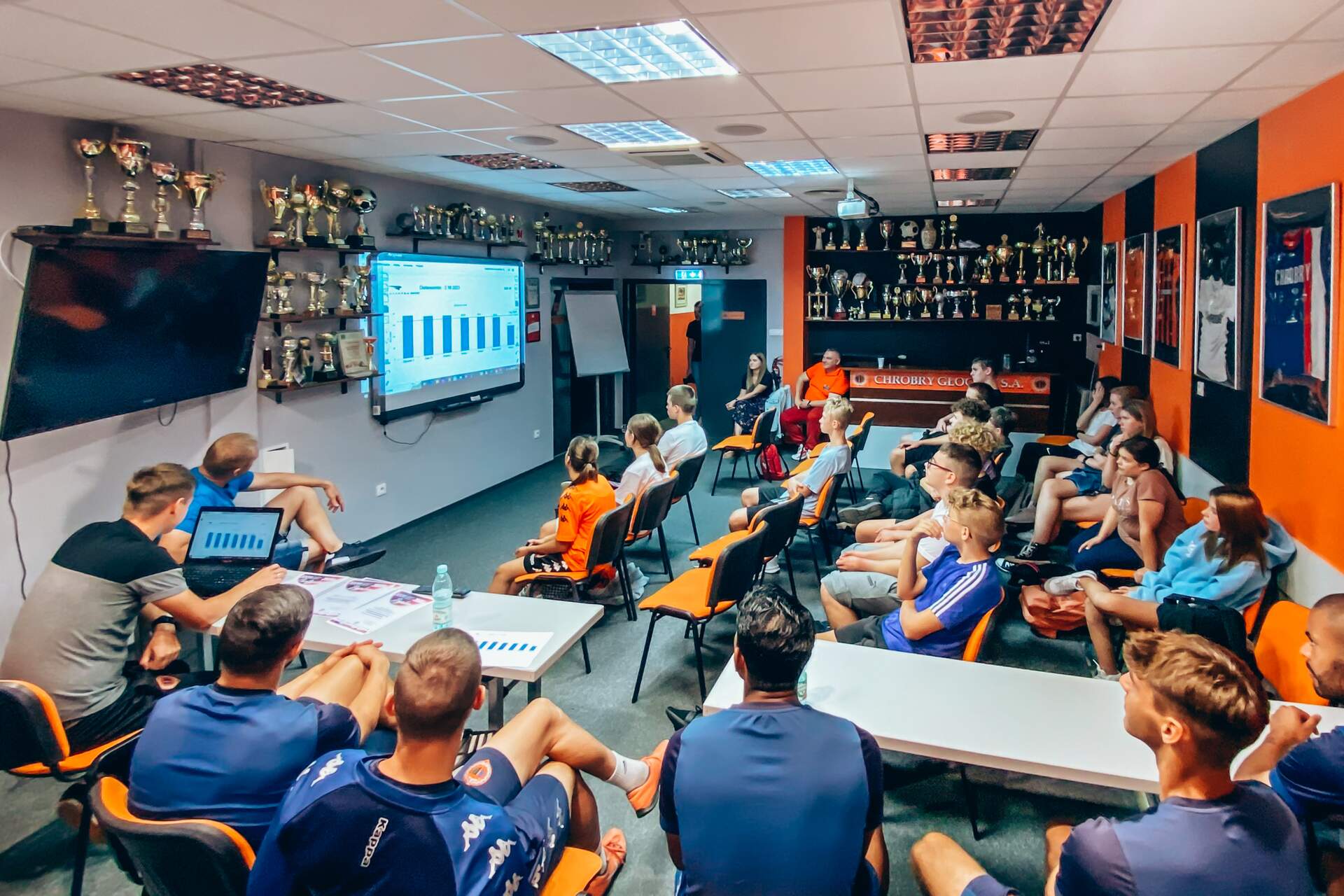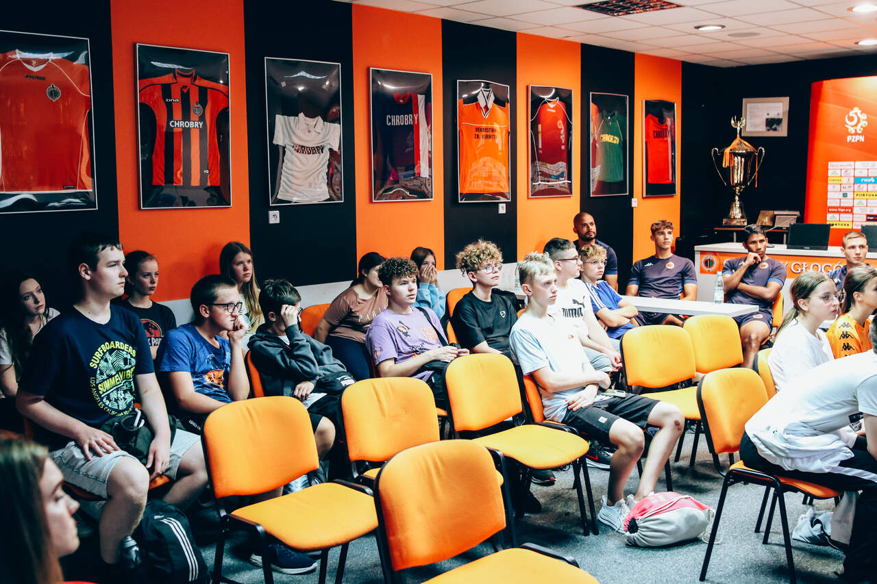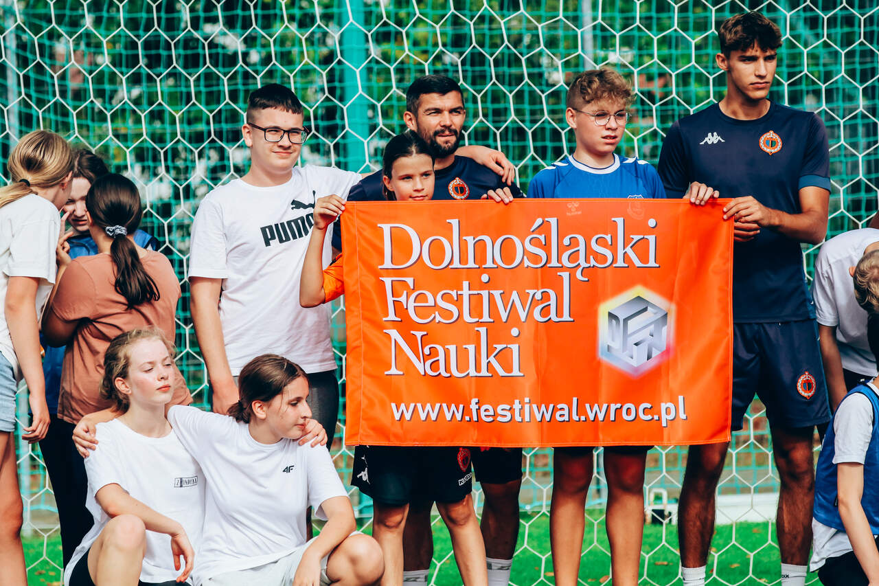 Chrobry wziął udział w Dolnośląskim Festiwalu Nauki Trening uczniów prowadzony przez piłkarzy i monitorowany przez system GPS, którego działania wyjaśnili trenerzy, czyli Chrobry na Dolnośląski Festiwal Nauki. 03-10-2023 11:03 autor: AM / ŁJ Po raz czwarty Chrobry Głogów wziął czynny udział w Dolnośląskim Festiwalu Nauki, którego 26 edycja przebiegała pod hasłem NAUKA PORUSZA. Tym razem przygotowaliśmy dla uczniów zajęcia praktyczne i teoretyczne, a temat zaproponował trener przygotowania motorycznego Maciej Idczak, członek sztabu szkoleniowego pierwszego zespołu. Poruszyliśmy temat: Technologia GPS w treningu piłkarskim, a z zajęć skorzystali uczniowie klasy 8A i 8B ze Szkoły Podstawowej nr 12 z Oddziałami integracyjnymi im. Kawalerów Orderu Uśmiechu. Część praktyczną zajęć, czyli trening na boisku poprowadzili piłkarze pierwszego zespołu, biorąc też w nim czynny udział. Natan Malczuk poprowadził rozgrzewkę, Mateusz Machaj konkurencje sprawnościowe, a Mateusz Ozimek sędziował mecz, który był monitorowany poprzez nadajniki GPS. Obie drużyny były wspierane przez Gabriela Estigarribię i Jesusa Paza. Dane z nadajników zostały na koniec przeanalizowane przez trenerów Maćka Idczaka i Piotra Plewnię. Wszyscy uczestnicy zajęć byli niesamowicie zaangażowani i było sporo pytań o rozmów o sporcie i zdrowym stylu życia. Fajnie było gościć w klubie tak pozytywne dzieciaki, więc obie klasy otrzymały w nagrodę bilety na nasz najbliższy mecz z Odrą Opole, a najbardziej zaangażowani zestawy upominków od klubu i organizatora Festiwalu. Wydarzenie w Głogowie trwa jeszcze do 4 października a program jest dostępny na stronie: https://www.festiwal.wroc.pl/program/ Serdecznie polecamy i zapraszamy do skorzystania z oferty.