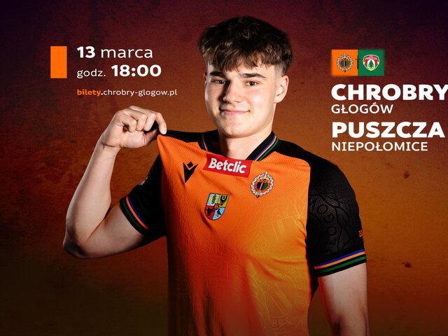 DZIEŃ MECZU: Chrobry Głogów - Puszcza Niepołomice W dwóch domowych meczach tego roku Chrobry był niepokonany i postara się dziś o to samo w trzecim. O godz. 18.00 w spotkaniu 25. kolejki Betclic 1 Ligi Pomarańczowo-Czarni podejmą Puszczę Niepołomice. 13-03-2026 12:03 autor: ŁJ DOWIEDZ SIĘ WIĘCEJ O NASZYM RYWALU: 12-03-2026 Nasz rywal: Puszcza Niepołomice Przedmeczowe info o piątkowym przeciwniku - Puszczy Niepołomice, którą Chrobry podejmie na swoim stadionie w spotkaniu rozpoczynającym się o godz. 18.00. BILETY: 09-03-2026 Chrobry Głogów - Puszcza Niepołomice: bilety Nie zwalniamy tempa i w najbliższy piątek ponownie stawiamy się na Wita Stwosza. O godz. 18.00 Chrobry w meczu 25. kolejki Betclic 1 Ligi podejmie Puszczę Ni... NAJWAŻNIEJSZE ORGANIZACYJNE INFORMACJE: 12-03-2026 Chrobry - Puszcza: organizacja dnia meczowego Najważniejsze organizacyjne informacje przed piątkowym meczem z Puszczą Niepołomice (godz. 18.00).
