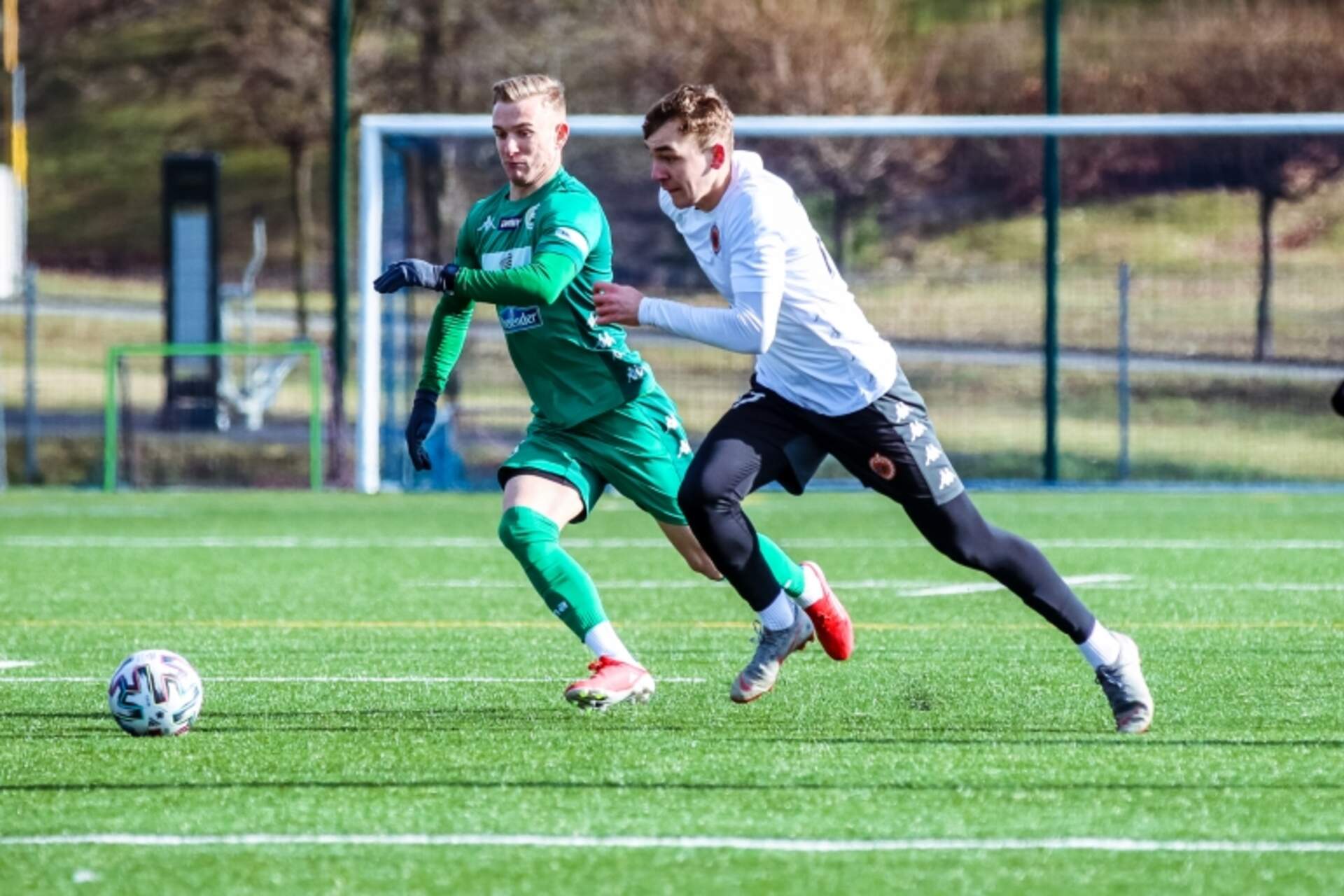 Do samego końca w sparingu Choć to tylko sparing, a nie mecz o stawkę, Chrobry powalczył w nim do końca i po golu Huberta Turskiego zremisował z KKS-em Kalisz 1:1.Chrobry na mecz z KKS-em wyszedł na dwa mieszane składy. W jednym i drugim byli zarówno… 12-02-2022 03:53 autor: ŁJ Choć to tylko sparing, a nie mecz o stawkę, Chrobry powalczył w nim do końca i po golu Huberta Turskiego zremisował z KKS-em Kalisz 1:1.Chrobry na mecz z KKS-em wyszedł na dwa mieszane składy. W jednym i drugim byli zarówno podstawowi zawodnicy ze składu rundy jesiennej, jak i rezerwowi. W Głogowie został Toshiya Inoue oraz część klubowej młodzieży - w Kaliszu wystąpili bowiem Dominik Piła, Maksym Iwanowicz i Eryk Pieczarka, a poza kadrą byli Wiktor Wawrzyniak, Bartek Szafer i Miłosz Jandziak.W pierwszej połowie sytuacji do bramek było niewiele. W pierwszej i właściwie jedynej po stronie gospodarzy Rafała Leszczyńskiego pokonał Piotr Giel. Od 8 minuty kaliszanie prowadzili 1:0 i jednobramkowe prowadzenie utrzymali do końca tej odsłony. Chrobry nie miał czystych szans na odpowiedź. Strzał Dennisa van der Heijdena przyblokowano, a po uderzeniu Marcela Ziemanna piłkę chwycił bramkarz KKS-u. Lepszych okazji trzeba było poszukać w kolejnych 45 minutach.Po zmianie stron Pomarańczowo-Czarni przycisnęli i mieli z czego strzelić. W 55 minucie sam na sam po dograniu Eryka Pieczarki wyszedł Hubert Turski, ale mimo że zdołał przechytrzyć golkipera rywali, za mocno wypuścił sobie piłkę. W 66 minucie boisko z powodu kontuzji musiał opuścić Adam Banasiak. Po kolejnych sześciu minutach Chrobry miał serię bardzo dobrych szans. W 72 minucie futbolówkę w polu karnym przechwycił Mikołaj Lebedyński, oddał ją Mateuszowi Bochnakowi, po którego strzale głogowianie zyskali rzut rożny. Po chwili próbowali i Robert Mandrysz, i Michał Rzuchowski, lecz oba uderzenia były nieznacznie niecelne. W końcówce dobrą szansę miał jeszcze Mateusz Bochnak, ale gdy tej nie udało się wykorzystać, mimo doliczonego czasu gry głogowscy piłkarze szukali kolejnej. W efekcie w ostatniej akcji meczu po wrzutce Mateusza Bochnaka skutecznie główkował Hubert Turski. Chrobry zremisował dzięki temu z KKS-em 1:1.Przed ligą Pomarańczowo-Czarni będą mieć jeszcze dwie próby generalne. W piątek o godz. 18.00 zmierzą się z Lechią Zielona Góra, a dzień później z Zagłębiem Lubin.