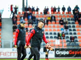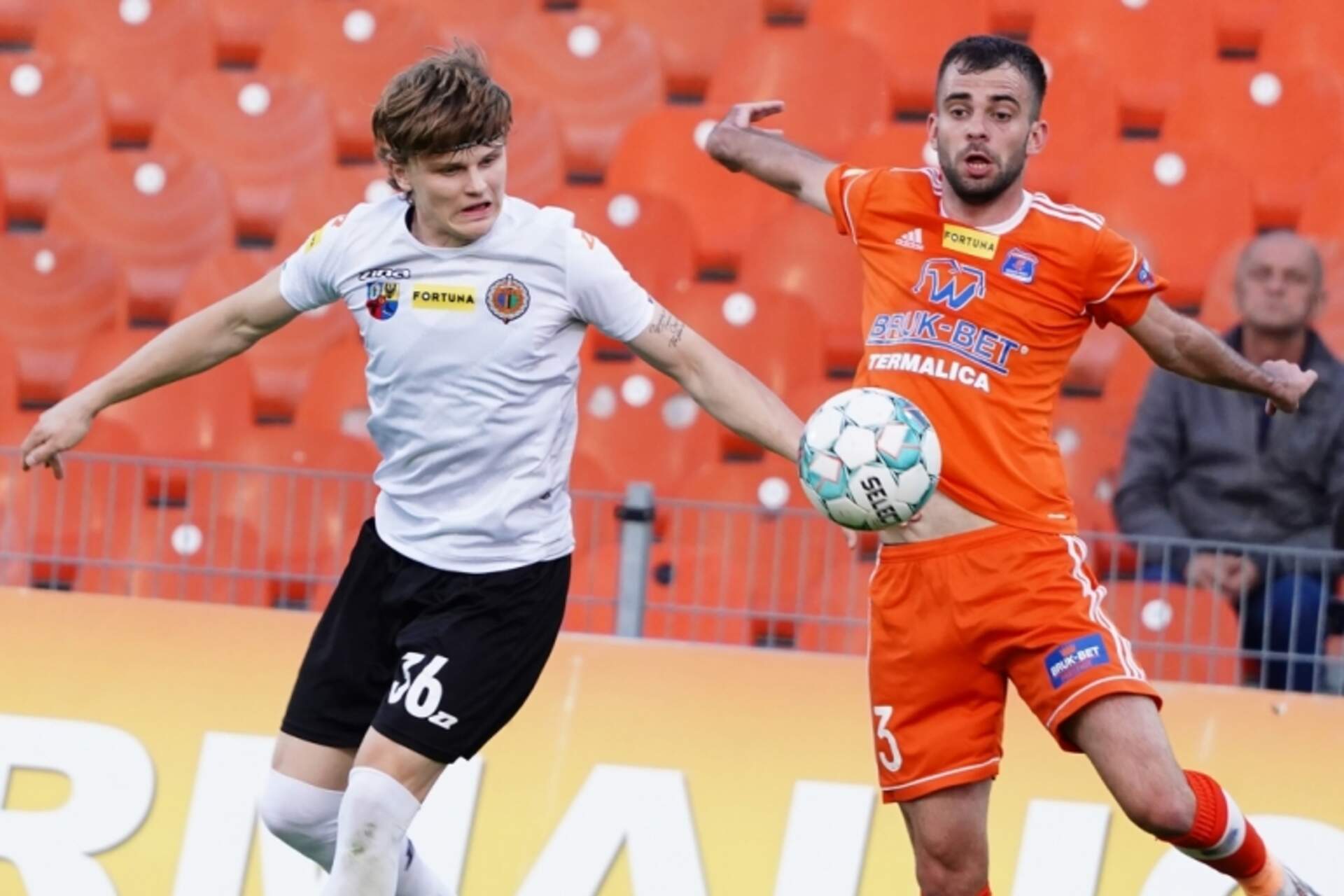 Dobra seria. Remis na stadionie lidera Trwa dobra seria Chrobrego, który punktuje w czwartym kolejnym występie. Tym razem pozostaje z jednym punktem i jest o tyle wartościowy przywieziony z terenu lidera.Trener Ivan Djurdjević w składzie dokonał trzech zmian. W obronie… 19-05-2021 11:04 autor: ŁJ Trwa dobra seria Chrobrego, który punktuje w czwartym kolejnym występie. Tym razem pozostaje z jednym punktem i jest o tyle wartościowy przywieziony z terenu lidera.Trener Ivan Djurdjević w składzie dokonał trzech zmian. W obronie miejsce Michała Ilkowa-Gołąba zajął Nikodem Niski, a w pomocy pojawili się Robert Mandrysz oraz Maksymilian Banaszewski zastępujący kolejno Tomasza Cywkę i Mateusza Machaja. To pierwsze zmiany w wyjściowej „11” od trzech spotkań.Termalica zaczęła bardzo mocno i już w pierwszych minutach stworzyła dwie dobre okazje. Zwłaszcza po tej pierwszej mogła prowadzić. W 3 minucie z pola karnego uderzył Wiktor Biedrzycki, a wyciągnięty Rafał Leszczyński w efektownym stylu skierował piłkę poza linię końcową. Dla odmiany, po 10 minutach mogło, a może nawet powinno być 0:1. Jaka Kolenc wypatrzył dobrze ustawionego z boku Marcela Ziemanna, którego dogrania w pole karne nie zdołał wykończyć naciskany Mikołaj Lebedyński, ale już mający więcej swobody Dominik Piła mógł to zrobić. Niestety, z jedenastu metrów posłał piłkę też obok bramki i aż złapał się za głowę. To była niemal stuprocentowa okazja Chrobrego.Gospodarze dłużej utrzymywali się przy piłce i częściej przedzierali się w pole karne lub jego okolice, ale w bramkowych sytuacjach nie było to tak jednoznaczne. Tym bardziej, że w 41 minucie ładnie z dalszej odległości przymierzył Jaka Kolenc, a odbita futbolówka po raz kolejny przeleciała obok słupka. Po 45 minutach mieliśmy po jednej bardzo dobrej okazji po obu stronach i sprawiedliwe pod tym względem 0:0.W 53 minucie Rafała Leszczyńskiego uruchomił strzałem zza szesnastki Marcin Wasielewski. Zdecydowanie groźniej było w 64 minucie. Po główce piłka odbiła się od słupka, a wobec błyskawicznej dobitki kolejną bardzo dobrą interwencją popisał się Rafał Leszczyński.W tej odsłonie wyraźniej niebezpiecznie było na połowie Chrobrego, który jednak też potrafił przedrzeć się wyżej i oddać niezły strzał. Tak było choćby w 76 minucie, kiedy Robert Mandrysz bez zawahania uderzył z kilkunastu metrów po dograniu Marcela Ziemanna, lecz futbolówka nie zmierzyła w światło bramki.Zdecydowanie jednostronnie zrobiło się za to w ostatnich minutach. To gospodarze szukali jedynego gola i było naprawdę blisko. W 87 minucie zamieszanie wyjaśnił wybiciem w ostatniej chwili Mavroudis Bougaidis. Kacper Śpiewak główkował obok bramki, ale to wchodzący na boisko w trakcie drugiej połowy Patryk Czarnowski mógł zostać bohaterem lidera. Miał dwie szanse, w tym jedną wyśmienitą. Sekundy przed końcowym gwizdkiem przejął piłkę po tym, jak własną bramkę opuścił Rafał Leszczyński i naciskany przez rywala nie był w stanie dokładnie wybić jej głową. Między słupkami zastąpił go Michał Ilków-Gołąb i jego obecność pewnie wymusiła niecelne uderzenie, bo zawodnik „Słoni” obił słupek. Na tym spotkanie dobiegło końca.Przed Chrobrym tylko kilka dni przerwy. Już w niedzielę kolejny mecz na wyjeździe, tym razem w Nowym Sączu.fot. Tomasz Madejski (Bruk-Bet Termalica Nieciecza)