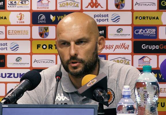 Trenerzy Marek Gołębiewski i Jarosław Skrobacz po meczu Chrobrego z Ruchem.