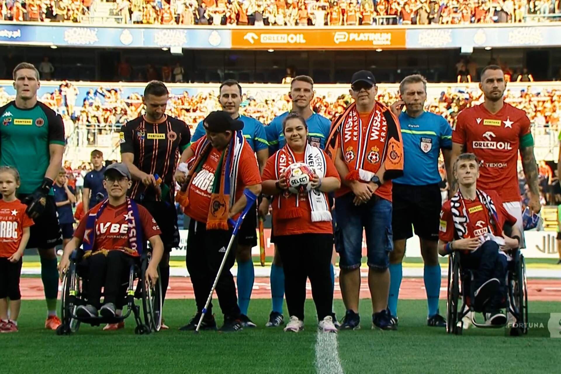 KKN Chrobrego obecny w Krakowie 18 osób z Klubu Kibiców Niepełnosprawnych Chrobrego Głogów wspierało Pomarańczowo-Czarnych rywalizujących w Krakowie z Wisłą. 18-09-2023 09:17 autor: ŁJ To już drugi zorganizowany wyjazd członków KKN do Krakowa na mecz Chrobrego z „Białą Gwiazdą”, ale ten należał do szczególnych. Na polskich stadionach trwa akcja #stadionybezbarier, stąd obecność dwóch naszych fanów, Arkadiusza Adamskiego oraz Pawła Mareckiego, w eskorcie piłkarzy, w której wzięli też udział niepełnosprawni kibice gospodarzy. KKN w Krakowie był obecny w sumie przez dwa dni, przy okazji odwiedzając też charakterystyczne miejsca miasta i regionu, co - wobec cennego punktu wywalczonego przez piłkarzy Chrobrego - z pewnością odbywało się w dobrej atmosferze. Dziękujemy za obecność! Osobne podziękowania w imieniu KKN kierujemy gospodarzom - Wiśle Kraków, jej pracownikom i niepełnosprawnym kibicom.