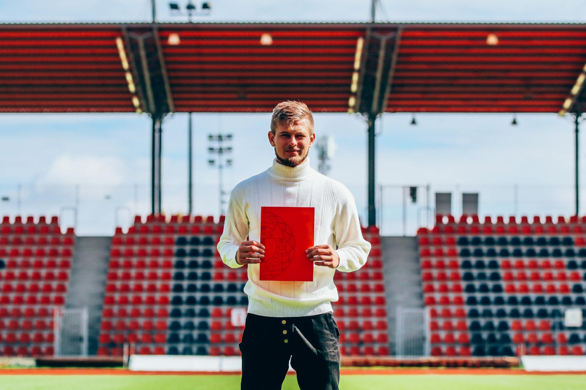 Kontrakty młodzieżowców Chrobrego Miłosz Jóźwiak, ale też szeroka grupa innych młodzieżowców w ostatnich miesiącach podpisywała z Chrobrym swoje pierwsze kontrakty. 22-09-2022 11:25 autor: ŁJ W ostatnich miesiącach klub podpisywał kontrakty z szeroką grupą swoich młodzieżowców. Część z nich ma już za sobą debiuty w pierwszym zespole, a nawet zdobyte bramki, inni o taki debiut cały czas walczą. W pierwszym Chrobrym stopniowo odgrywają coraz większą rolę i kto wie czy wkrótce któryś z nich nie pójdzie w ślady Dominika Piły, który niedawno zadebiutował w Ekstraklasie. W tym sezonie w Chrobrym wystąpiło już trzech zawodników z zespołów młodzieżowych, a dwóch z nich zrobiło to po raz pierwszy. U trenera Marka Gołębiewskiego pierwsze minuty zebrali Albert Zarówny i Miłosz Jóźwiak. Albert jako środkowy obrońca zadebiutował w wygranym 3:1 meczu Pucharu Polski ze Stomilem Olsztyn, rozgrywając wówczas pełne 90 minut. Wcześniej, bo już w lipcu, po raz pierwszy w Chrobrym zagrał 20-letni Miłosz Jóźwiak. Występujący z przodu wychowanek Chrobrego ma już pięć rozegranych spotkań i dwie bramki na koncie, w tym najcenniejszą z ostatniego spotkania w Gdyni – po jego trafieniu w 90 minucie Pomarańczowo-Czarni wygrali 4:3. Tak Albert, jak i Miłosz są związani z klubem kontraktami, kolejno w opcjach 3+1 i 1+1. Do młodzieżowców Chrobrego już w trakcie sezonu dołączył 18-letni pomocnik Jakub Cieślicki. Były zawodnik ŁKS-u Łódź i Lechii Gdańsk w trakcie okresu przygotowawczego przebywał w Chrobrym w charakterze testów. Później trenerzy i klub zdecydowali o jego pozyskaniu, stąd podpisana umowa w opcji 2+1. Jakub Cieślicki, podobnie jak Miłosz Jóźwiak z Albertem Zarównym, są w szerokiej kadrze pierwszoligowców, ale oglądamy ich także w meczach Chrobrego II, który w tym sezonie po raz pierwszy w historii rywalizuje na poziomie 3 Ligi. Robi to najmłodszym składem w całej lidze, o czym mówi klasyfikacja Pro Junior System, w której zajmuje pierwsze miejsce z wyraźną przewagą. Budując trzecioligowy skład, a co za tym idzie jak najszersze zaplecze „jedynki”, podpisano kontrakty z Adrianem Marciniakiem, Olafem Zygmuntem, Michałem Fryzowiczem, Gabrielem Draczyńskim, Maciejem Maćkowiakiem, Tymonem Krawcem, Bartkiem Szaferem, Marcelem Jaszczykiem czy Natanem Malczukiem, a poza tymi młodzieżowcami także z bardziej doświadczonymi, którymi są Tomasz Wojciechowski i Toshiya Inoue.