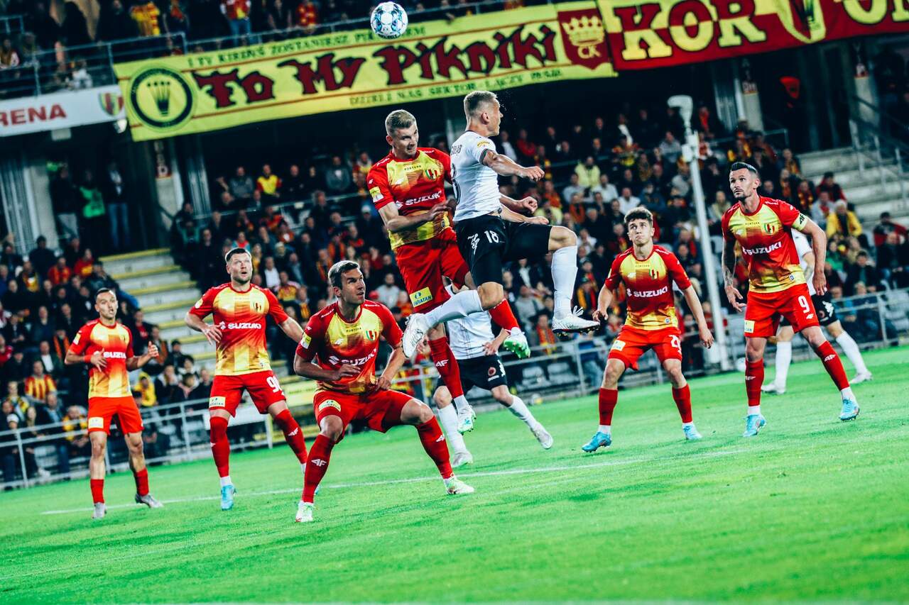 JEŚLI JUŻ PRZEGRYWAĆ, TO PO TAKIEJ WALCE Chrobry przegrał w Kielcach 2:3, ale i po tym świetnym widowisku, i całym sezonie, nie ma się czego wstydzić. 29-05-2022 10:43 autor: ŁJ Korona w dramatycznych okolicznościach z rozstrzygającą bramką w 119 minucie pokonuje Chrobrego 3:2 i jest w Ekstraklasie. Ten mecz był taki, jak miniony okres. Nieważne, że koniec końców przegrany – po ogromnej walce, determinacji i chęci zwycięstwa. Zostawiamy za sobą mimo wszystko piękny czas. Chrobry dobrze zaczął. Po dograniu wzdłuż bramki Mateusza Bochnaka bliski domknięcia był Dominik Piła. Z kilkunastu metrów przymierzył Mavroudis Bougaidis, ale futbolówkę pewnie chwycił bramkarz Korony. Mimo tego to ona wyszła na prowadzenie. W 18 minucie Rafała Leszczyńskiego pokonał główkujący Adam Frączczak. Początkowo sędziowie wskazali pozycję spaloną, lecz po analizie VAR było jasne – gospodarze na prowadzeniu. Pomarańczowo-Czarni nic sobie z tego nie zrobili i w kilkadziesiąt sekund oszołomili rywala. W 38 minucie wykorzystali ich błąd, bo piłkę na połowie kielczan przechwycił Mikołaj Lebedyński i doprowadził do wyrównania. On w takich sytuacjach jest niezawodny. Była 38 minuta. W 39 mieliśmy… 1:2. Futbolówkę stracił Marcin Szpakowski, przejął ją tym razem Michał Rzuchowski i błyskawicznie ruszył do przodu, oddając skuteczny strzał z kilkunastu metrów. Niewiarygodne. Chrobry po pierwszej połowie prowadził jedną bramką i już tylko 45 minut dzieliło go od Ekstraklasy. W drugiej połowie głogowianie starali się pilnować wyniku, ale jedna sytuacja zadecydowała o remisie. W 64 minucie w polu karnym sfaulował Michał Ilków-Gołąb, a jedenastkę na gola zamienił Adam Frączczak. Kielczanie przycisnęli i w końcowych minutach mieli świetną okazję na przechylenie szali na swoją stronę. W 83 minucie Rafał Leszczyński świetnie obronił strzał Jacka Kiełba i choć Adam Frączczak zdążył ze skuteczną dobitką, był na spalonym i radość z prowadzenia potrwała tylko sekundy. Po 90 minutach utrzymywał się remis i konieczna była dogrywka. W dogrywce Pomarańczowo-Czarni wrócili na swoje tory, z każdą minutą nabierali coraz więcej pewności i dało się odczuć, że chcą to rozstrzygnąć jak najszybciej. Próbowali Michał Rzuchowski z Dominikiem Piłą – nie były to jakieś świetne szanse, ale potwierdzały zapędy głogowian, którzy niemal zdominowali drugą odsłonę. 2:3 mogło być w 110 minucie, kiedy po wyrzucie piłki z autu uderzał Dominik Piła, przy czym piłkę z samej linii wybił Kyrylo Petrov. Jak na złość, prowadzenie objęli miejscowi. Przeklęta okazała się 119 minuta, w której po dograniu Jakuba Łukowskiego gola z najbliższej odległości zdobył Jacek Kiełb. Chrobry starał się jeszcze odpowiedzieć i miał ku temu swoją szansę, jednak futbolówka po uderzeniu Mateusza Machaja poszybowała tuż nad bramką. Wielka szkoda, bo wydawało się, że po tak rozegranej dogrywce to Korona bardziej mogła chcieć serii jedenastek. Z drugiej strony, jeśli odpadać, to po takich widowiskach. W sezonie 2022/23 w Ekstraklasie zagra Korona Kielce i życzymy jej powodzenia. Chrobry przystąpi do Fortuna 1 Ligi, ale z nowym bagażem doświadczeń i przekroczeniem kolejnej bariery.