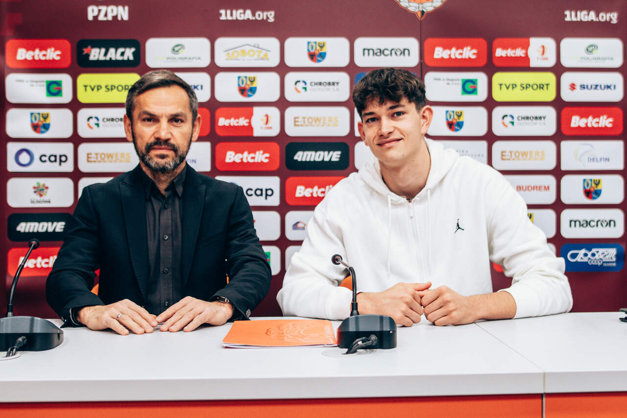 Bramkostrzelny Kuba Szabłowski dołącza do Akademii Chrobrego! 19-letni Kuba Szabłowski nowym zawodnikiem w Akademii Piłki Nożnej Chrobrego Głogów! Skuteczny napastnik związał się z klubem kontraktem obowiązującym do czerwca, z opcją przedłużenia. Od teraz oficjalnie zasila szeregi Chrobrego II – bezpośredniego zaplecza pierwszoligowego zespołu. 28-11-2025 01:20 autor: ŁJ Kuba Szabłowski urodził się w Bolesławcu, a jego dotychczasowa piłkarska droga prowadziła przez takie kluby jak Zagłębie Lubin, Iskra Kochlice, SMS Łódź oraz Miedź Legnica, z którą związany był od 2021 roku. W barwach legnickiego klubu występował początkowo w zespołach młodzieżowych, gdzie dał się poznać jako niezwykle bramkostrzelny napastnik – ponad 40 zdobytych goli w sezonie 2022/2023 otworzyło mu drogę do wyższych szczebli rozgrywkowych. W rundzie jesiennej był już zawodnikiem trzecioligowej Miedzi II oraz drużyny rywalizującej w Centralnej Lidze Juniorów. W rozgrywkach Betclic 3 Ligi wystąpił w 15 spotkaniach, zdobywając 5 bramek. – Akademia realizuje wiele zadań, a jednym z kluczowych jest skauting, czyli wyszukiwanie i pozyskiwanie zawodników o profilu przydatnym dla pierwszej drużyny – podkreśla dyrektor APN, Jarosław Wielgus. – Kuba idealnie wpisuje się w te założenia. Wierzymy, że poprzez proces szkoleniowy w Akademii oraz grę w Chrobrym II będzie mógł w przyszłości zasilić pierwszy zespół. To zawodnik obdarzony znakomitymi warunkami fizycznymi, mierzy ponad dwa metry wzrostu, a przy tym bardzo skuteczny. Mieliśmy okazję sami się w tym utwierdzić, obserwując go podczas rywalizacji, także bezpośredniej z naszymi drużynami. Kuba, życzymy powodzenia w pomarańczowo-czarnych barwach oraz nieustannego rozwoju na piłkarskiej drodze!
