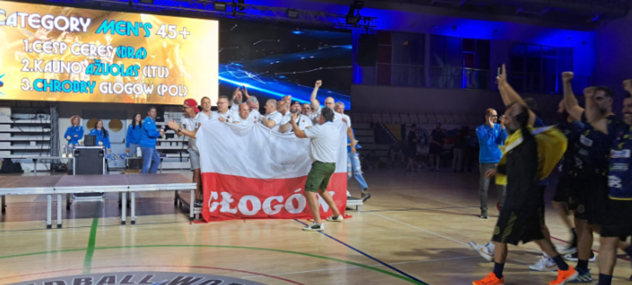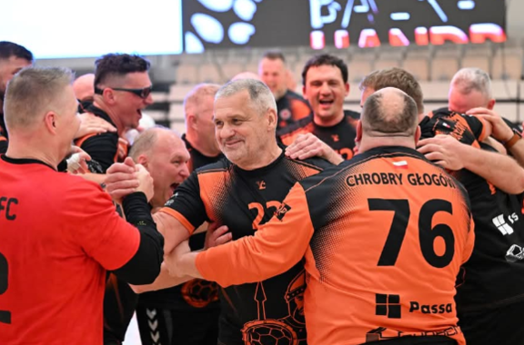 "Spełniliśmy marzenia" Występujący pod szyldem Chrobrego oldboje piłki ręcznej – Handball Masters z medalem mistrzostw świata, które odbyły się w Chorwacji! Teraz dzielą się z nami tą medalową przygodą, więc nie pozostaje nam nic innego, jak zachęcić do lektury. 27-05-2025 12:43 autor: ŁJ W zeszłym roku zakończyliśmy Puchar Świata na 4 miejscu, przegrywając brąz w rzutach karnych. Tym razem chcieliśmy zrobić wszystko, żeby wrócić do Głogowa z medalami na szyi. Do Chorwacji wyruszyliśmy w bojowych nastrojach. Pierwszy cel do wykonania: awans z grupy. Pokonaliśmy zespoły ze Słowacji i Węgier. Minimalnie ulegliśmy mocnej fizycznie drużynie z Litwy i z drugiego miejsca awansowaliśmy do strefy medalowej. W półfinale czekali na nas Canarinhos. Stoczyliśmy z Brazylijczykami bardzo wyrównany bój. W regulaminowym czasie był remis. Niestety to przeciwnik zachował więcej sił, wygrał w karnych i awansował do finału. Klątwa siódemek? Oby nie. Przed nami mecz o trzecie miejsce z ostro grającymi Czechami. Twardy męski Handball, sporo kar, kłótnie z sędziami. Normalka w handballu 😊 Na szczęście pokazaliśmy jakość i ostatecznie brązowe medale zawisły na naszych szyjach. Spełniliśmy marzenia. Grzesiek Piotrowski jak za dawnych dobrych lat wielokrotnie dziurawił siatkę przeciwników i otrzymał tytuł najlepszego strzelca kategorii 45 +. Brawo Grzegorz ! Po raz kolejny wzięliśmy udział, nie ma co ukrywać – w święcie piłki ręcznej. Grubo ponad 1000 osób z całego świata, prawie ze wszystkich kontynentów. Dużo twardej walki, jeszcze więcej uśmiechu i radości z przebywania w gronie ludzi kochających sport. Głogów pokazał się z bardzo dobrej strony. Możemy być z siebie dumni. I nie ukrywamy – apetyty mamy większe niż brąz. Zatem do pracy panowie 😊 Skład drużyny: Bramkarze: Przemek Pitoń, Jacek Głów Zawodnicy z pola: Marcin Gośko, Mariusz Witczak, Grzegorz Badecki, Sebastian Szymański, Dominik Jastrzębski, Marcin Krotla, Tomasz Kalinowski, Rafał Walczak, Grzegorz Piotrowski, Łukasz Darowski, Marcin Burda, Krzysztof Przybysz, Marek Becelewski, Andrzej Sowa. Trenerzy: Marek Wojciechowski, Józef Kaminiarz (trenerze zbieraj siły i następnym razem widzimy się w Chorwacji) Łukasz Darowski