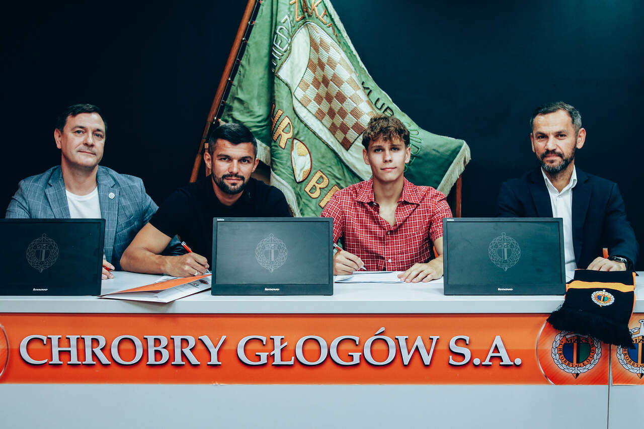 Dwa nowe kontrakty. Mateusz Machaj w klubie w nowej roli Z jednej strony doskonale znany kibicom Mateusz Machaj, z drugiej 18-letni Ziemowit Witczak. Obaj zawodnicy podpisali z Chrobrym kontrakty. Po zakończeniu profesjonalnej kariery Mateusz pozostaje w klubie i będzie występował w drugim zespole. 25-07-2024 09:00 autor: ŁJ Mateusz Machaj dopiero co żegnał się z głogowskimi kibicami, w swoim ostatnim, 215. meczu zdobywając bramkę. Chrobry zdecydował się jednak na kontynuację współpracy z zasłużonym dla klubu piłkarzem. Zmienia się tylko rola. W nowym sezonie Mateusz będzie zawodnikiem Chrobrego II, który w sierpniu rozpocznie rywalizację w 4 Lidze Dolnośląskiej. - Od kilku lat stawiamy na swoich wychowanków i zawodników utożsamiających się z klubem - powiedział Dyrektor Akademii Piłki Nożnej Chrobrego Głogów Jarosław Wielgus. - Cieszę się z tego, że Mateusz podpisał z Chrobrym kontrakt, bo jest dla klubu ważną postacią. Mam nadzieję, że dzięki jego osobowości, charakterowi i umiejętnościom sportowym zawodnicy drugiego zespołu będą się rozwijać w jeszcze szybszym tempie. Mateusz Machaj służy więc swoim doświadczeniem wyniesionym z ponad 200 występów w barwach Chrobrego oraz wielu w Ekstraklasie i ma komu tę wiedzę przekazywać. Drugi zespół jest jednym z najmłodszych w 4 Lidze, a wśród młodzieżowców jest m.in. 18-letni Ziemowit Witczak, z którym klub także zawarł umowę. Ziemowit Witczak jako uczeń Szkoły Mistrzostwa Sportowego Chrobry w klubie szkoli się do 2022 roku.