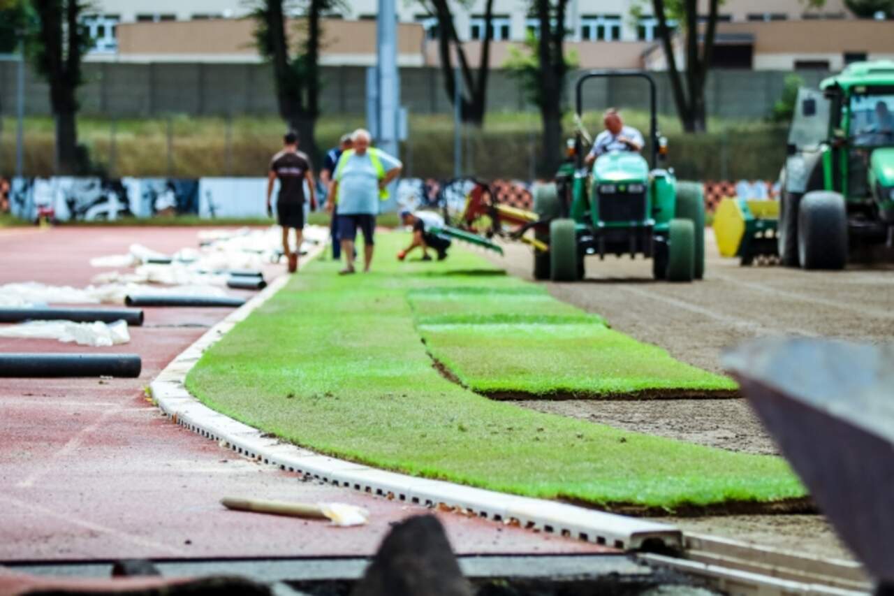 Na stadionie kładziona jest murawa Do Głogowa dotarły duże rolki trawy, które w tym momencie przy użyciu specjalistycznego sprzętu są rozkładane na pierwszej płycie. To kolejny etap inwestycji związanej z montażem instalacji grzewczej murawy przy Wita… 03-08-2021 03:40 autor: ŁJ Do Głogowa dotarły duże rolki trawy, które w tym momencie przy użyciu specjalistycznego sprzętu są rozkładane na pierwszej płycie. To kolejny etap inwestycji związanej z montażem instalacji grzewczej murawy przy Wita Stwosza.Wcześniej zakończono montaż części instalacji, która znajduje się w ziemi. Na jej warstwę układane są pasy trawy. Zajmie to kilka dni, po których trawa będzie się zakorzeniać. W innej części stadionu, przy wejściu do niego, trwają jeszcze inne prace - budowa węzła cieplnego, który będzie uruchamiał system zasilający w ciepło i będzie sterował ogrzewaniem. Na koniec konieczna do realizacji pozostanie też część formalna, m.in. uzyskanie pozwolenia na użytkowanie.