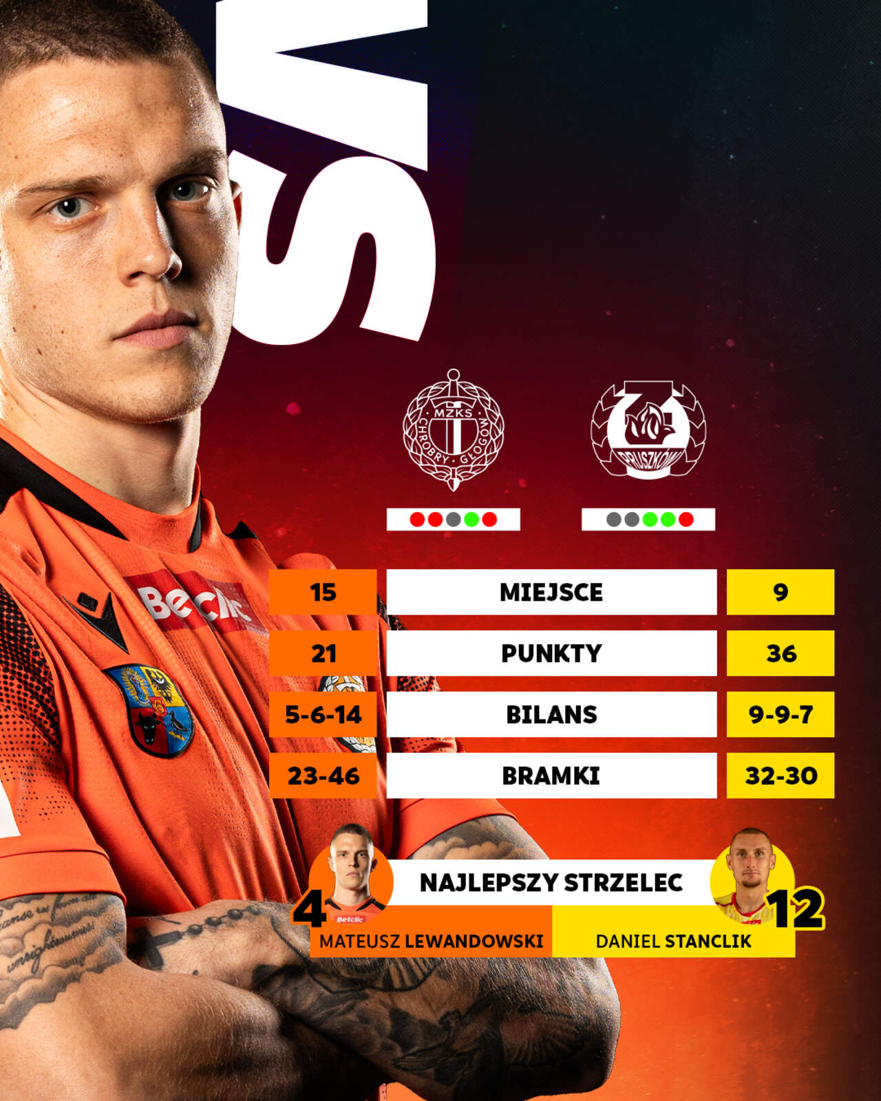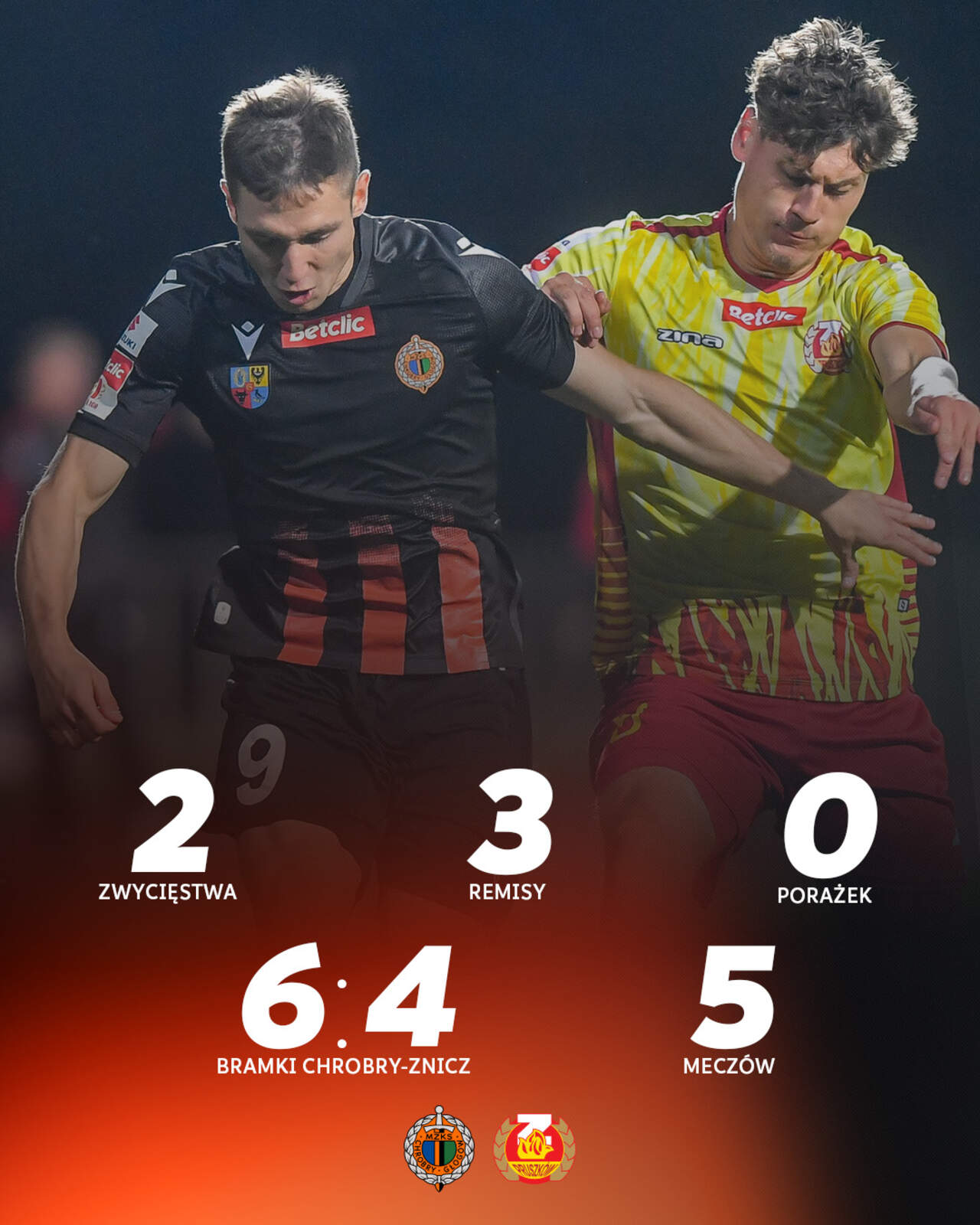 Nasz rywal: Znicz Pruszków Już w piątek mecz ze Zniczem Pruszków na Wita Stwosza. Na dzień przed nim przyglądamy się naszemu przeciwnikowi, w szeregach którego jest sporo znajomych twarzy. 03-04-2025 02:00 autor: ŁJ W tym roku tylko raz pokonani W tegorocznych występach Znicz poniósł tylko jedną porażkę, ale nawet ona była nieznaczna. W drugiej wiosennej kolejce przegrał z obecnym liderem - Arką Gdynia 0:1. W pozostałych spotkaniach punktował, a za rywali miał m.in. zespoły Miedzi Legnica (2:1) i Wisły Kraków (0:0). W ostatnich kolejkach rywalizował z drużynami grającymi o utrzymanie, kolejno z Kotwicą Kołobrzeg i Wartą Poznań, oba te spotkania bezbramkowo remisując. Teraz o punkty i przerwanie tej serii powalczy Chrobry. Znicz jest aktualnie 9. w tabeli z 36 punktami. Z Głogowa do Pruszkowa. Trener rywali: Grzegorz Szoka W tym sezonie Zniczem kieruje trener Grzegorz Szoka, który przez dwa wcześniejsze sezony był asystentem w sztabach najpierw trenera Marka Gołębiewskiego, a później Piotra Plewni w Chrobrym. Praca w Zniczu jest pierwszą w jego karierze jako samodzielny trener seniorskiej drużyny. Z pewnością przyjął ją z uwagi na przeszłość, bo jest z Pruszkowa i spędził tu dużą część swojej zawodniczo-trenerskiej kariery - ponad 20 lat. Wyboru absolutnie nie może żałować. Na tym etapie Znicz ma tylko cztery punkty straty do baraży. Pod wodzą Szoki punktuje ze średnią 1.38 / mecz. Kadra rywali Najlepszy strzelec Znicza to Daniel Stanclik z 12 bramkami. 25-letni zawodnik w przeszłości grał m.in. w klubach Dolnego Śląska, w Piaście Żmigród i Miedzi Legnica. W tym sezonie wykorzystał wszystkie pięć rzutów karnych, więc trzeba uważać w szesnastce. W czołówce pod względem liczby minut są Oskar Koprowski, stojący między słupkami Piotr Misztal, Dominik Sokół, Wiktor Nowak czy Radosław Majewski, który jest twarzą klubu z uwagi na swoje blisko 200 występów w Ekstraklasie i grę w Nottingham Forest FC. 25-03-2025 Chrobry Głogów -Znicz Pruszków - bilety Już w piątek 4 kwietnia Chrobry Głogów - Znicz Pruszków w Betclic 1 Lidze. Tego dnia zapraszamy na stadion na godz. 18.00, a wcześniej po bilety, których spr... Klubowe powiązania Zanim trafili do Znicza, byli w Chrobrym. Mowa o części sztabu szkoleniowego, trenerze Grzegorzu Szoce i trenerze bramkarzy Mateuszu Wójciku. Ale na tym nie koniec. Byłymi piłkarzami Chrobrego z obecnej kadry rywali są Łukasz Góra, Michał Pawlik, Michał Borecki i Patryk Plewka. Pawlik w tym sezonie nie zagrał, ale robi to pozostała trójka i powinniśmy zobaczyć ją na boisku w Głogowie. Obsada sędziowska Sędzia główny: Dominik Sulikowski - Gdańsk Sędziowie asystenci: Artur Zakrzewski, Krzysztof Stępień Sędzia techniczny: Aleksander Borowiak Sędziowie VAR: Piotr Idzik, Adam Kupsik Zagramy po raz szósty Chrobry powalczy o podtrzymanie dobrego bilansu ze Zniczem, bo z tym przeciwnikiem nie przegrał żadnego ze spotkań. Ostatnie z września ubiegłego roku zakończyło się na hat-tricku Mateusza Lewandowskiego i wygranej Pomarańczowo-Czarnych 3:2. Liczba meczów w lidze: 5 Zwycięstw Chrobrego: 2 Remisów: 3 Zwycięstw rywali: 0 Bramki Chrobry-Znicz: 6:4